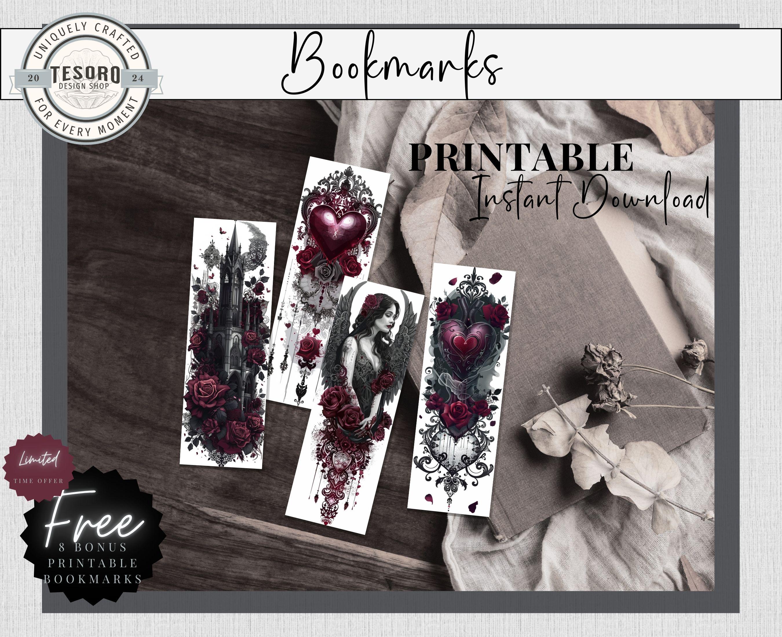 4 unique Gothic Romance bookmarks PNG file ready to print. Easy to use print and cut on Cricut or Silhouette. Great for book lovers of Dark Academia, Dark Romance, Gothic Romance, and Romantasy books.
