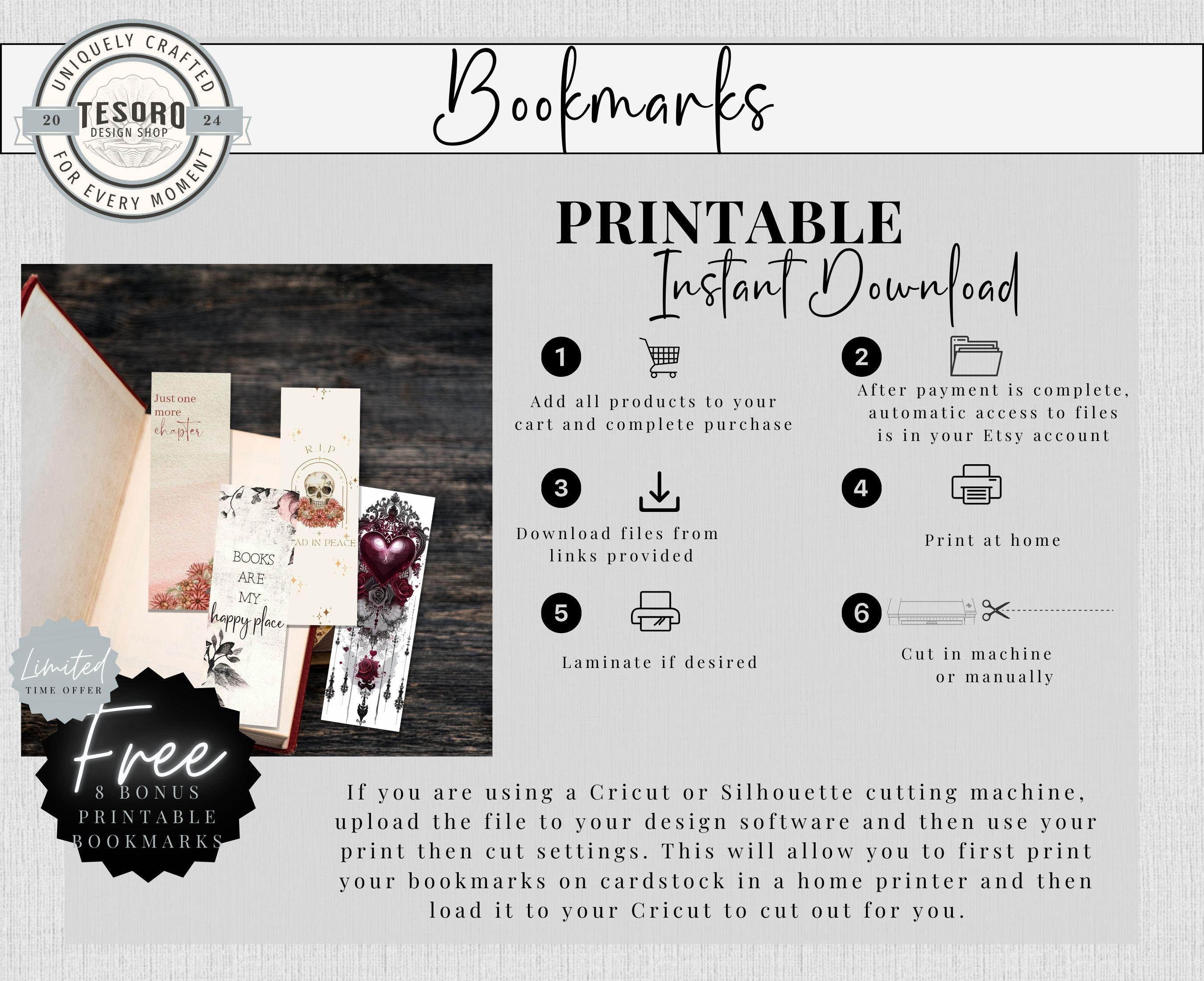 Make gorgeous bookish gifts for your book club friends! 4 unique Gothic Romance bookmarks PNG file ready to print. Easy to use print and cut on Cricut or Silhouette. Great for book lovers of Dark Academia, Dark Romance, Gothic Romance, and Romantasy books.