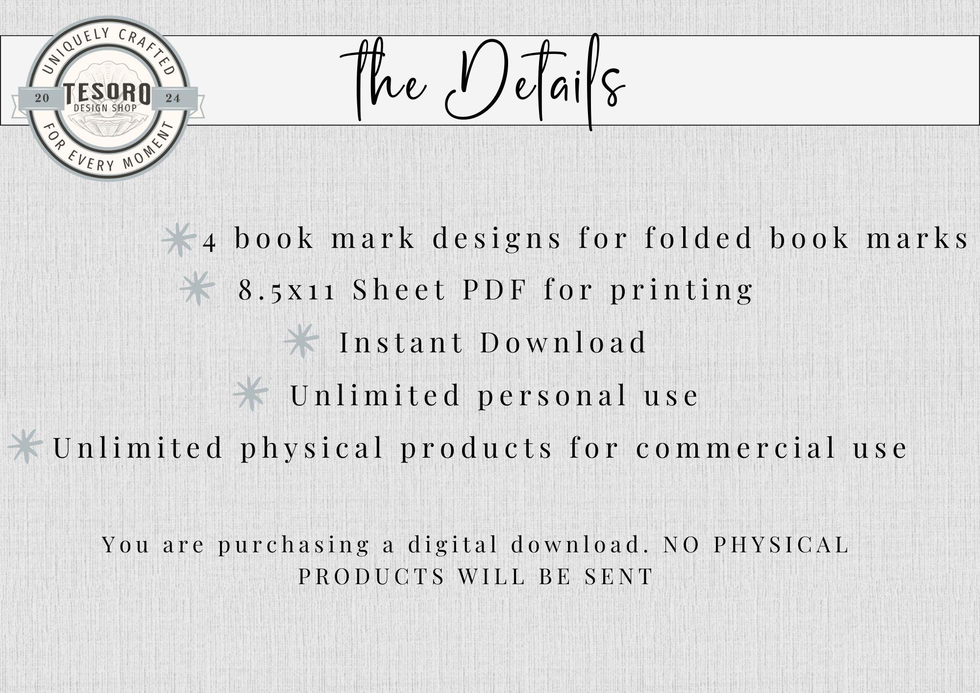 Instructions: Simple to use. Complete up print and cut on your cutting machine. Fold the book mark in half. Place magnet near base of each side of the 2 folded sections.