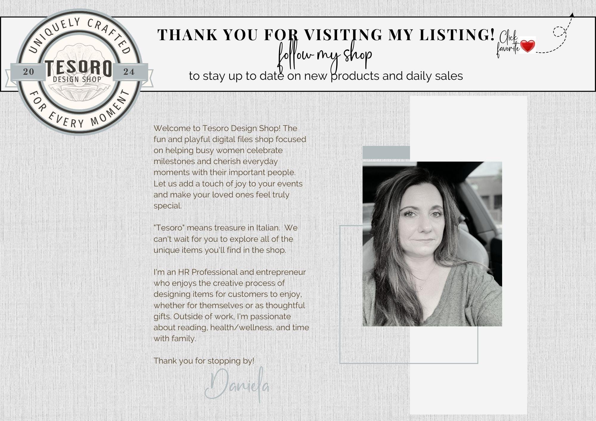If you have any questions about this Privacy Policy or our practices, please contact us at https://tesorodesignshop.etsy.com.