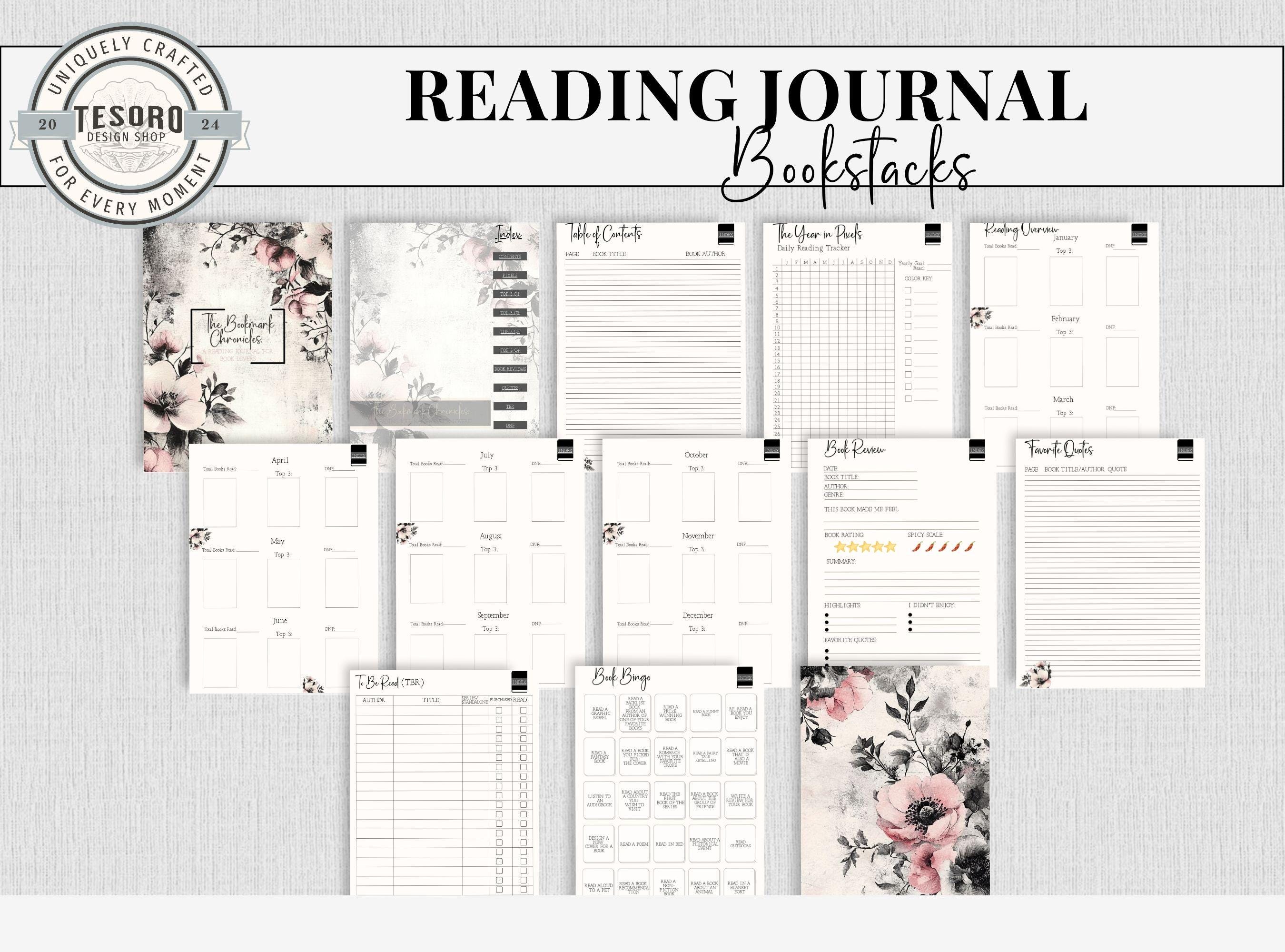 With vibrant illustrations of pink flowers, this reading journal combines aesthetics with functionality to enhance every reader’s experience. Track, review, and reflect on each book with ease using the following features: