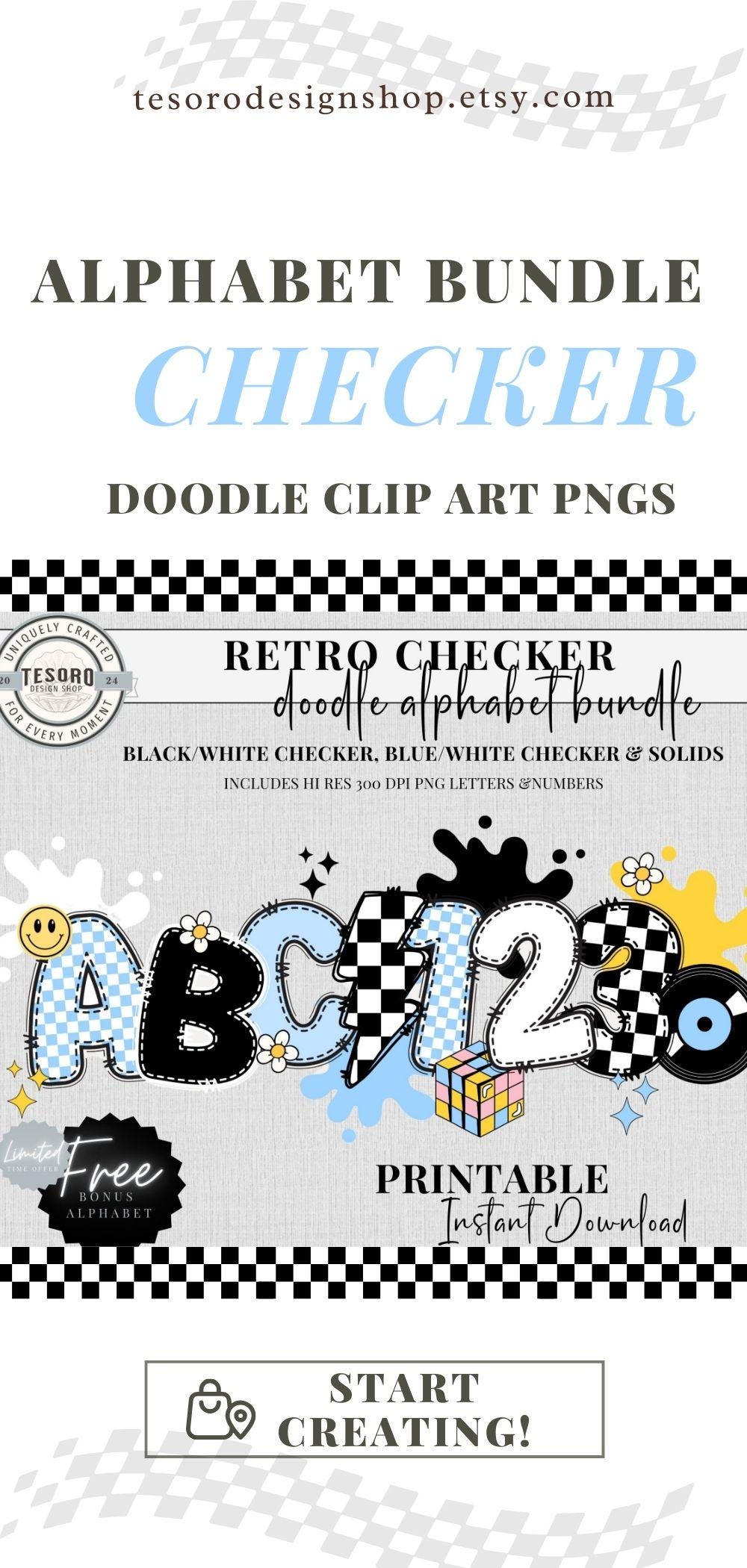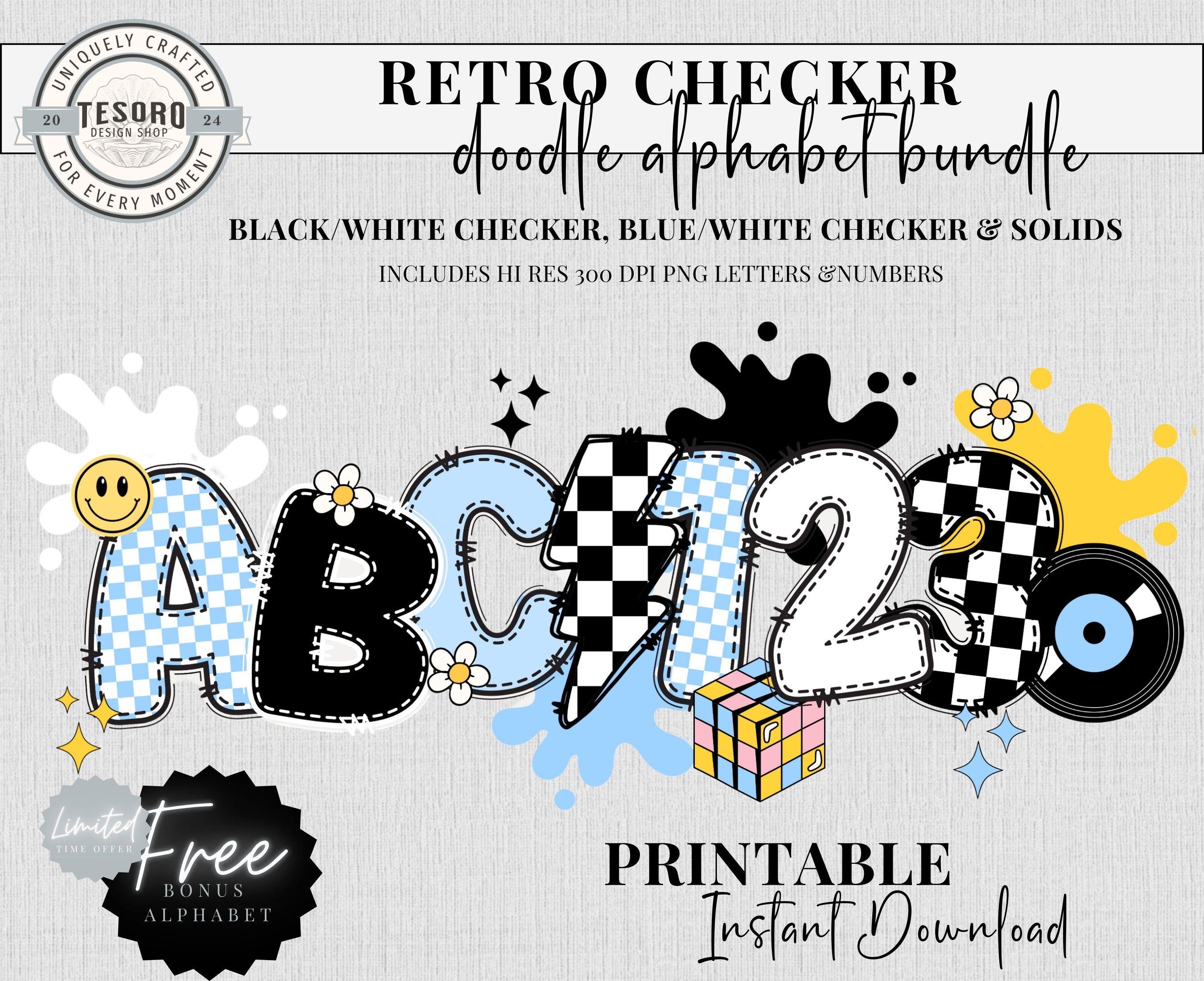 Go Old SkOOL! Elevate your classroom or creative projects with the Checker Doodle Alphabet Bundle PNG – featuring Blue Checker and Black Checker Letters and Clipart. Perfect for teachers, this printable school PNG bundle brings a retro vibe with fun themes like records, Rubik's cube, and lightning bolts.