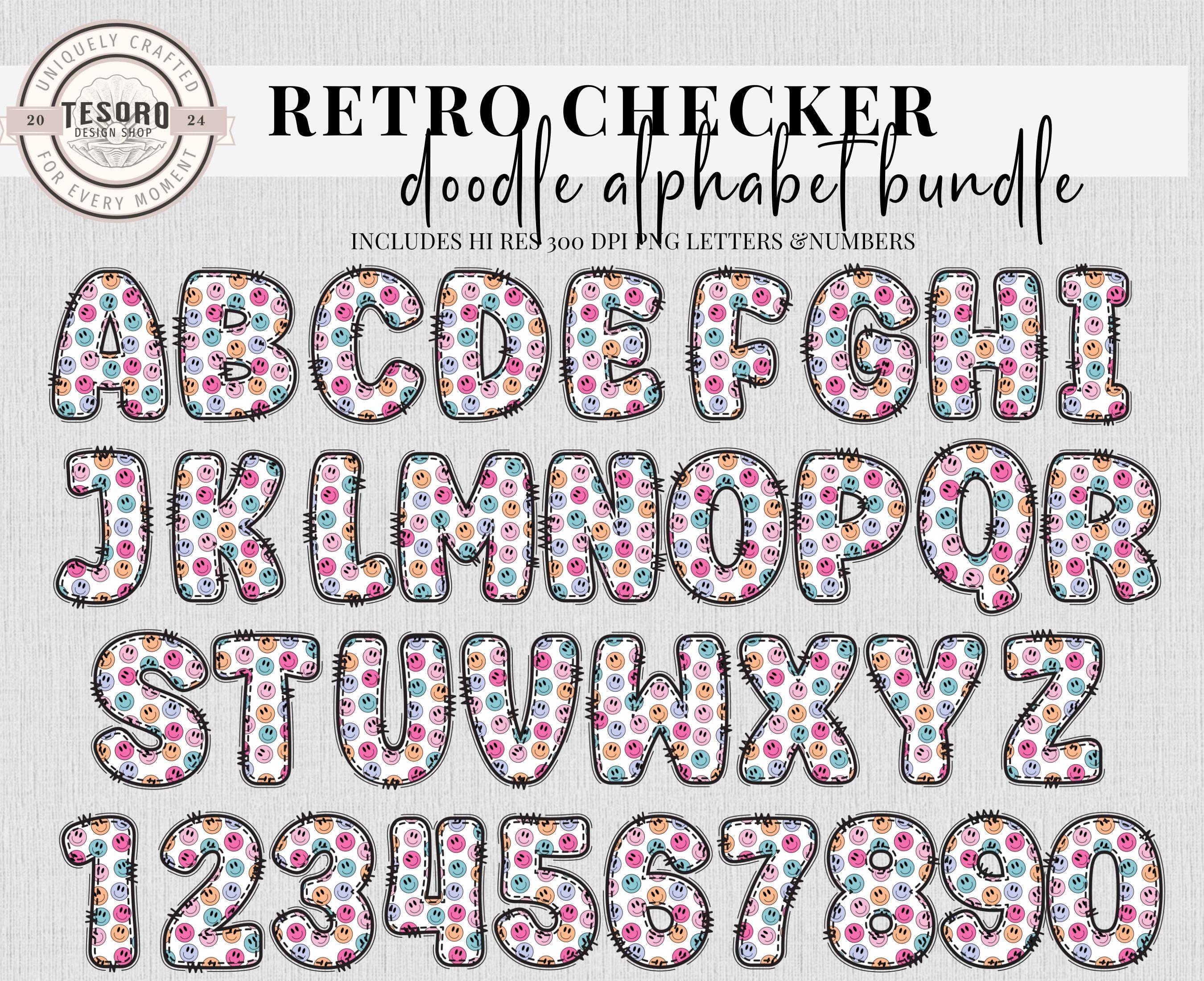 School Classroom Decor Printable | Cute Trendy Alpha A-Z Set |Checker Doodle Alphabet Bundle PNG | Pastel Checker & Daisy Letters | Retro Clipart | Sublimination Digital File | Teacher PNG School Bulletin Board | Instant Download |Doodle Alpha Font Set | Doodle Alphabet Bundle PNG |Doodle Alpha Font Set | Doodle Alphabet Bundle PNG
