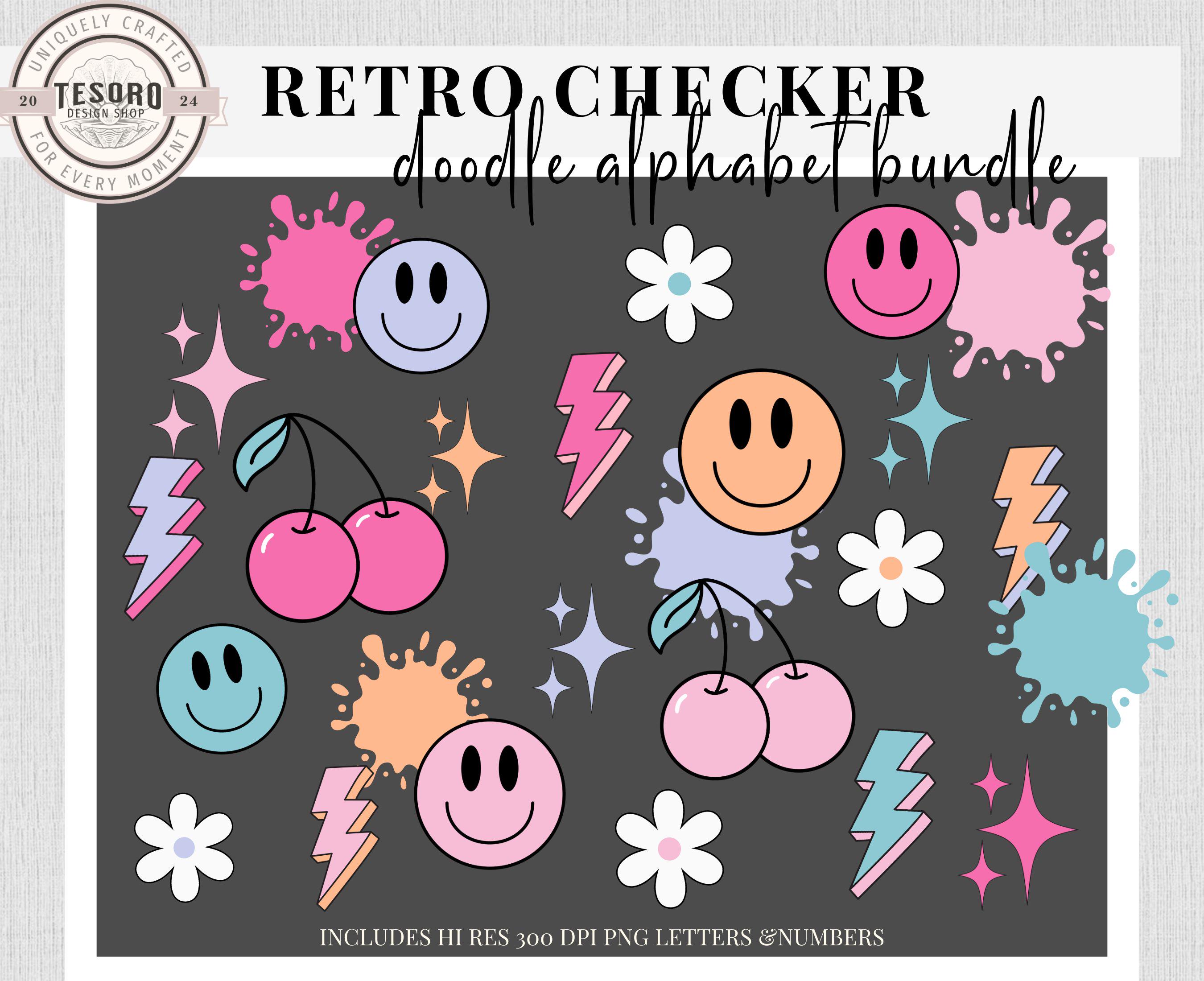 Go Old SkOOL! Elevate your classroom or creative projects with the Doodle Alphabet Checker Bundle PNG – featuring modern pastel Checker and Daisy Letters and Bonus Clipart. Perfect for teachers, this printable school PNG bundle brings a retro vibe with fun designs of daisies, and lightning bolts.