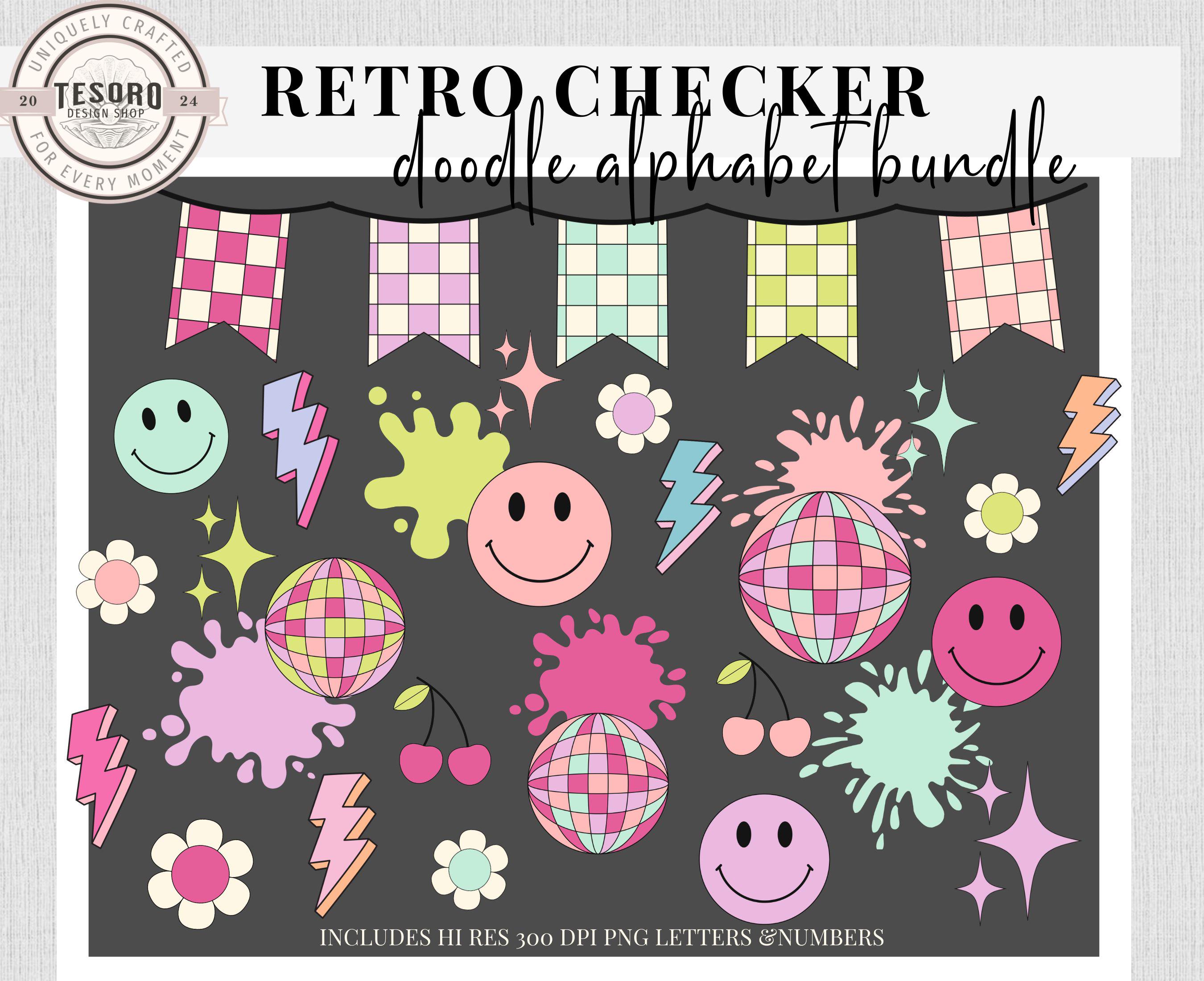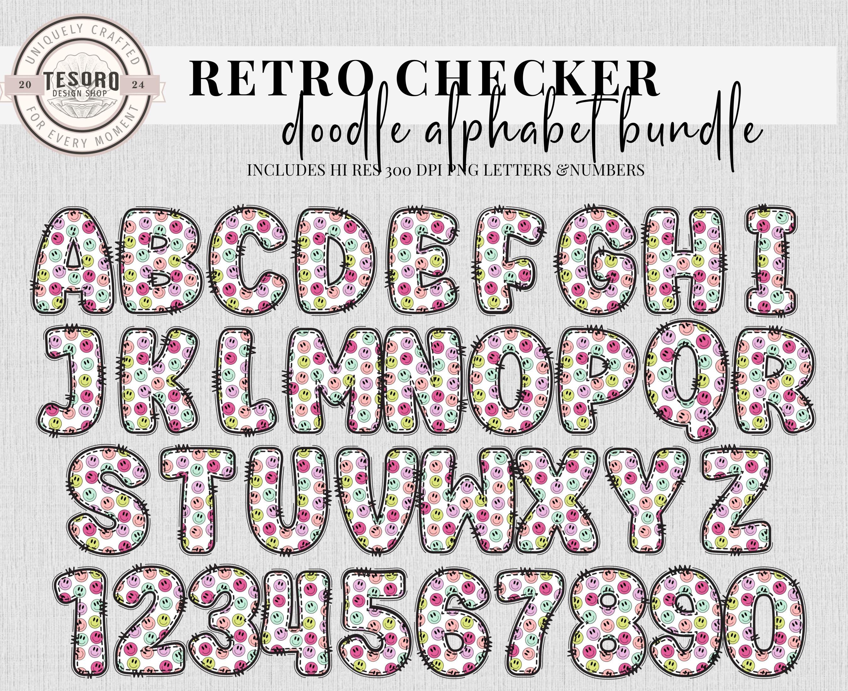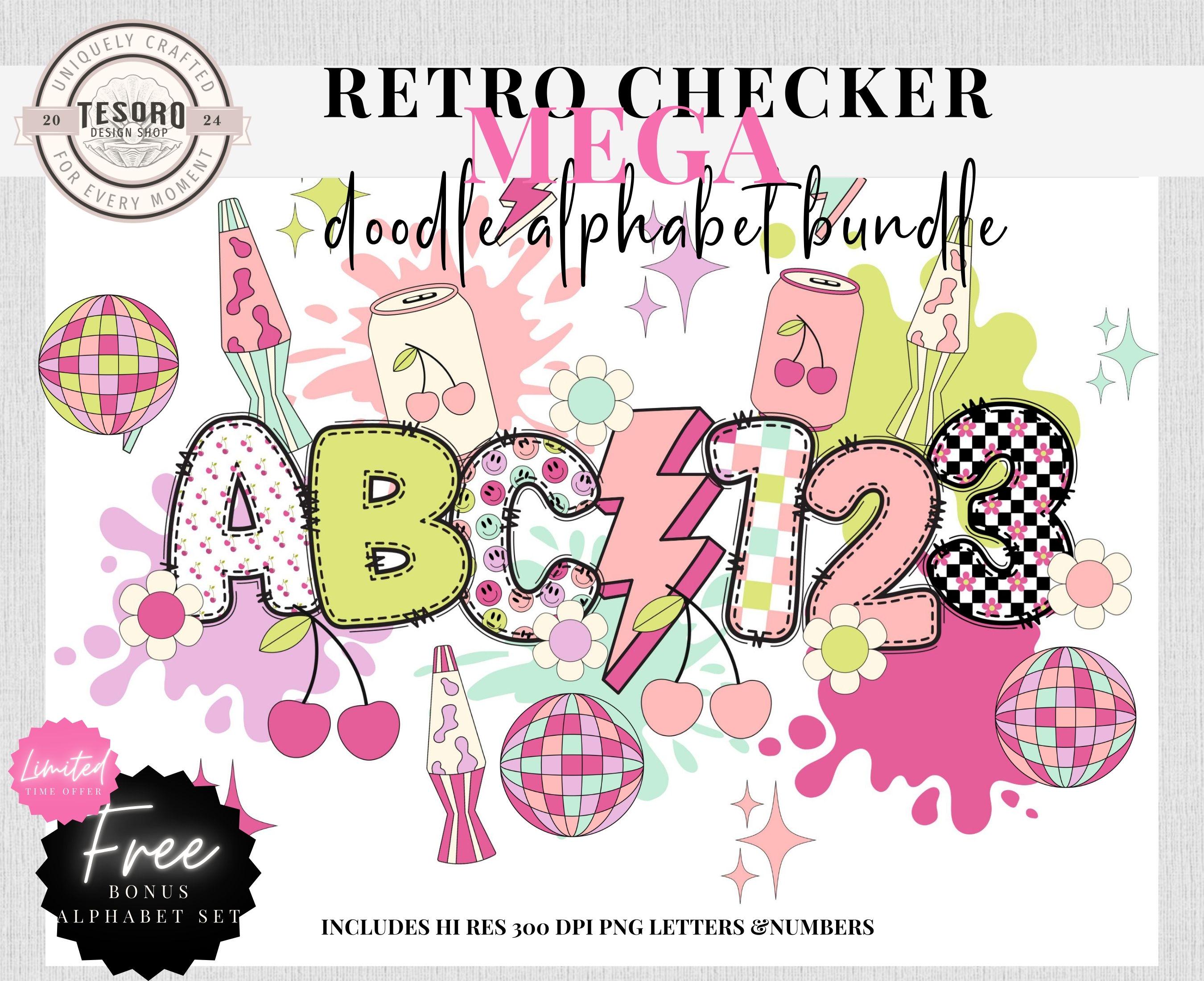 This original doodle alphabet features a fun retro disco style with a unique, groovy design. This alphabet bundle is perfect for creative classroom decor and bold craft projects.