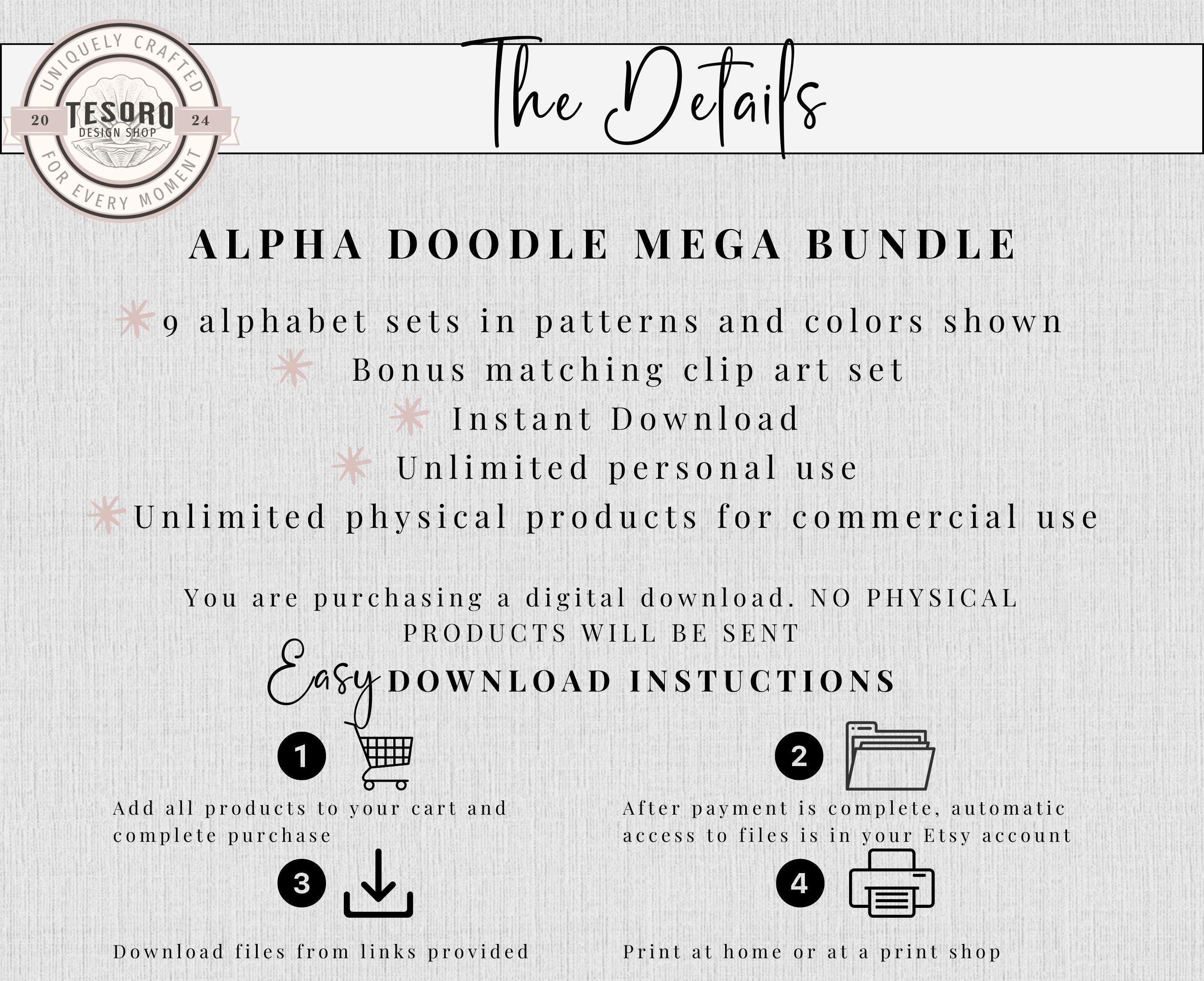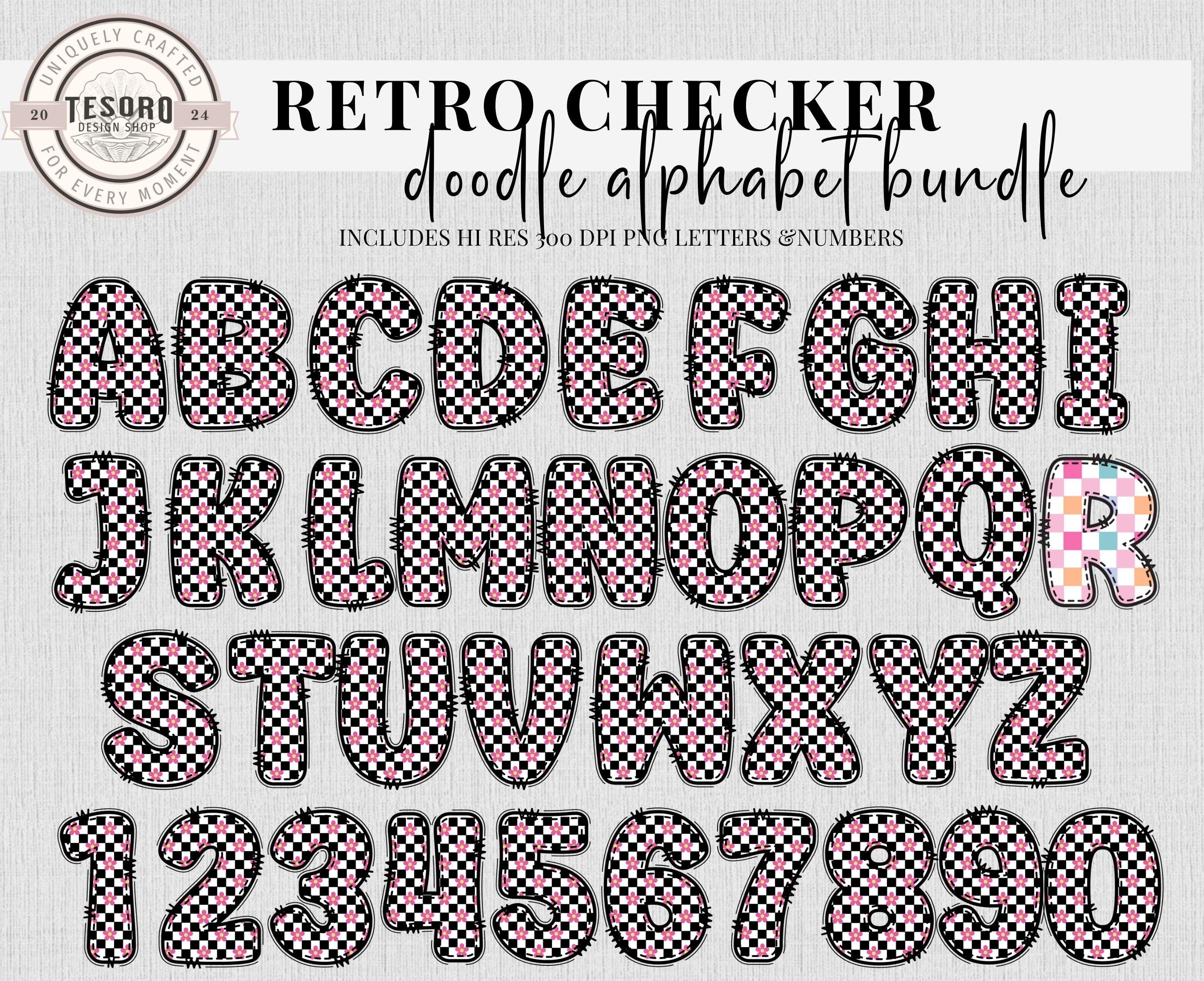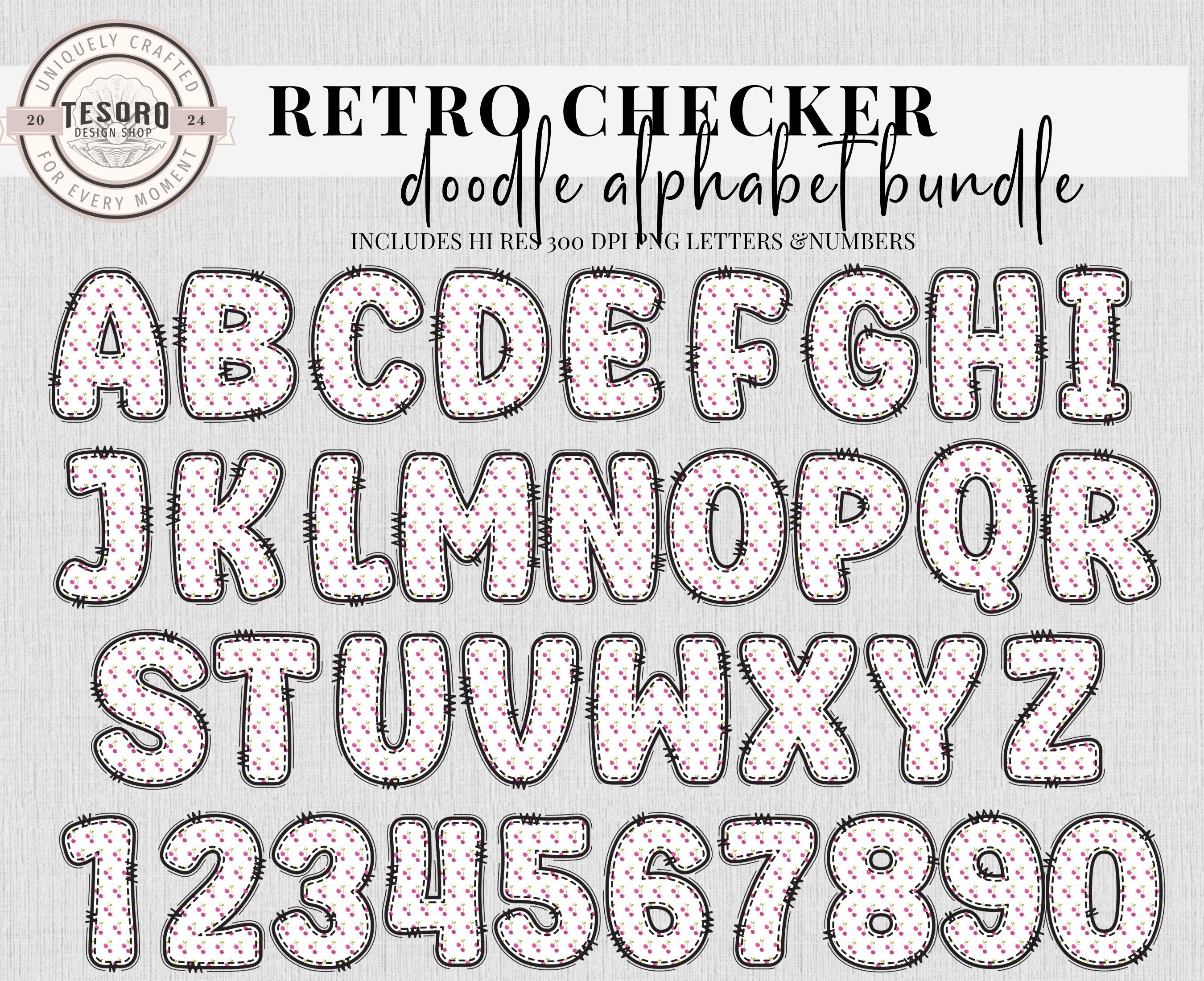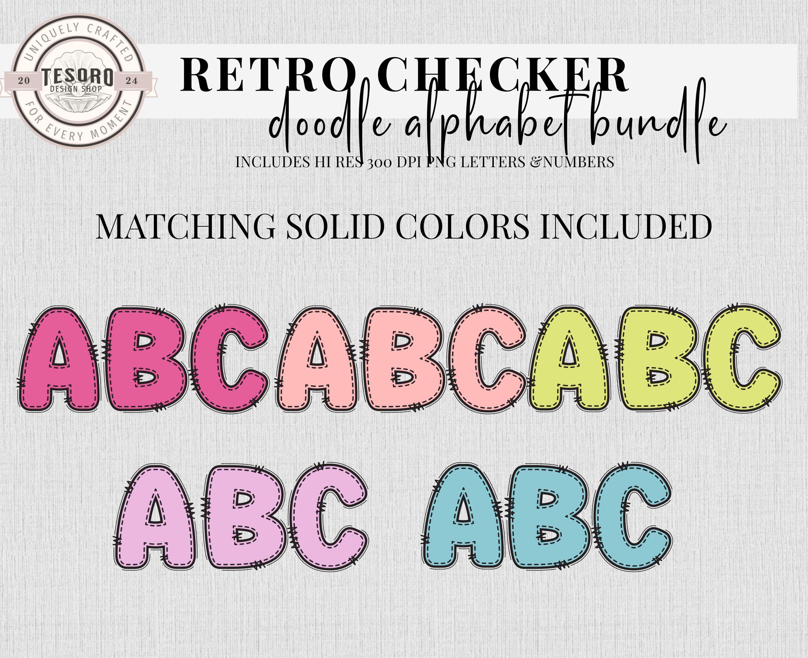 This original doodle alphabet features a fun retro disco style with a unique, groovy design. This alphabet bundle is perfect for creative classroom decor and bold craft projects.