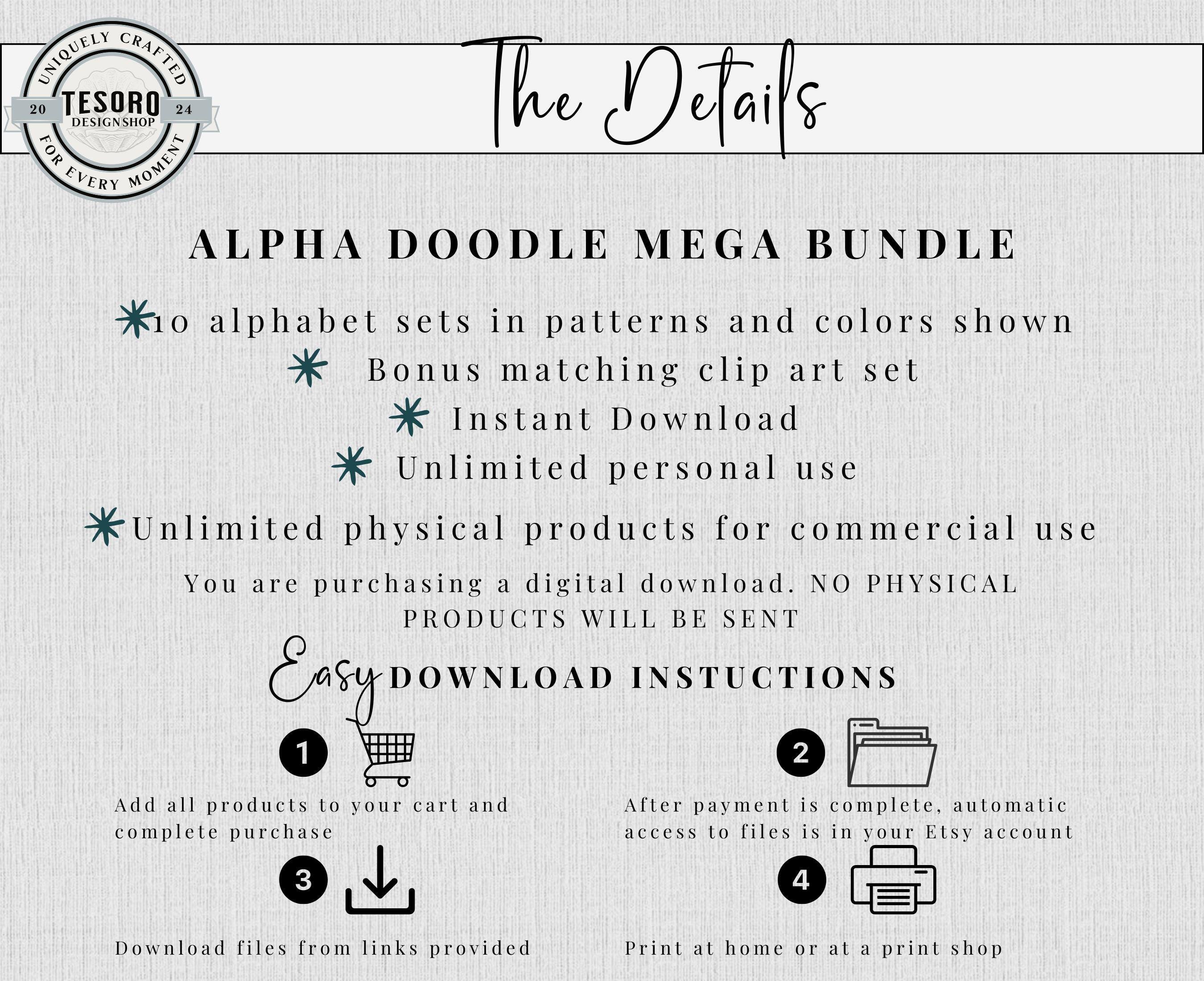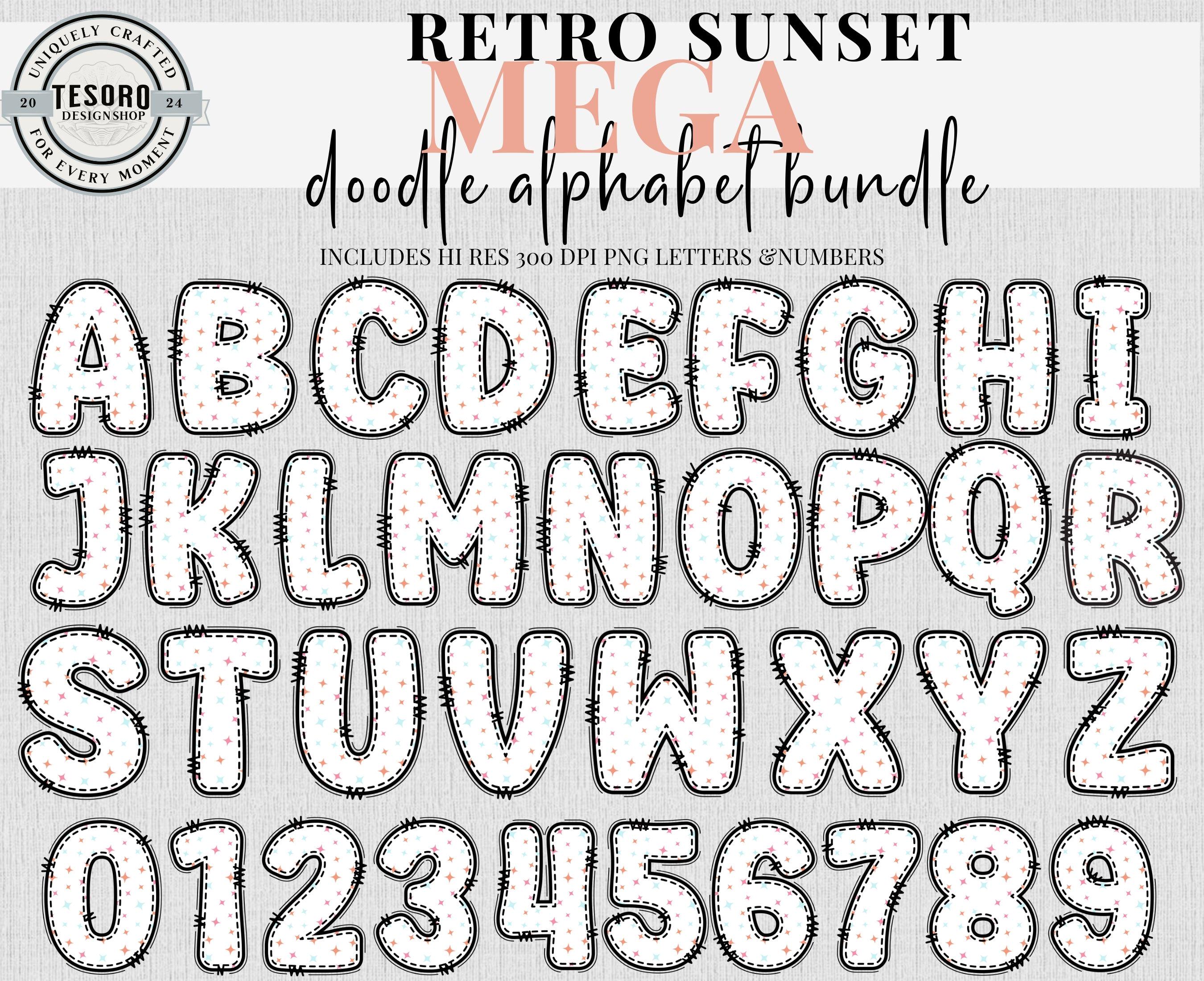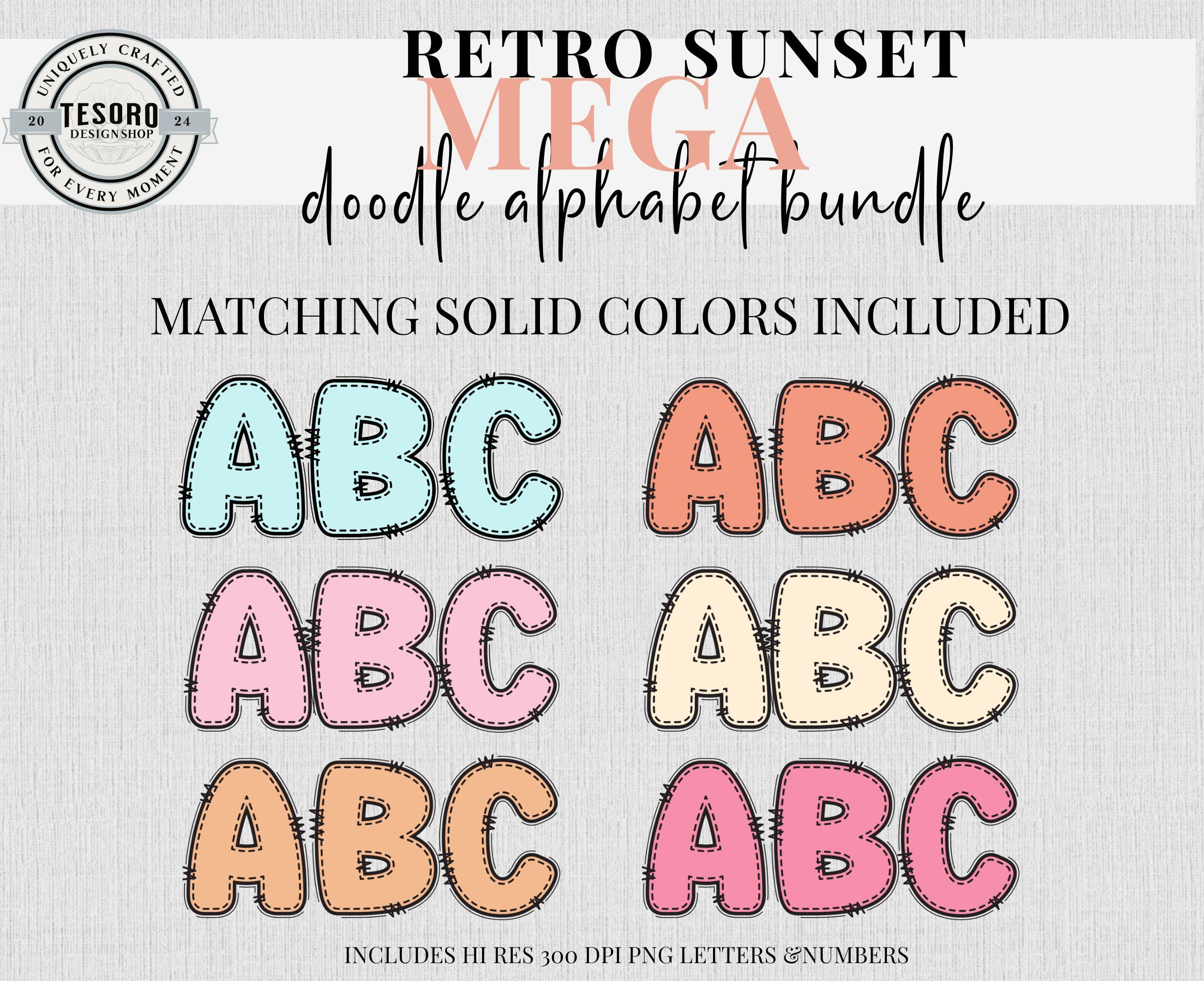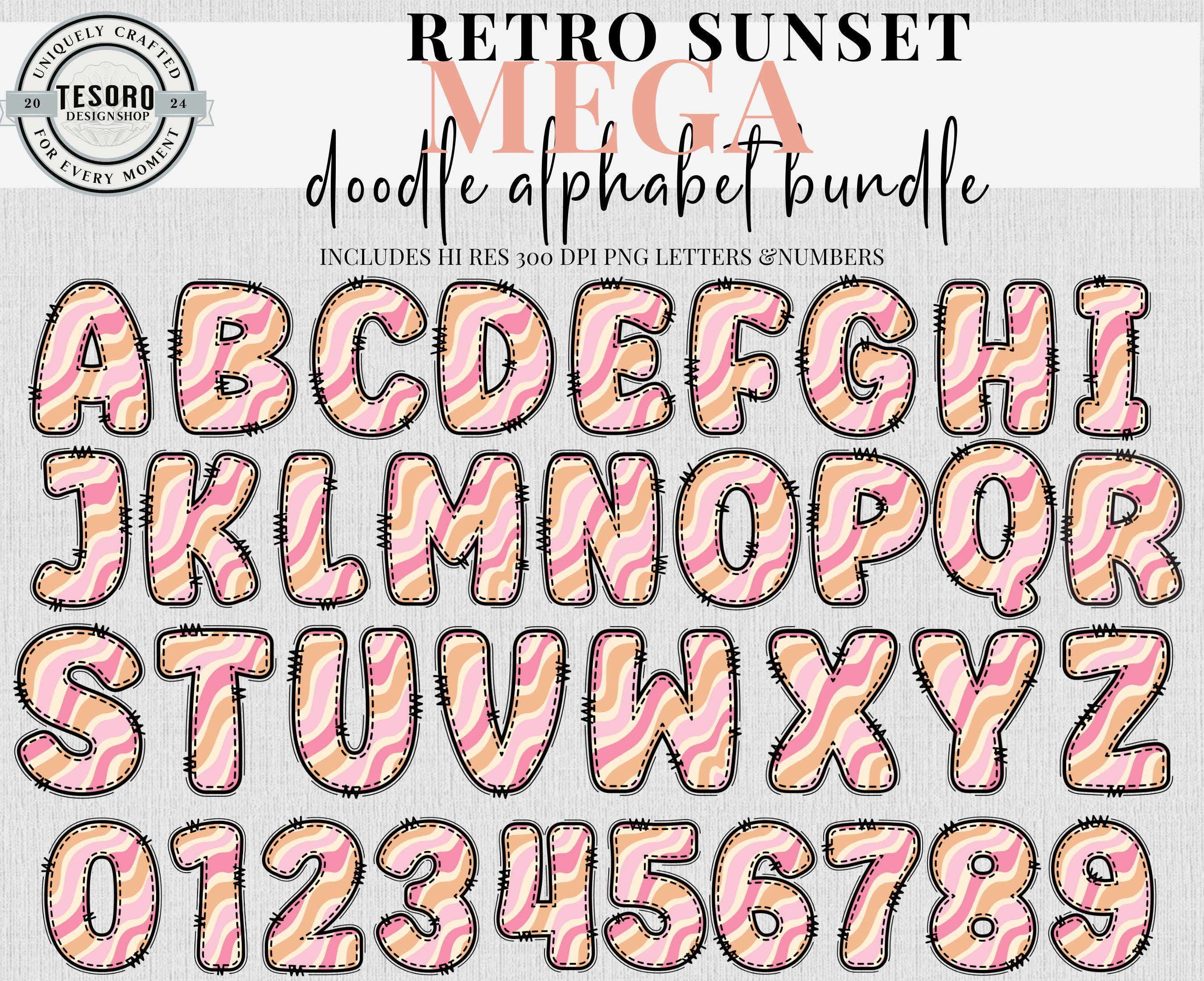 Available as an instant download for quick, easy use in digital or print designs! Mega bundle of doodle letters and numbers sets in 9 designs/colors - checker pattern and solid designs. Bonus of matching retro clip art. This trendy design is perfect for addition for text based designs or to add text to your design. Excellent for for sublimation and DTF printing for shirt, totes or mugs. Digital files can also be used in print & cut for Cricut and Silhouette to make stickers or class bulletin boards. Make your own shirts with your heat press! These files are hi res 300 DPI PNG so they can be resized and retain quality printing.