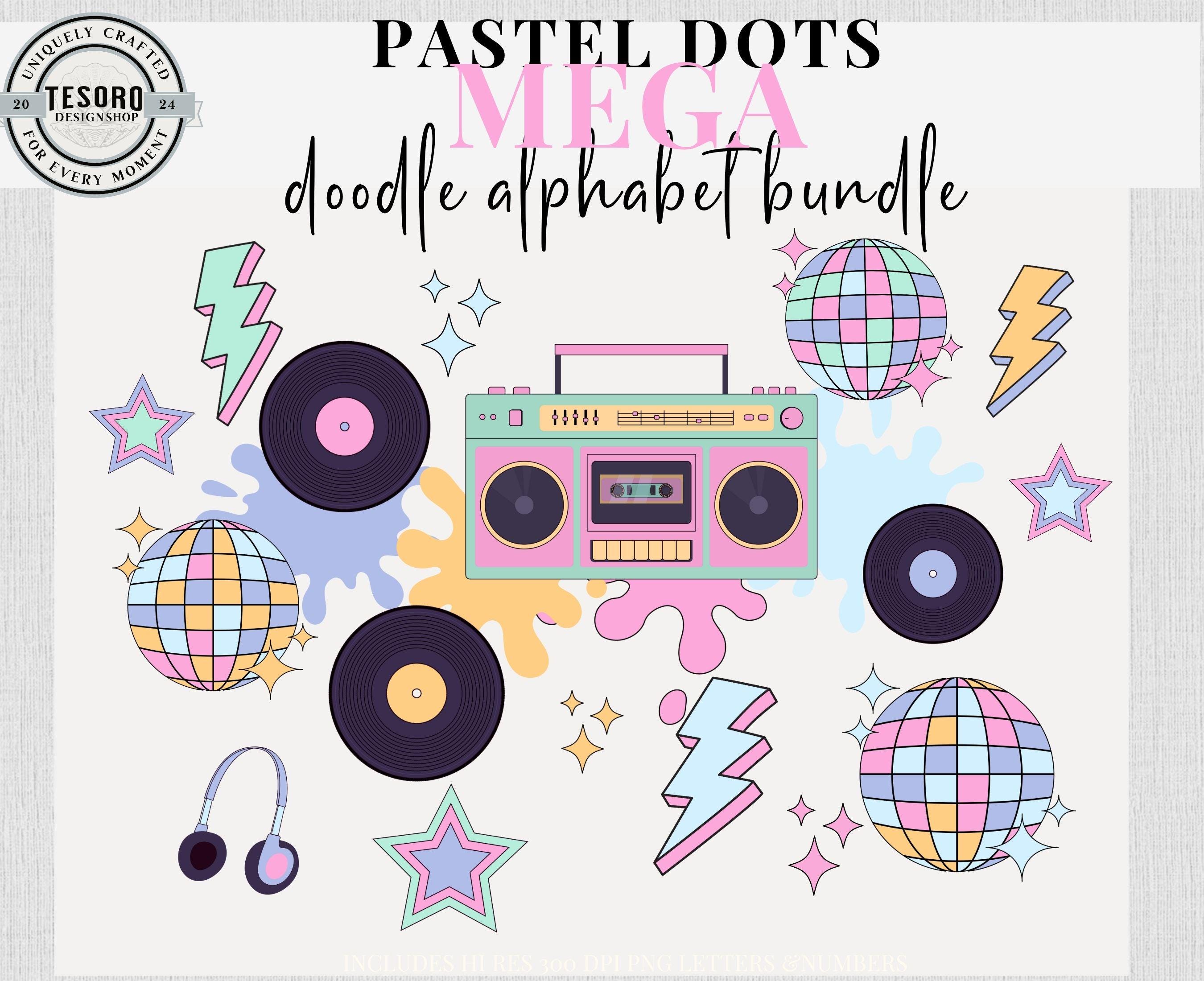 Go Old SkOOL! Elevate your creative projects with the Dots Doodle Alphabet Bundle PNG – featuring modern pastel dots letters and Bonus retro inspired clipart. Perfect for makers and crafters, small business makers, and teachers. This printable PNG bundle brings a retro vibe with fun trendy PNGs.
