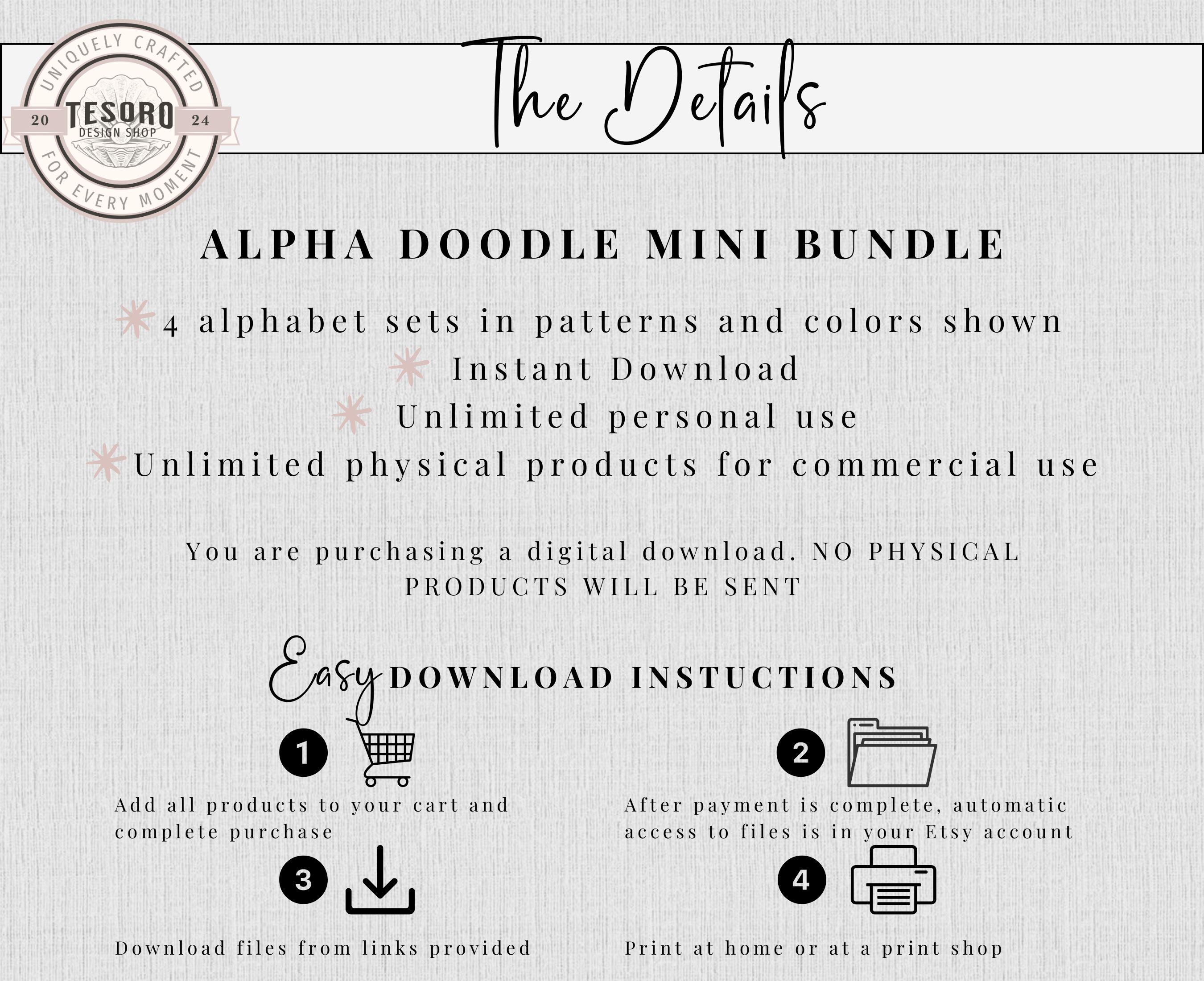 Introducing NEW MINI sets of doodle letters and numbers sets in 4 designs/colors - checker pattern and solid designs.