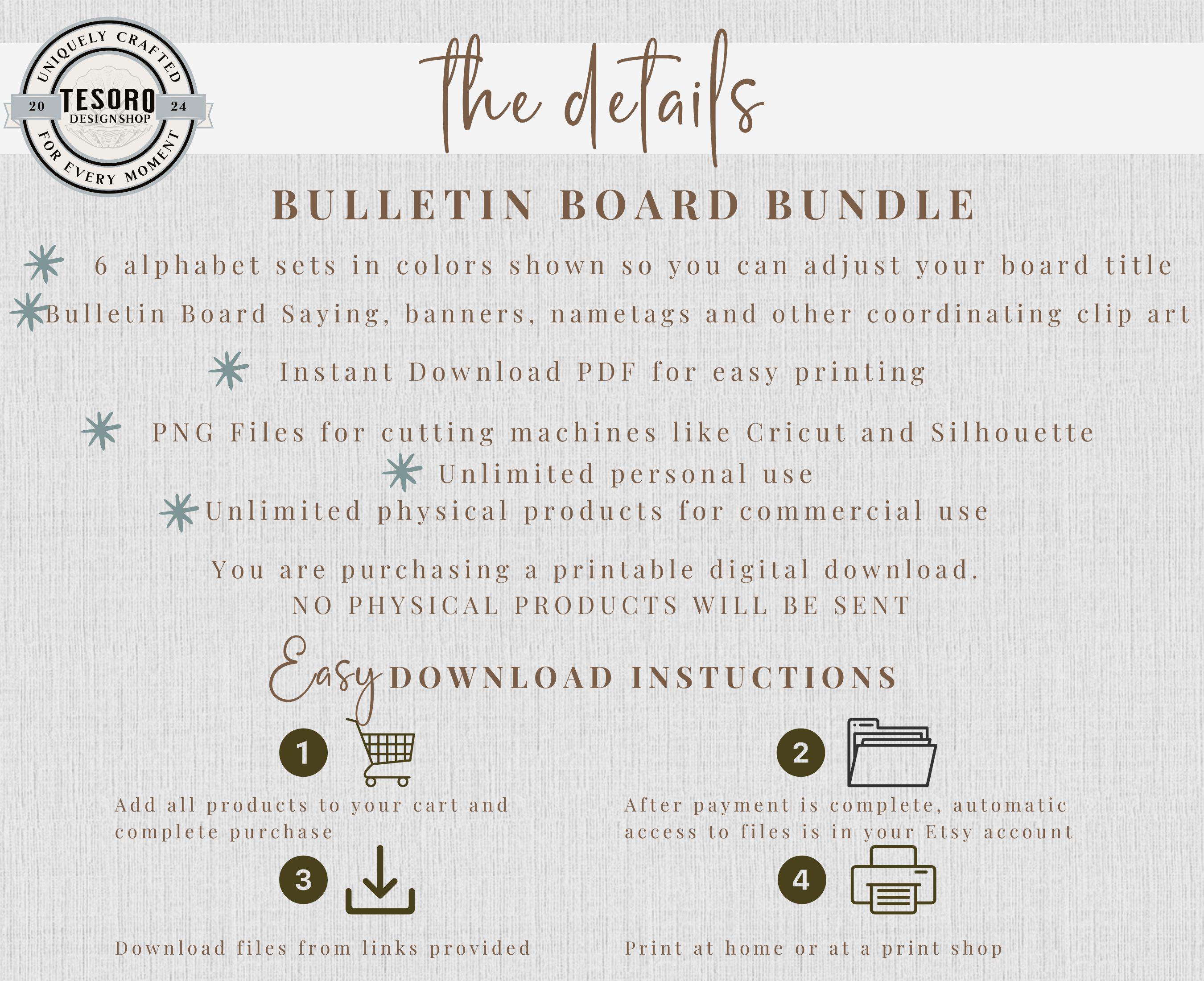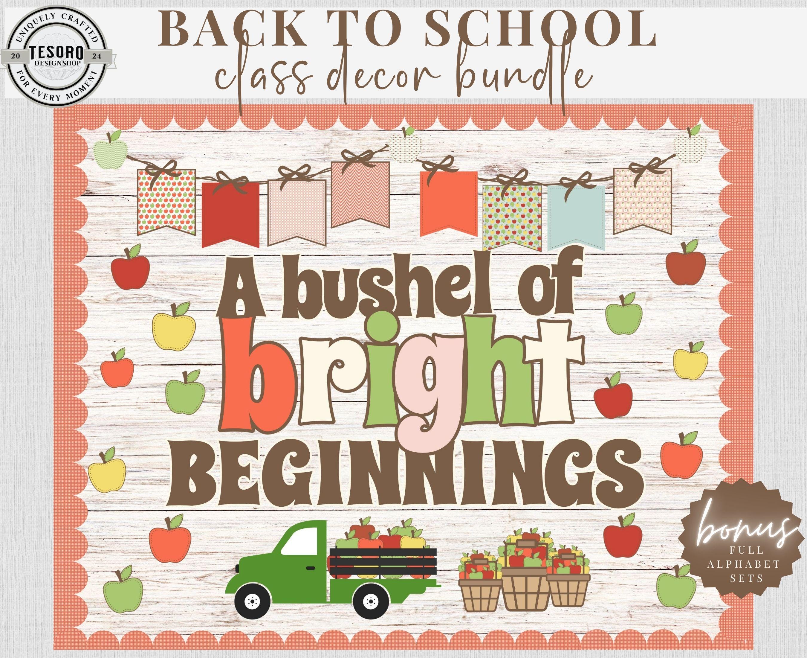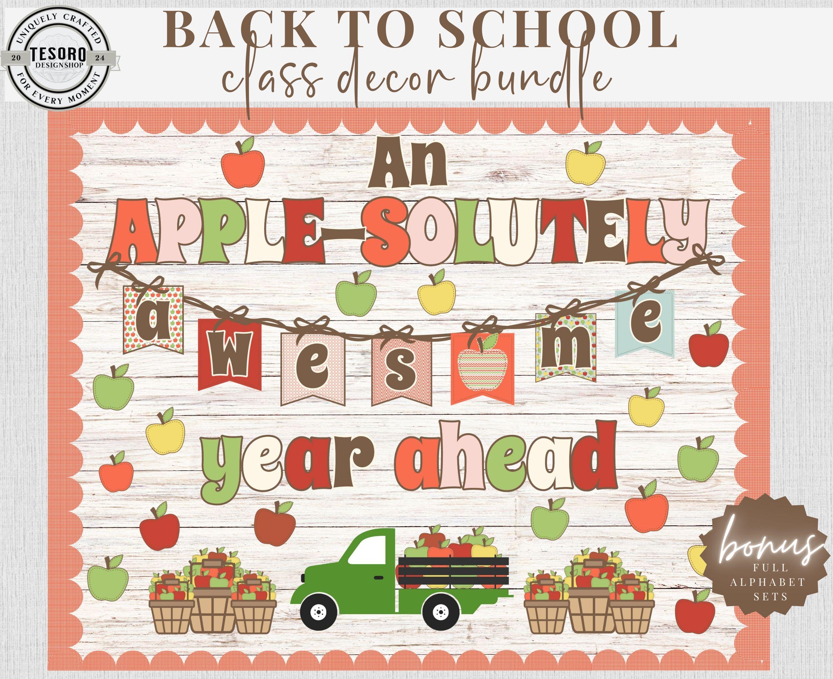 This apple bulletin board decor printable features an original classroom theme design created digitally for Tesoro Design Shop. This ready-to-use bulletin board set includes coordinating letters and clip art, making it perfect for back-to-school displays, classroom walls, and teacher decor.