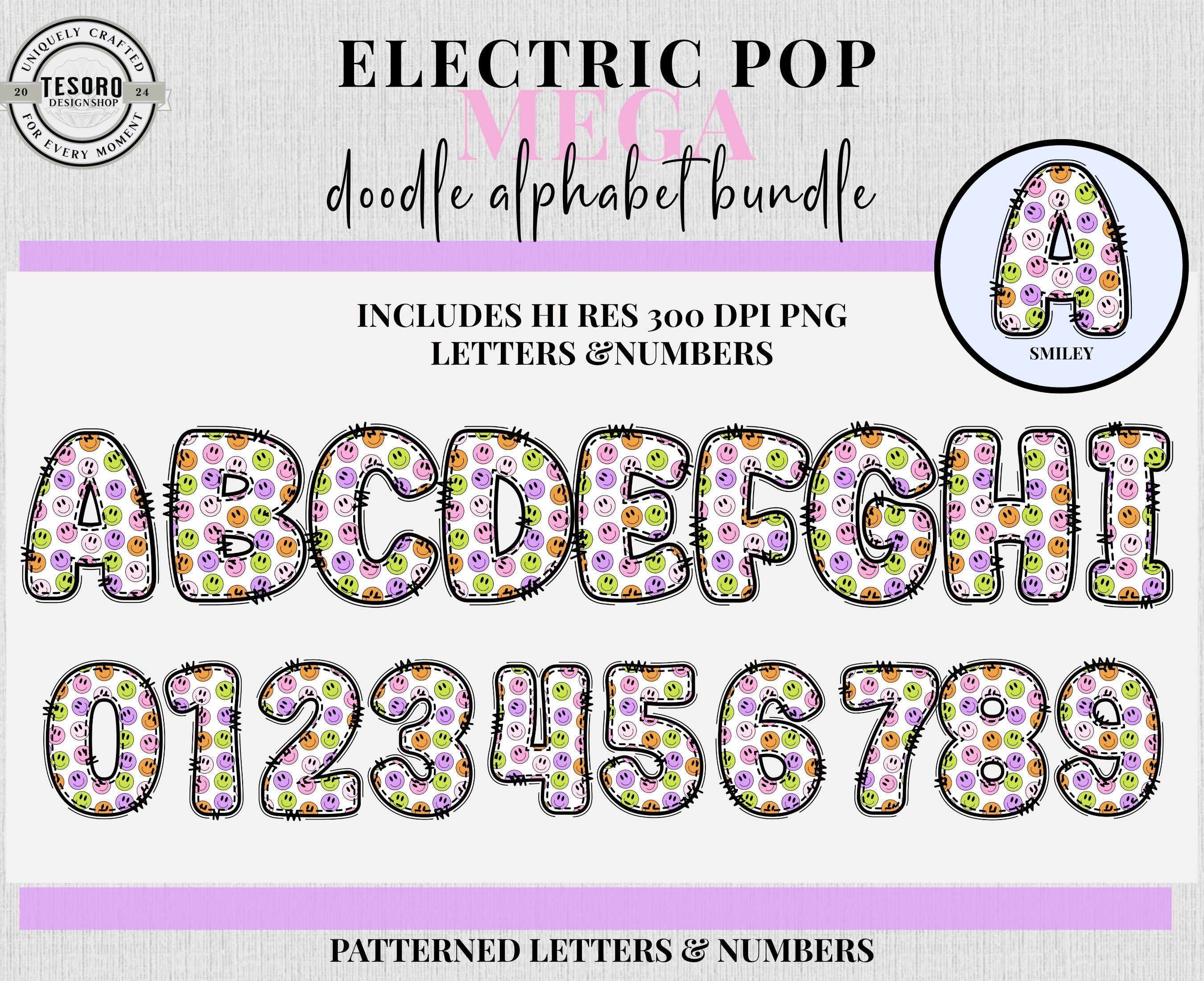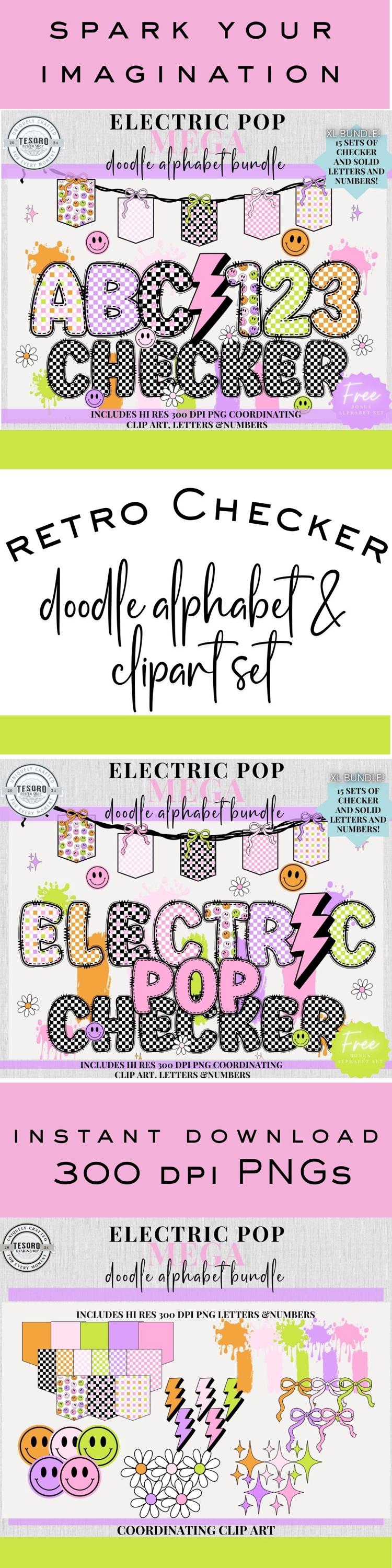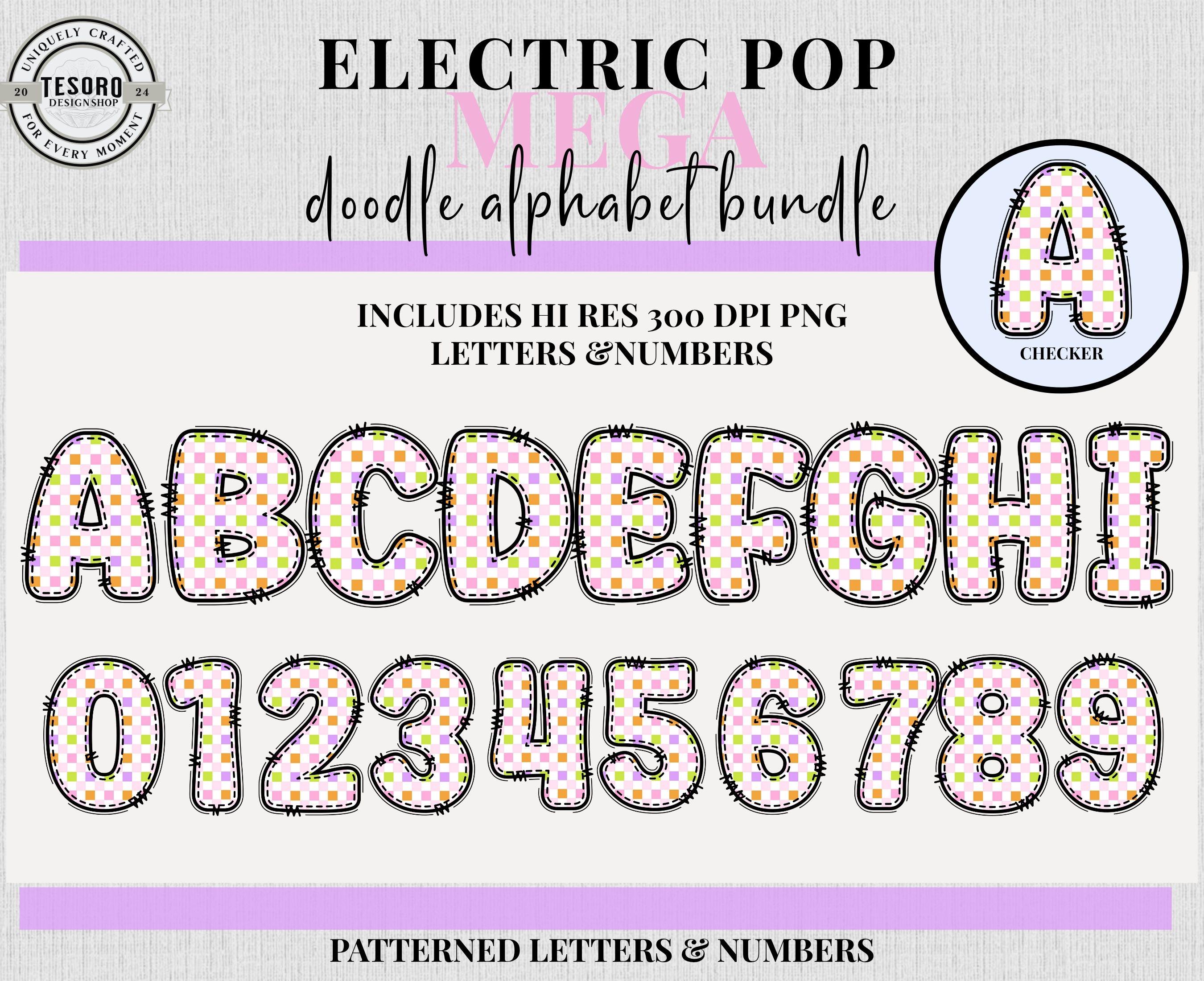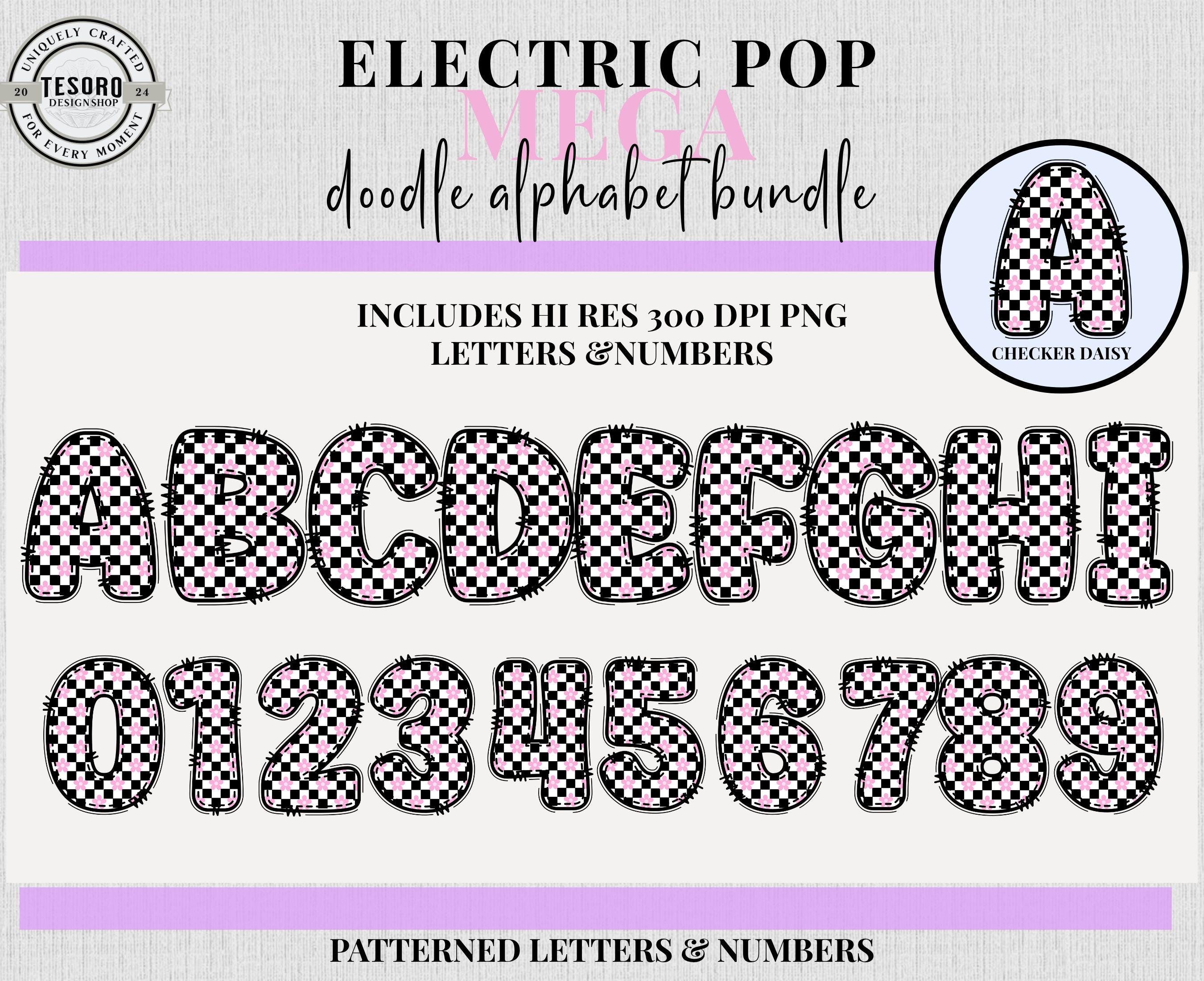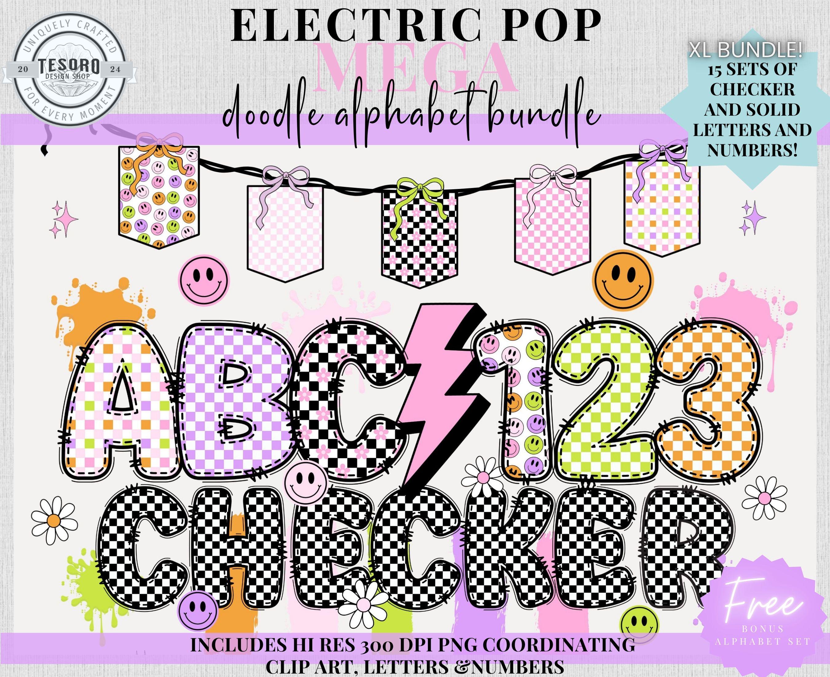 Checker Doodle Alphabet Bundle PNG |Doodle Alpha Font Set |School Classroom Decor Printable | Cute Trendy Alpha A-Z Set | Checker Doodle Alphabet Bundle PNG | Retro Clipart | Sublimination Digital File | Checker Doodle Alphabet Clipart PNG |Funky Smiley Bolt Sparkle Banner Daisy Bow | Retro Font Back to School Letters for Teacher| Cricut Cut