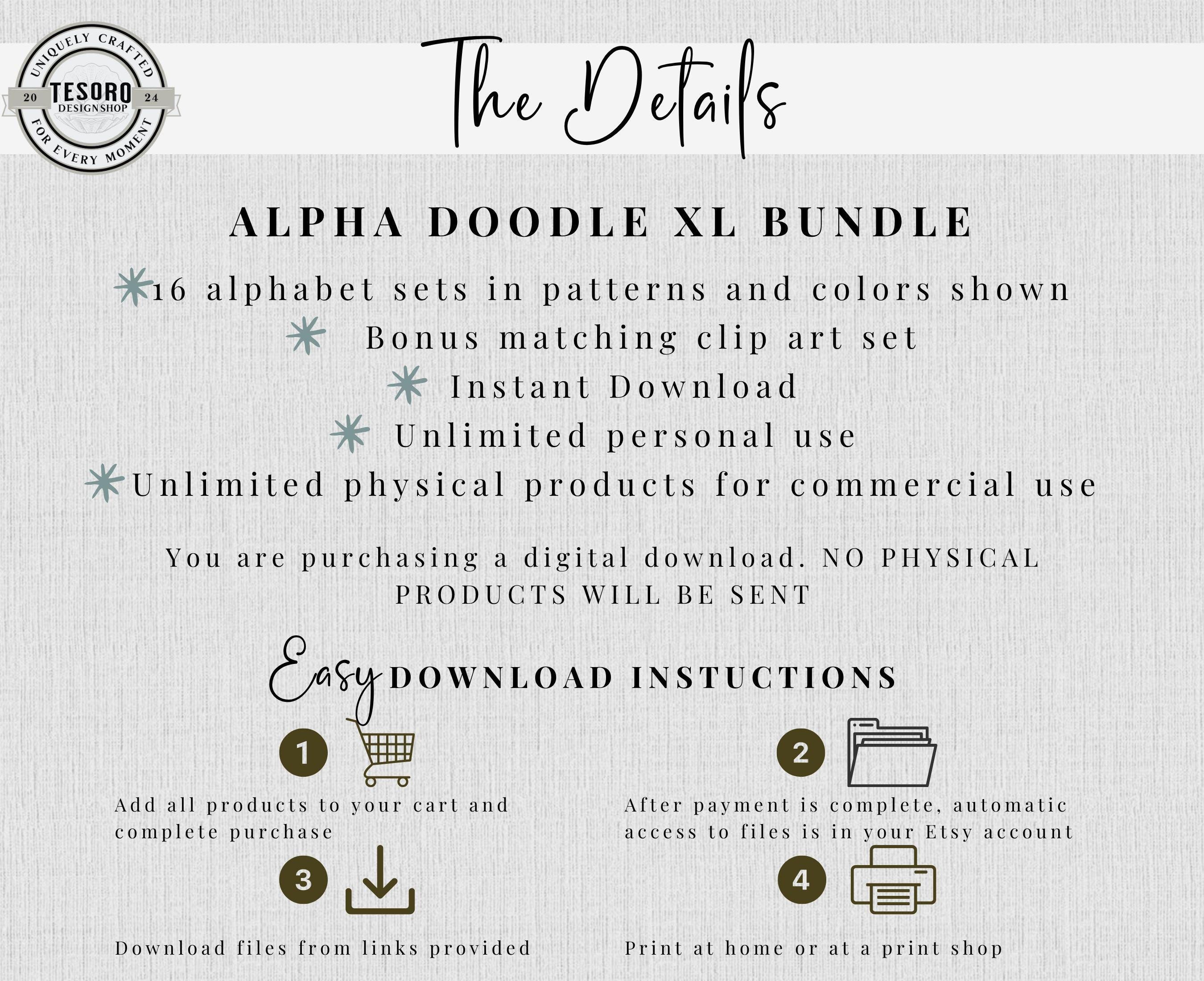 🛍️ Checkerboard Doodle Alphabet + Clip Art Bundle