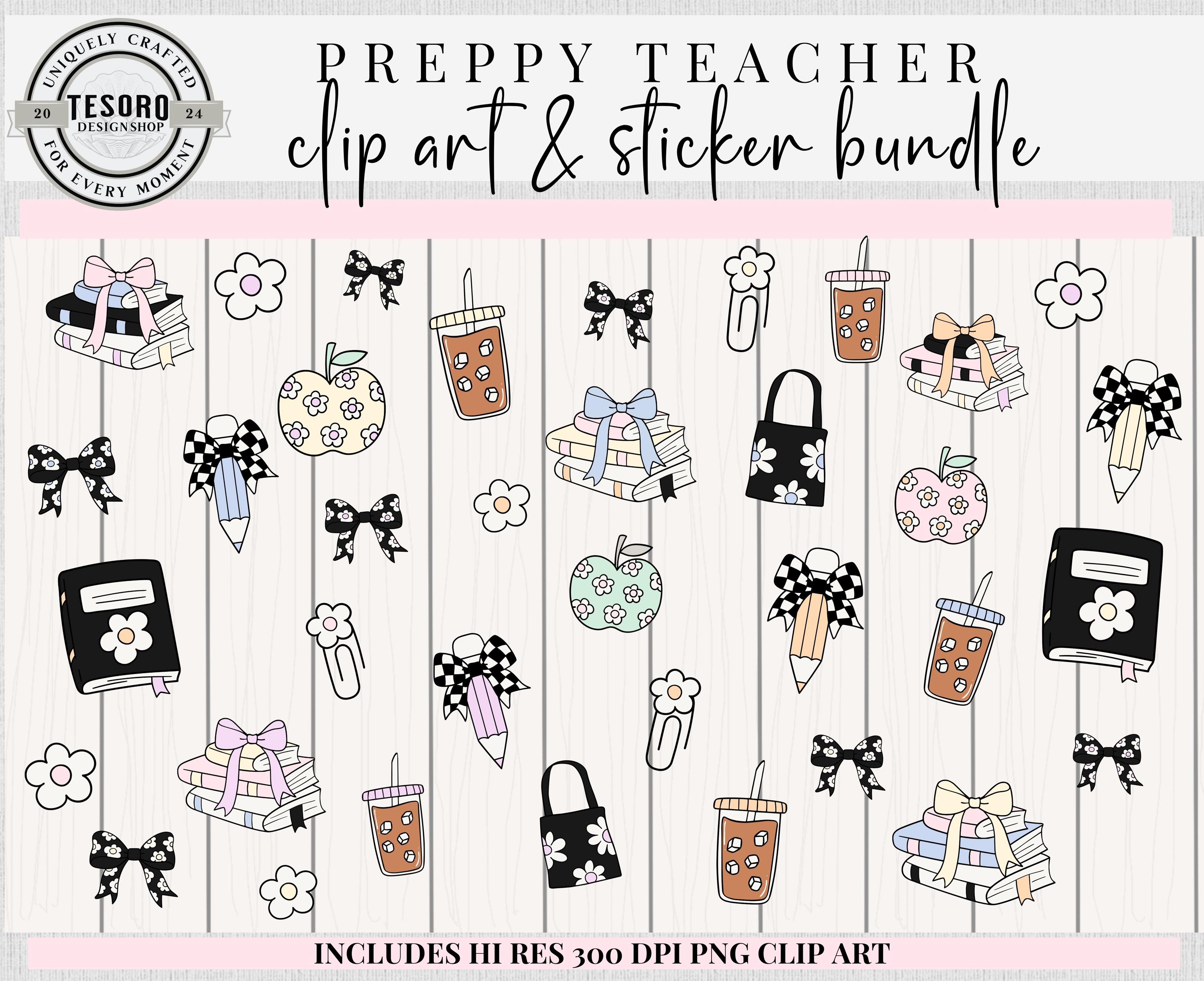 🎨 Celebrate classroom creativity with the “Preppy Teacher Clip Art & Sticker Bundle”—perfect for lesson planning, bulletin boards, and teacher gifts!