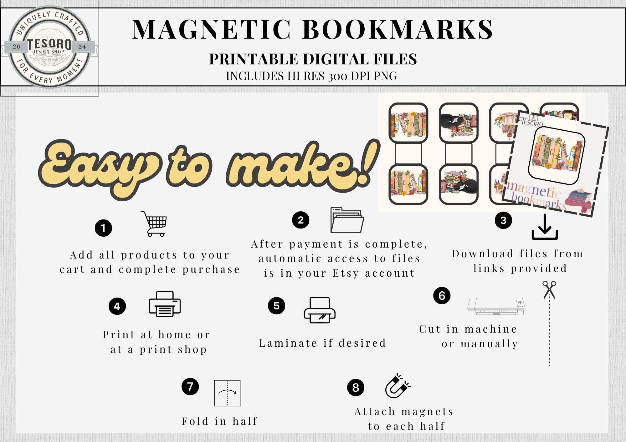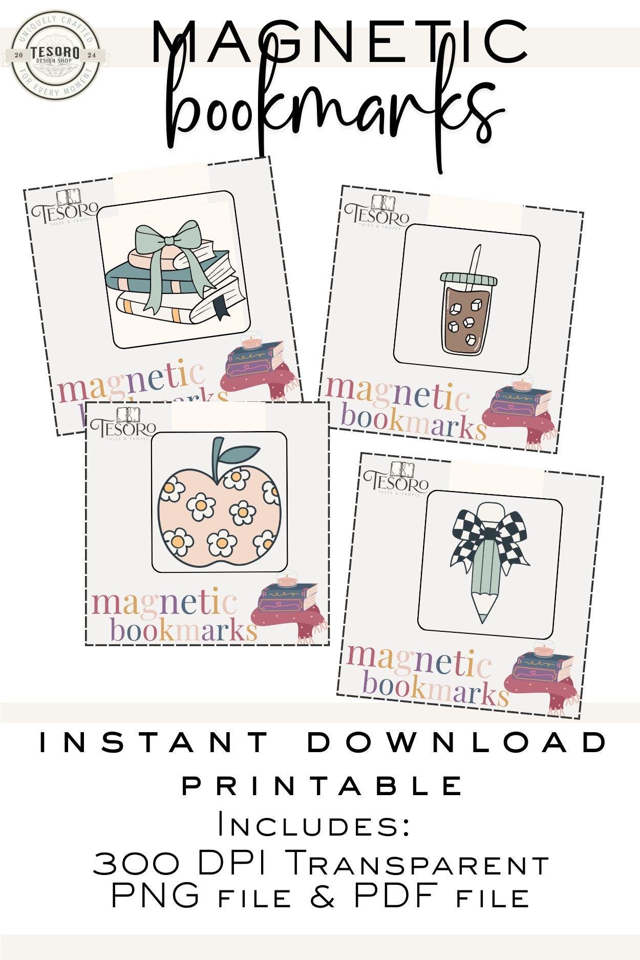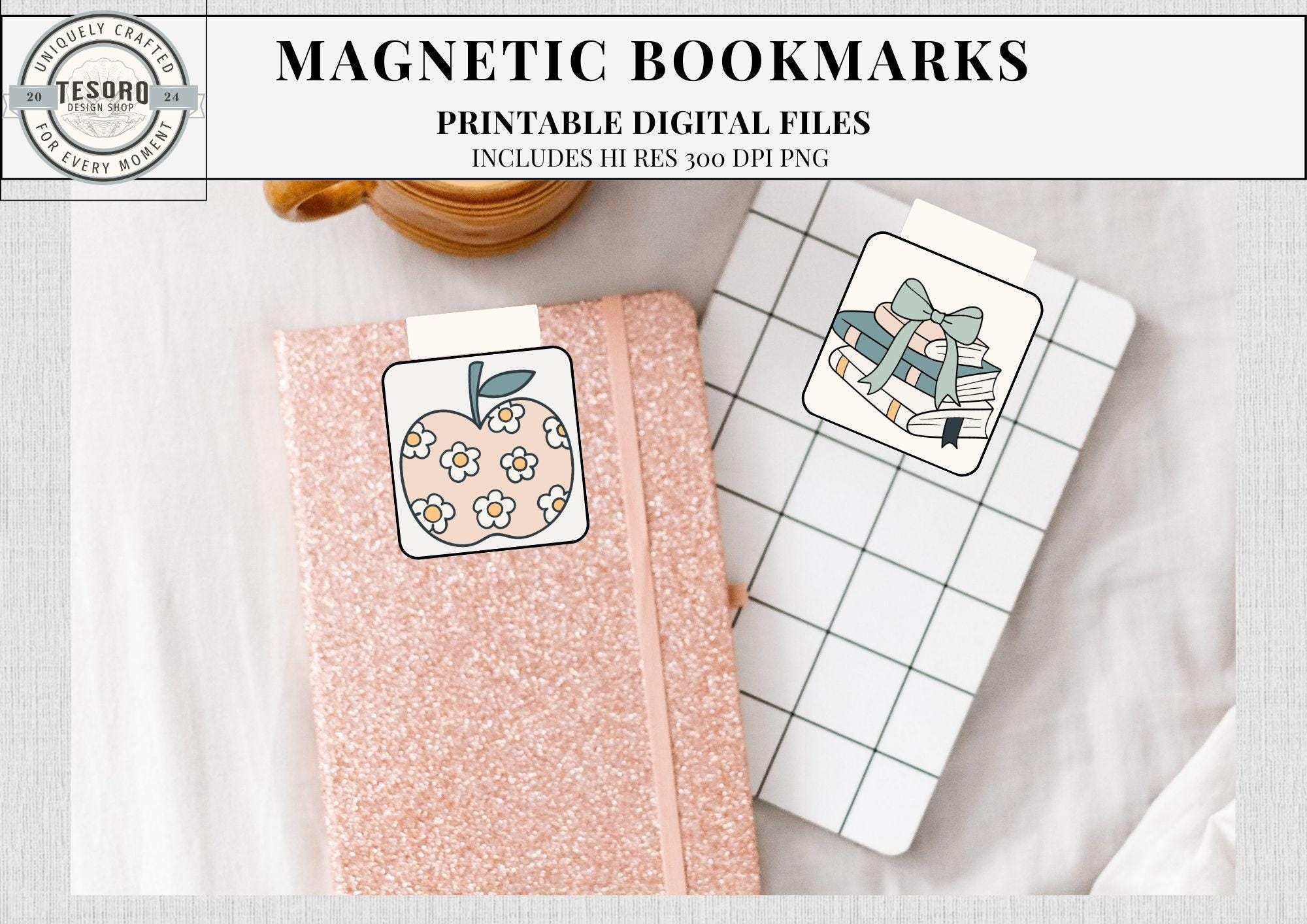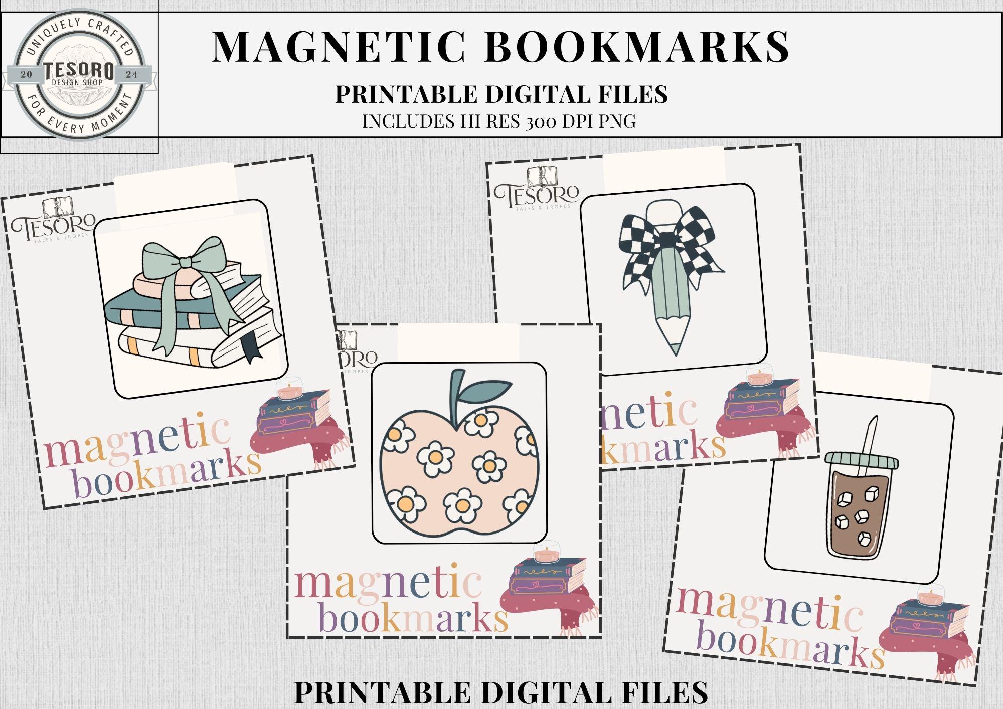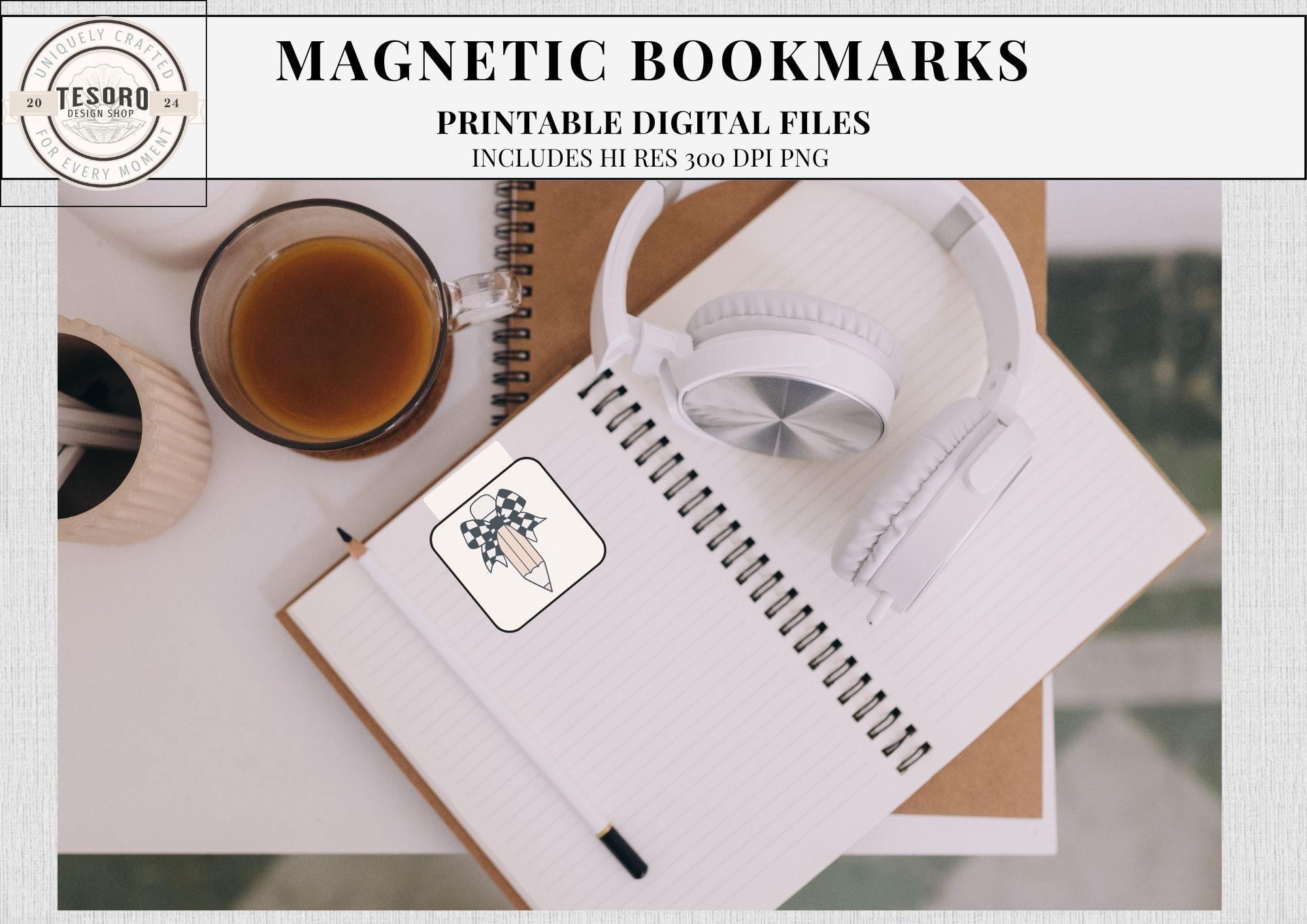 These printable magnetic bookmarks feature cozy book & coffee designs with a modern boho twist. Perfect for readers, teachers, and students who want a fun and practical way to keep track of their place in books, journals, or planners.