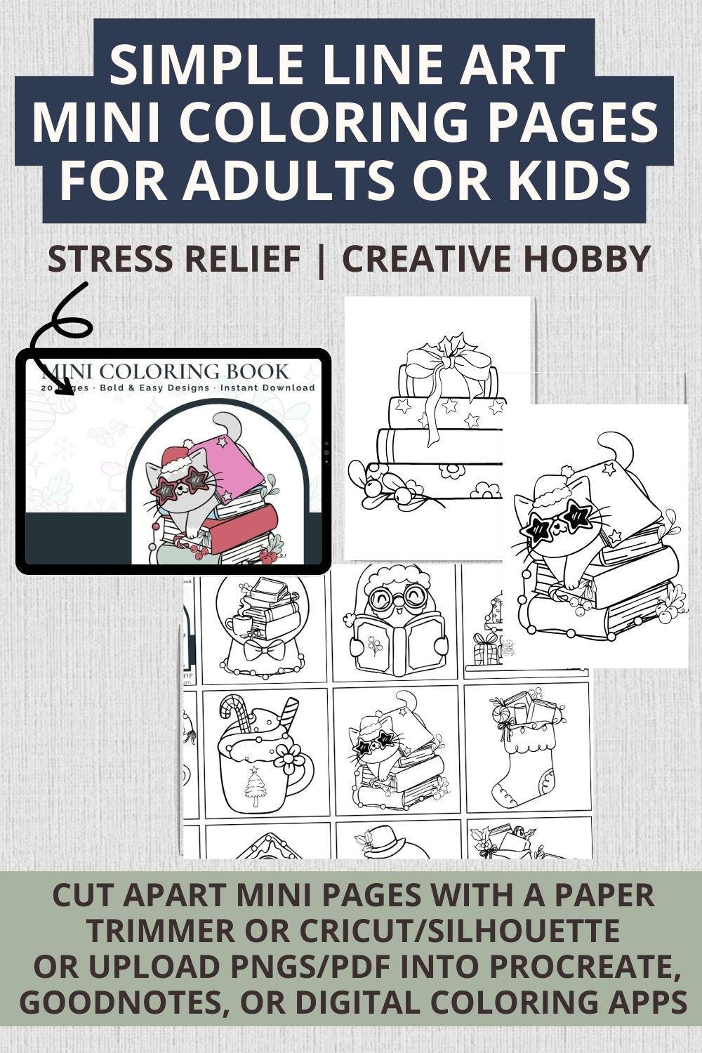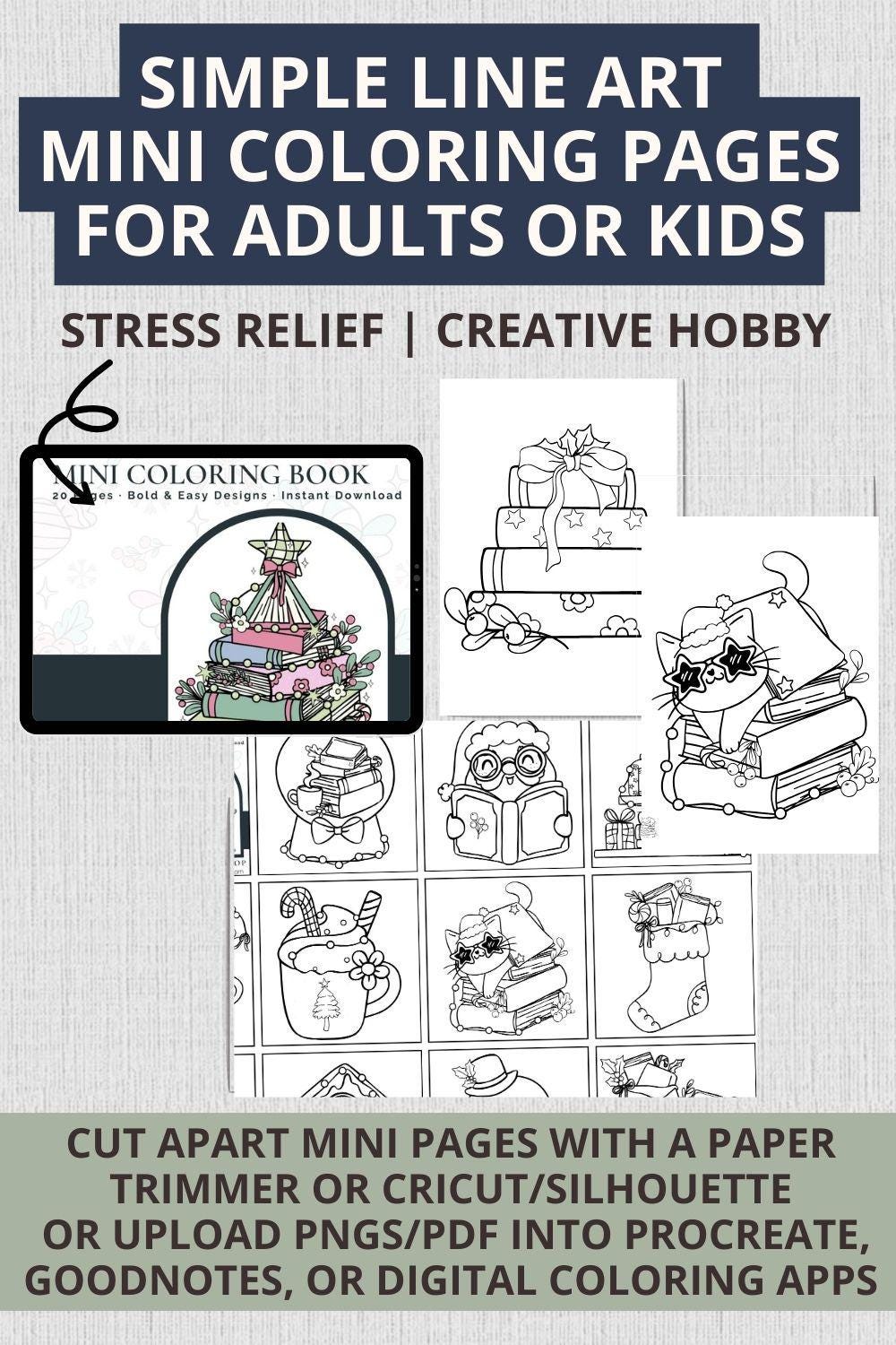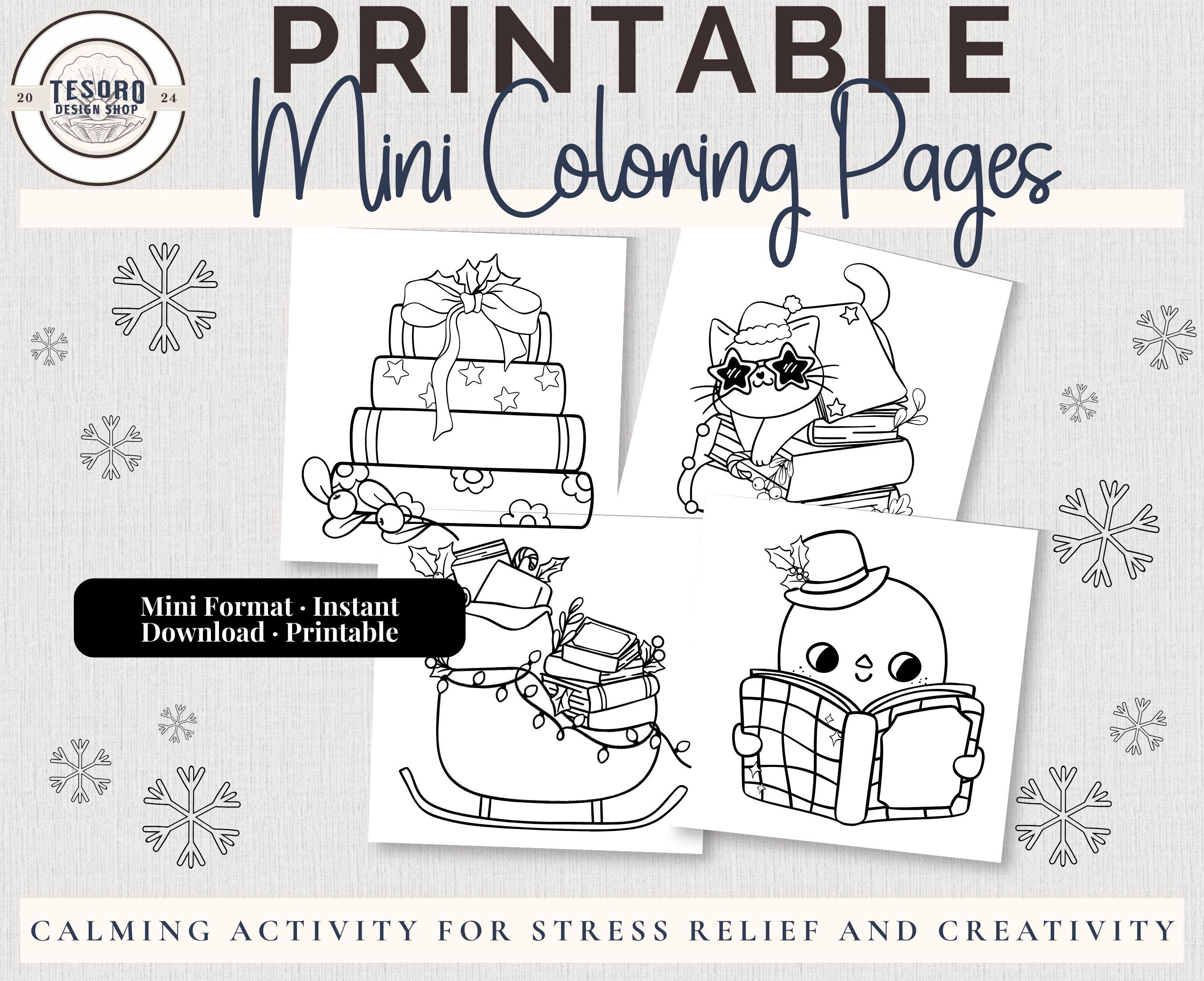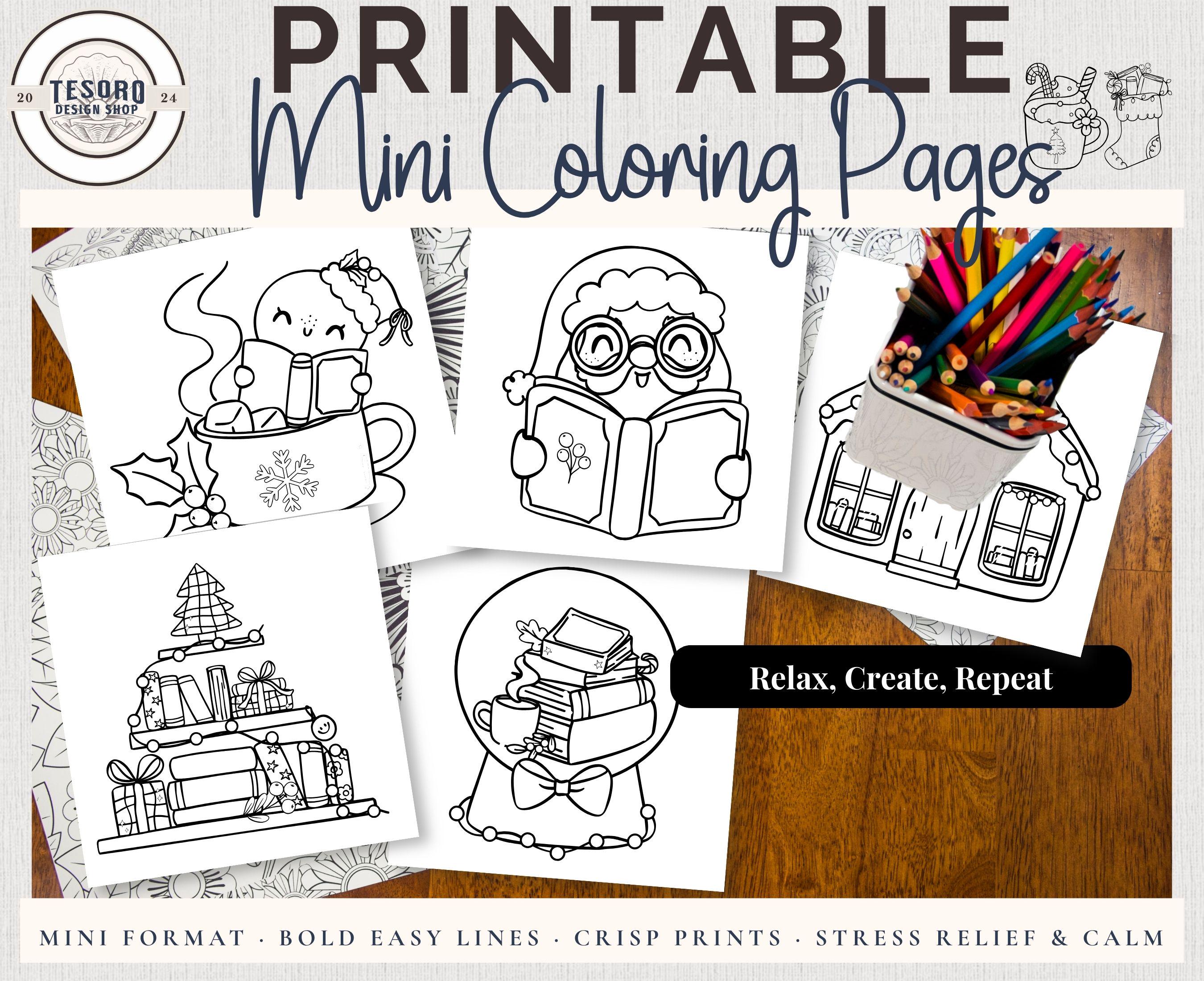 Mini Coloring Pages Retro Christmas | Easy Bold Line Art Kids Adults | Simple Digital Download 20 Page Printable PDF | Relaxation Stress Relief Self Care Hobby |Holiday Festive Activity | Cozy Christmas