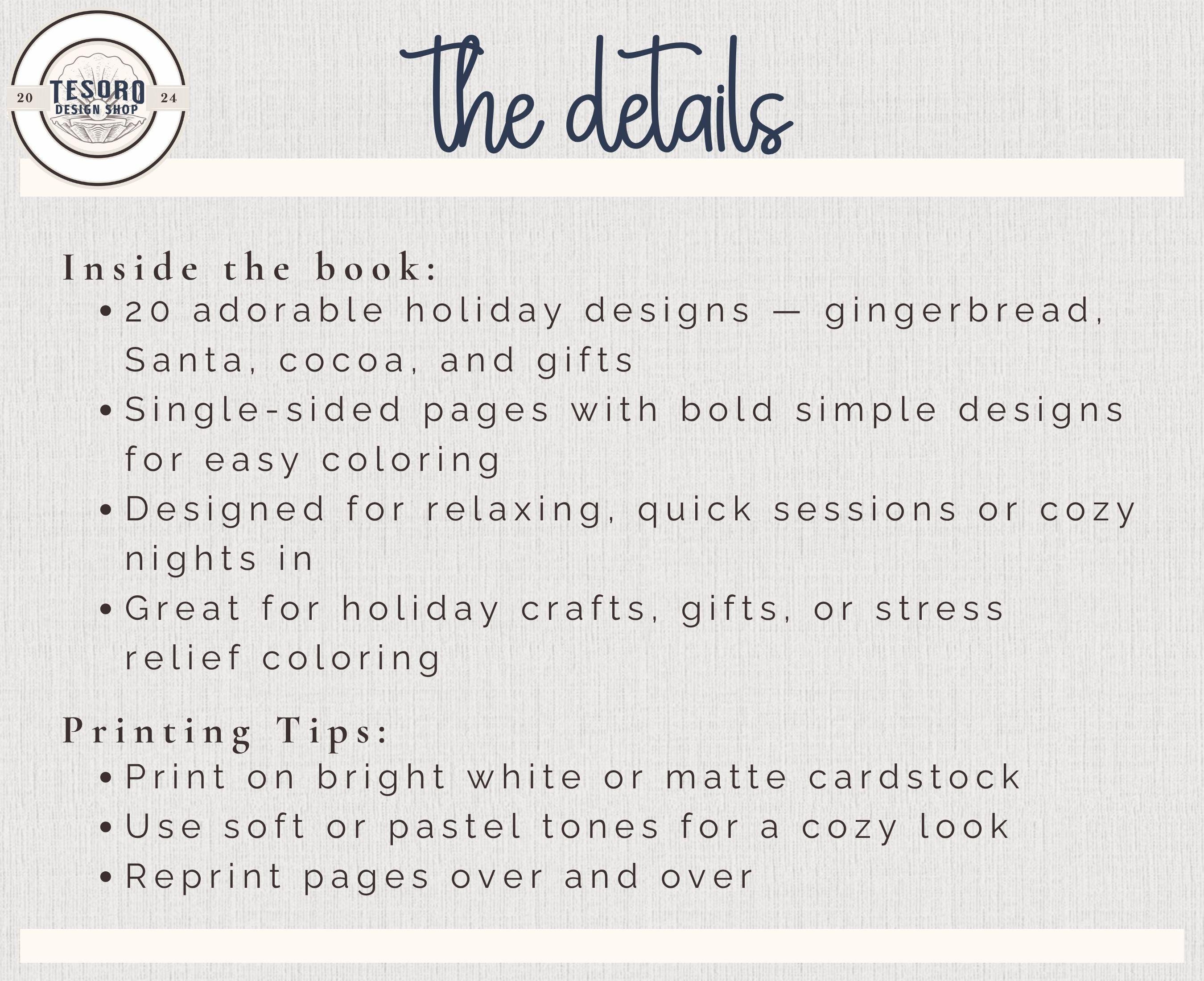 Celebrate the season with this adorable mini Christmas coloring book! Packed with 20 bold, easy-to-color holiday designs—festive lights, cozy sweaters, cocoa cups, presents, sleigh rides, and cheerful characters—this mini printable book is perfect for kids, adults, teachers, and anyone who wants a quick creative escape during the holiday season.