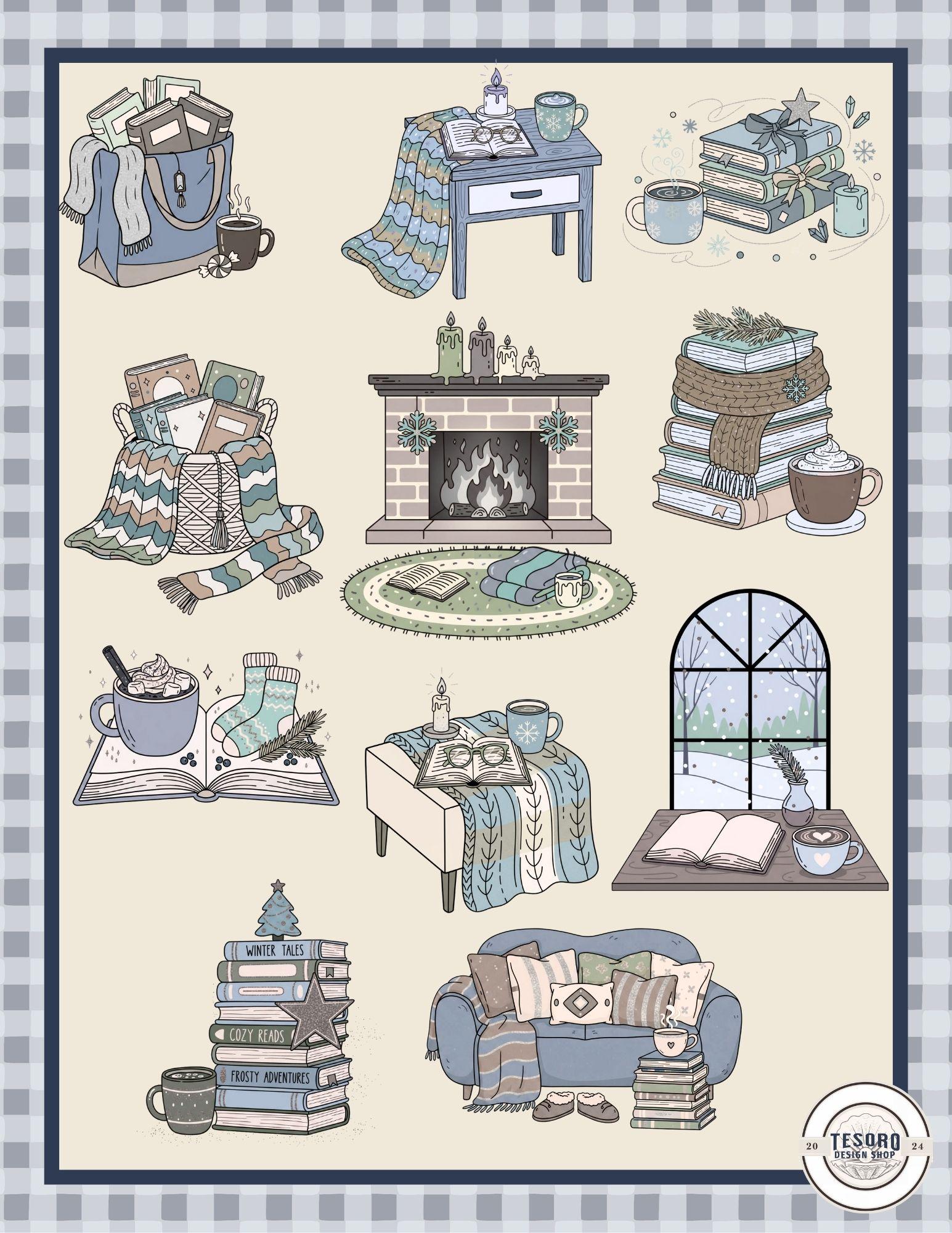 cozy winter reading clipart • winter clipart bundle png • cozy aesthetic png stickers • bookish winter clip art • winter reading graphics • cozy digital stickers png • hygge winter illustrations • printable winter clipart • clipart for journals planners • classroom winter decor clipart • diy sticker sheet graphics • cozy book lover art png • winter aesthetic bundle