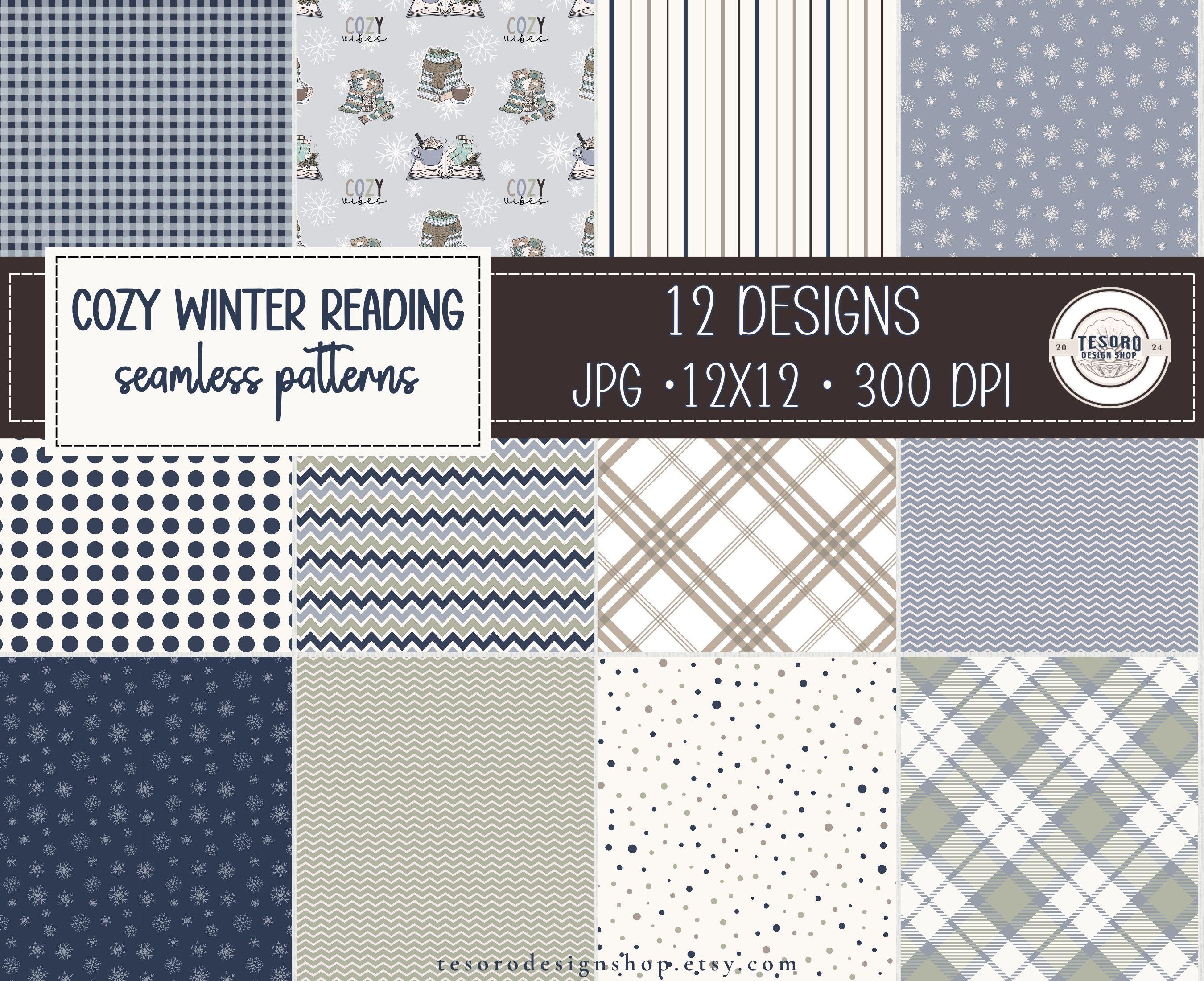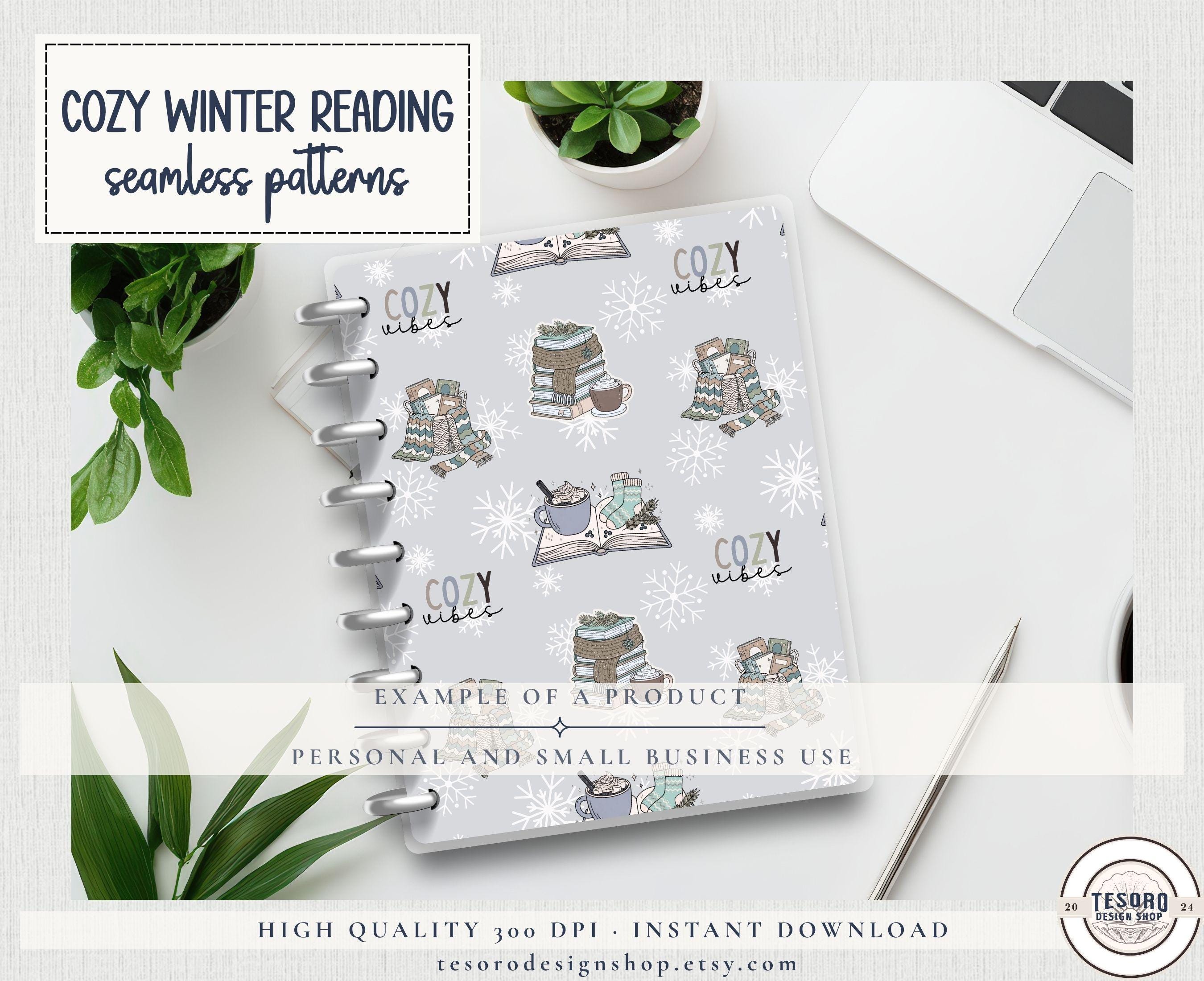 Winter digital paper • bookish pattern • seamless backgrounds • winter clipart • cozy reading theme • bookish graphics • printable sticker elements • PNG bundles for Cricut/Canva users • seasonal winter crafting • cozy aesthetic clipart • sticker-making • journaling • teacher resources