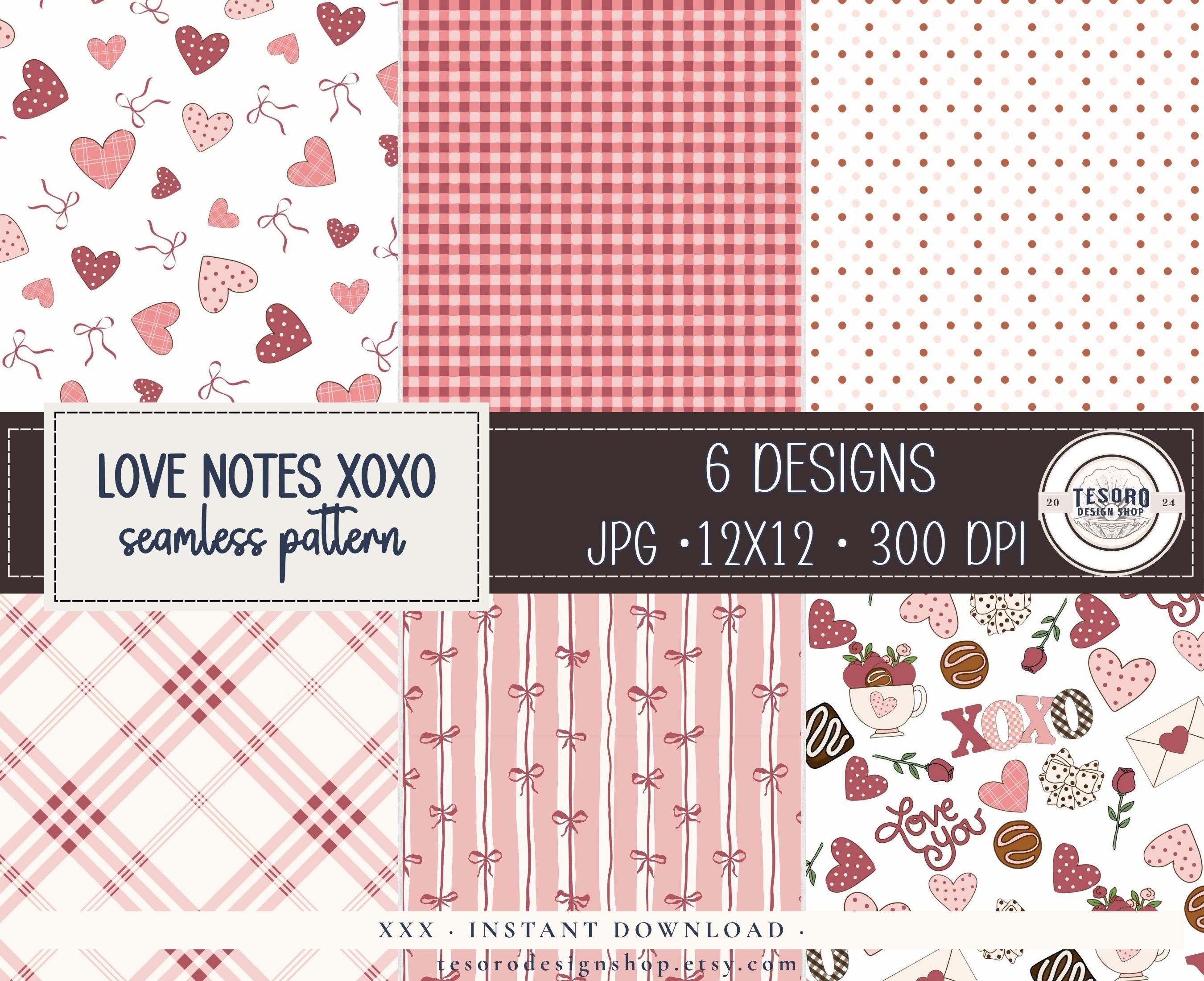 This Valentine love notes seamless patterns set features a collection of original illustrated elements created digitally. Files are provided as high-quality 300 DPI transparent PNGs, perfect for planners, classroom decor, Cricut projects, Canva designs, and sublimation crafts.