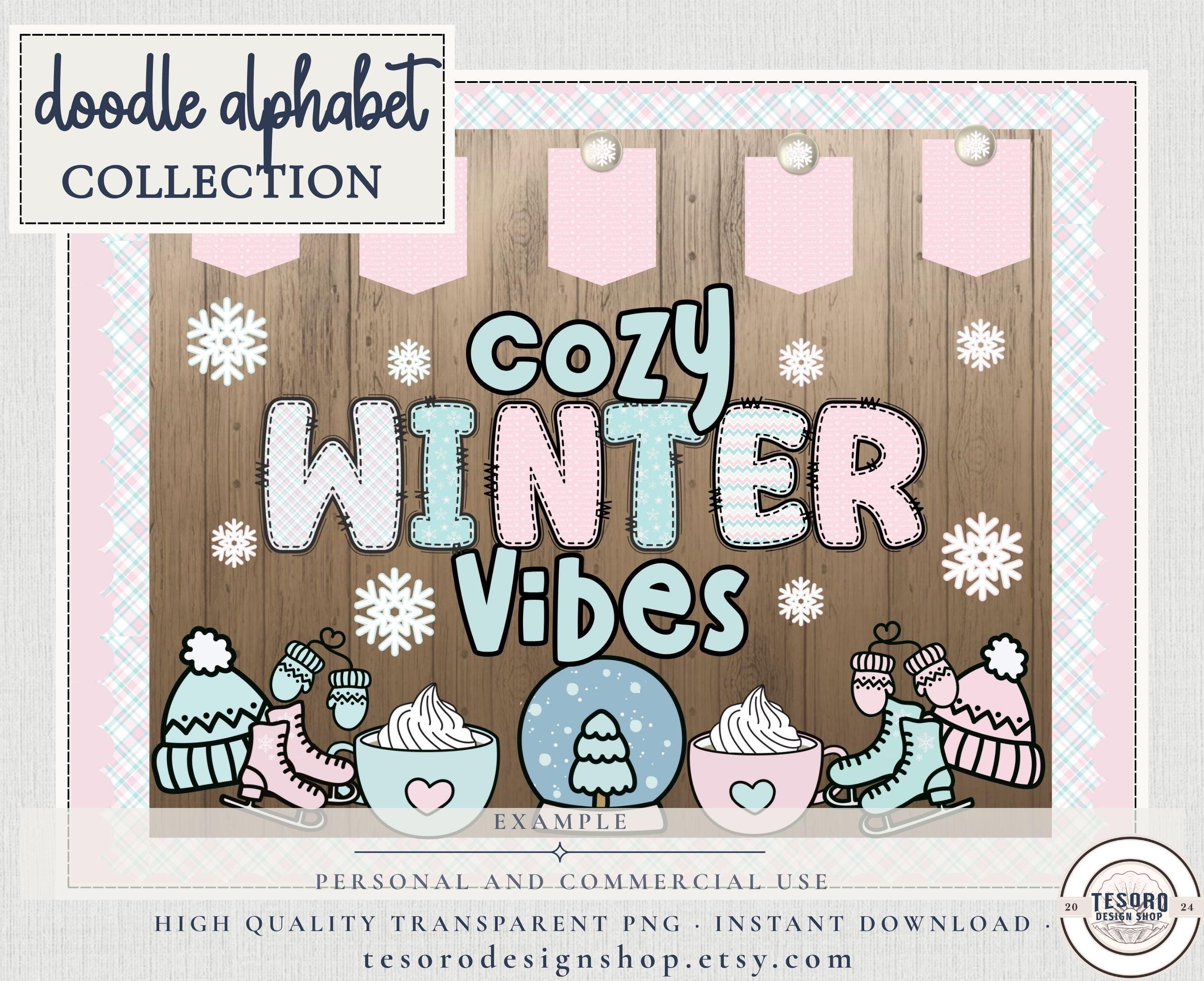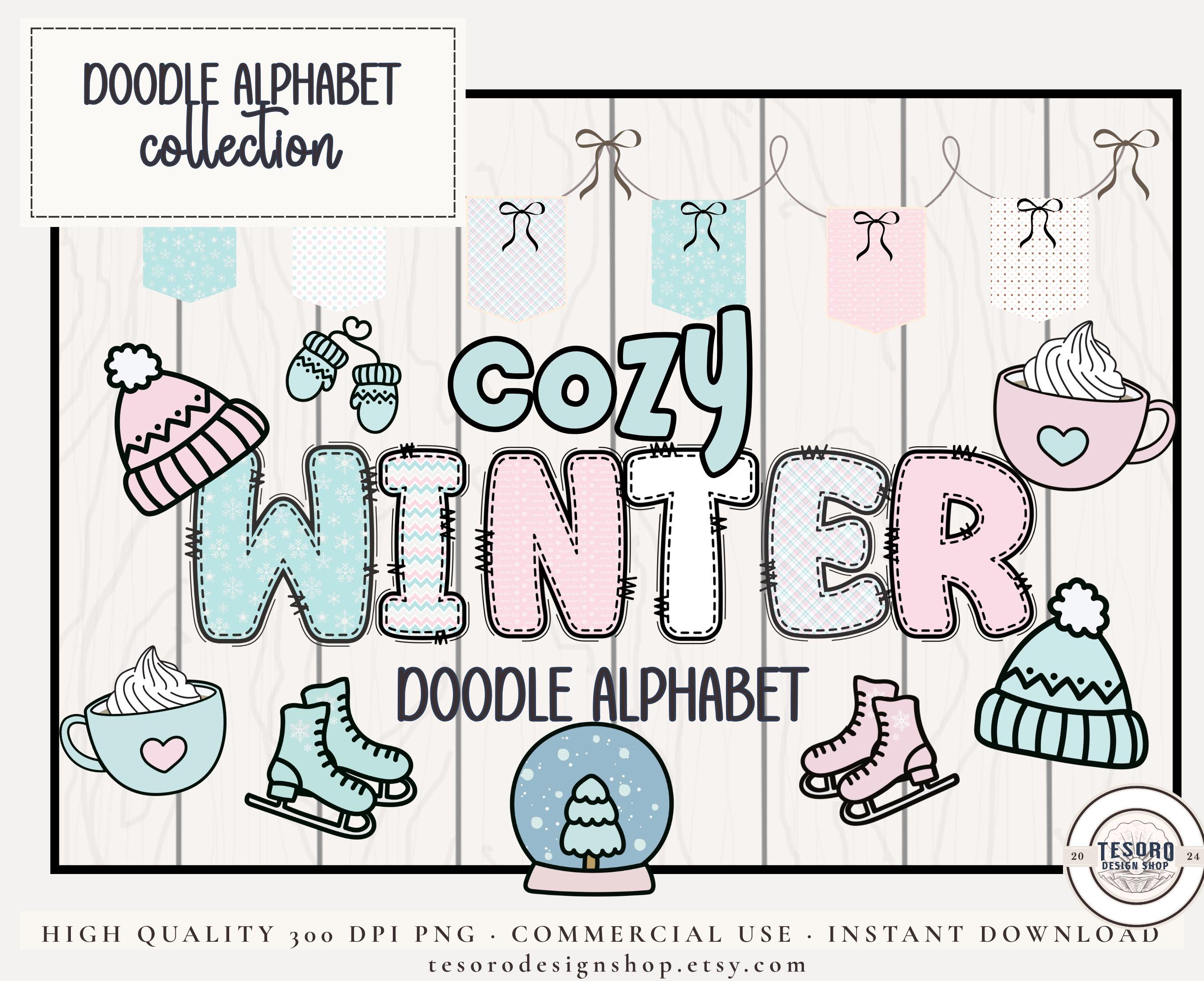 Create cozy, winter-themed titles, names, and displays with this playful doodle alphabet set—perfect for teachers, makers, and small businesses who want reusable letter graphics with personality.