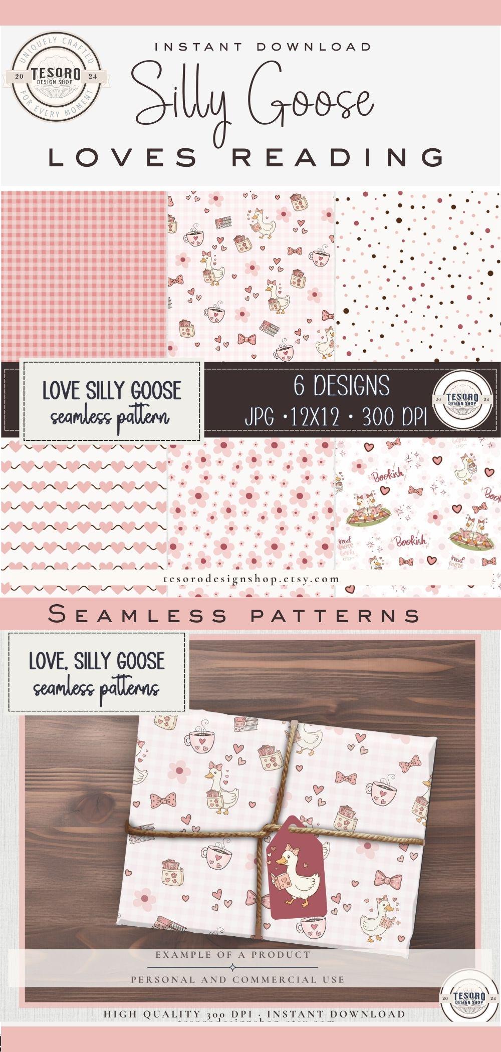 Create cozy, love-filled craft designs with this Love, Silly Goose bundle featuring adorable reading geese coordinating seamless patterns.