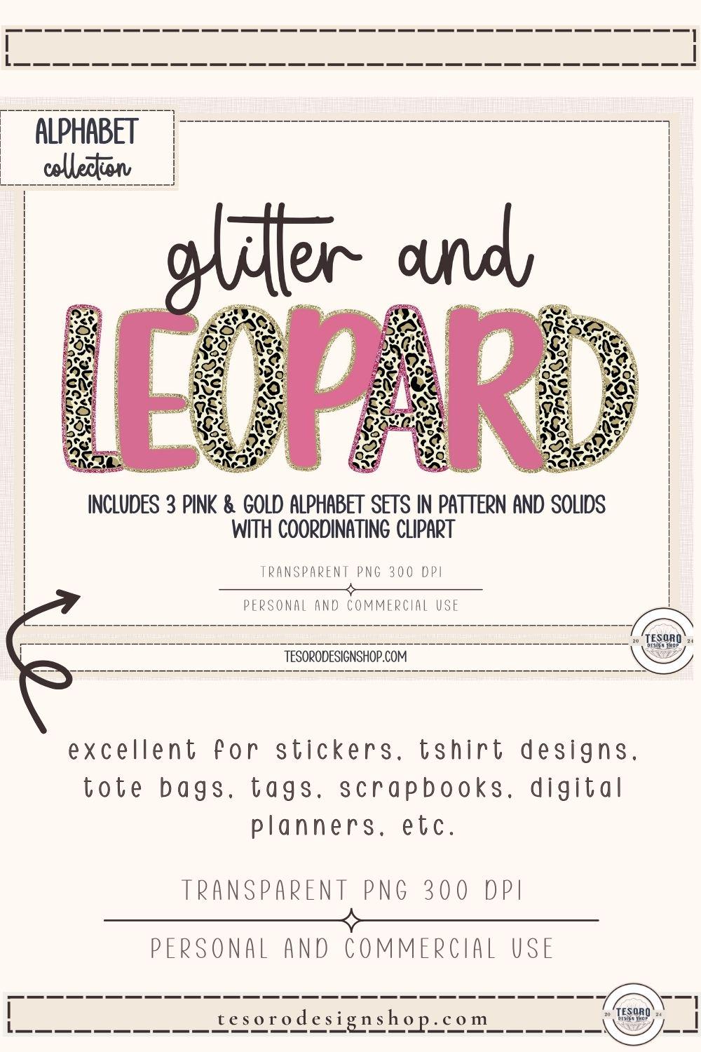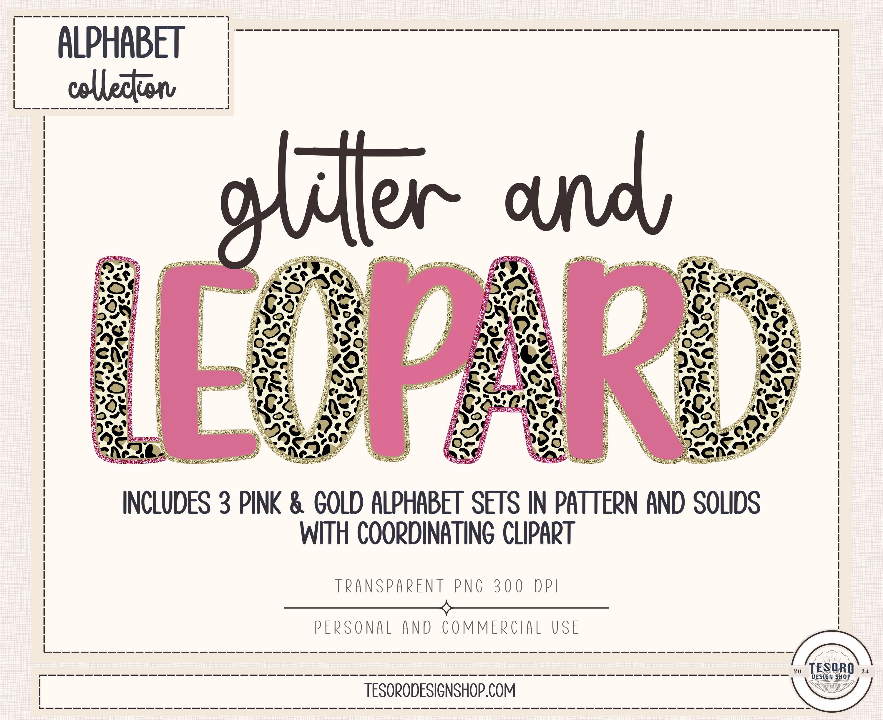 Designed to coordinate with the Glitter & Leopard Alphabet Collection