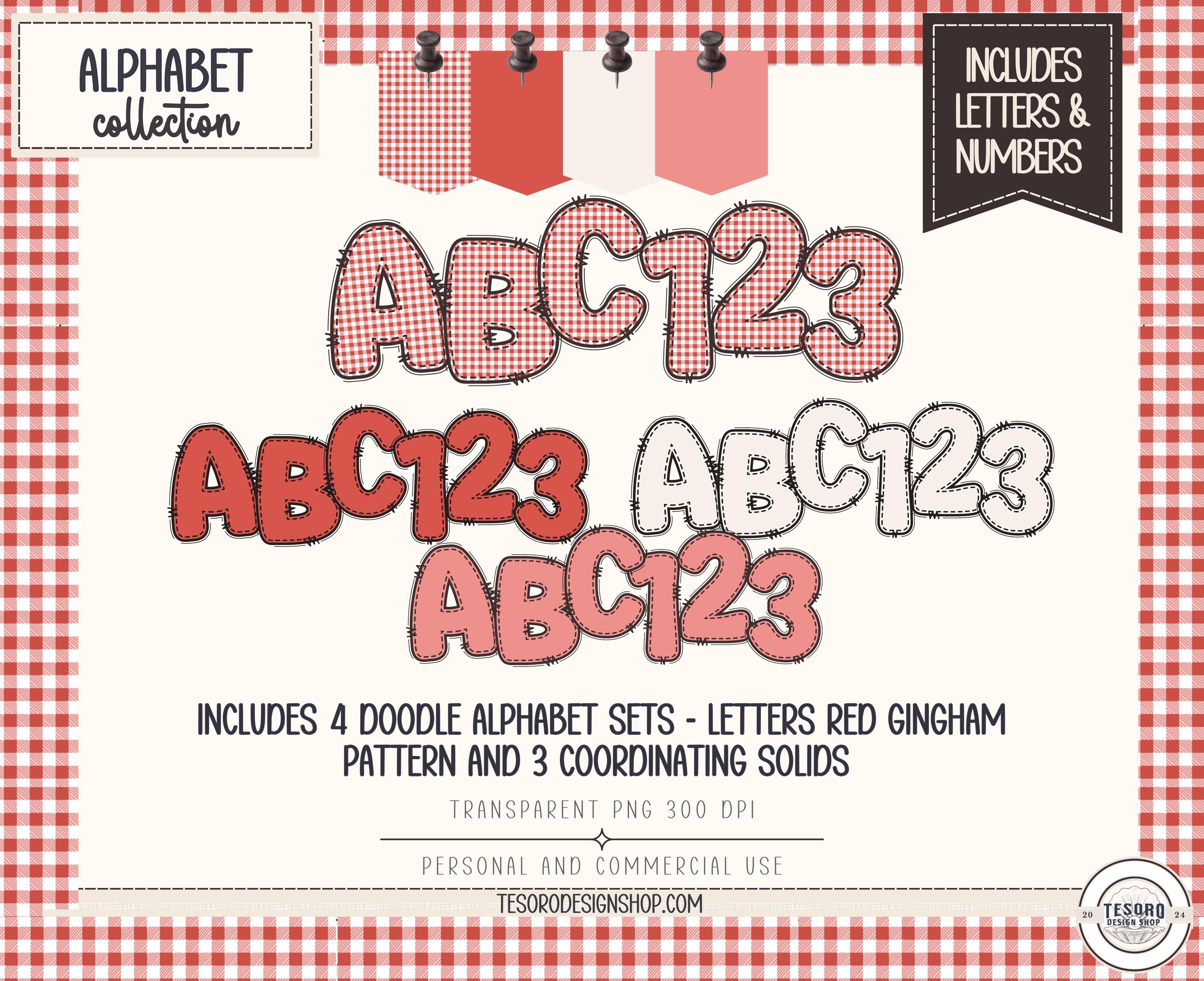 Add cozy, on-trend charm to your designs with this gingham doodle alphabet PNG mini pack from the Gingham Doodle Alphabet Collection. Featuring a classic red gingham pattern with coordinating solid colors, this alphabet set is designed for crafters, designers, and makers who want a timeless look that works year-round.
