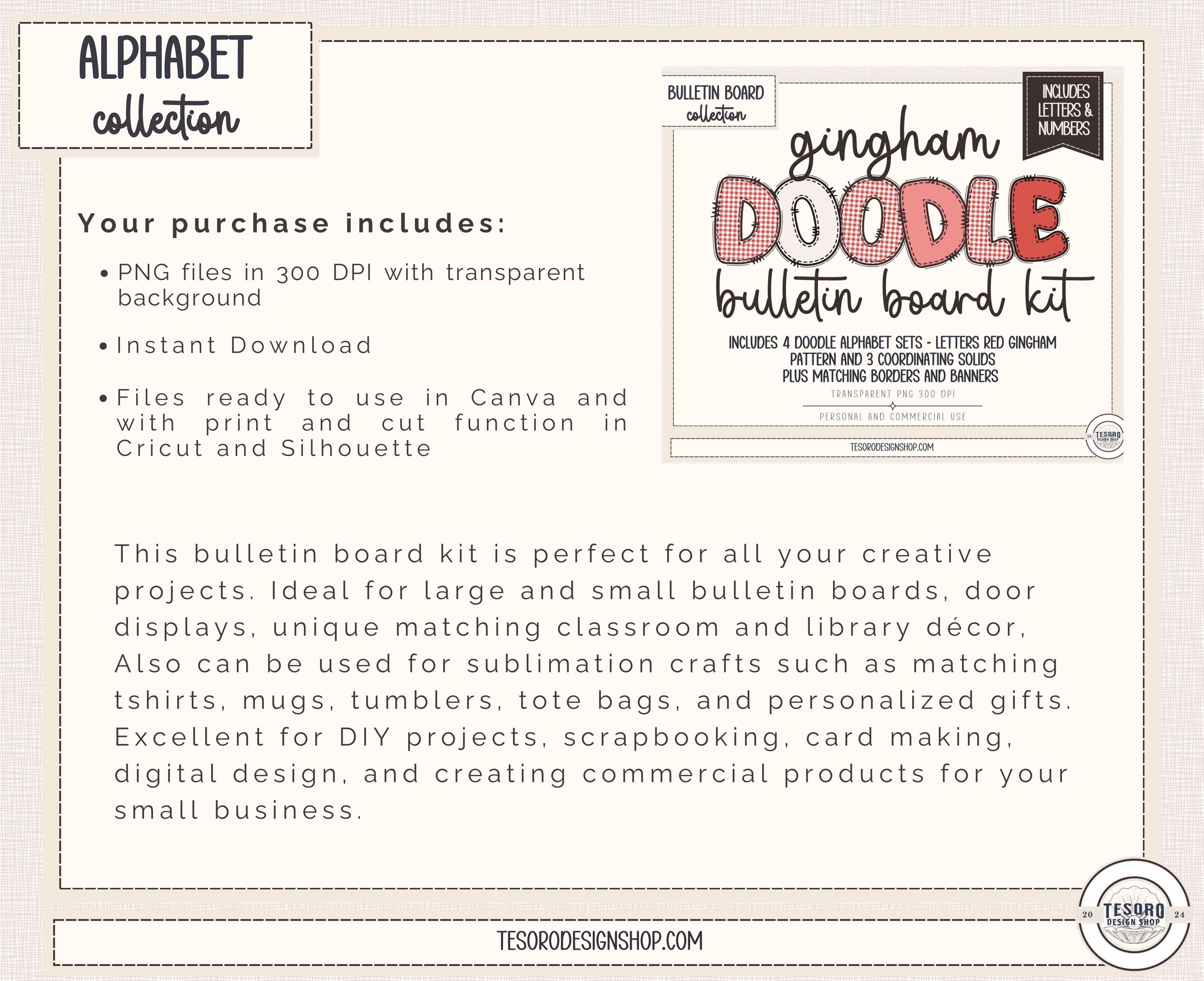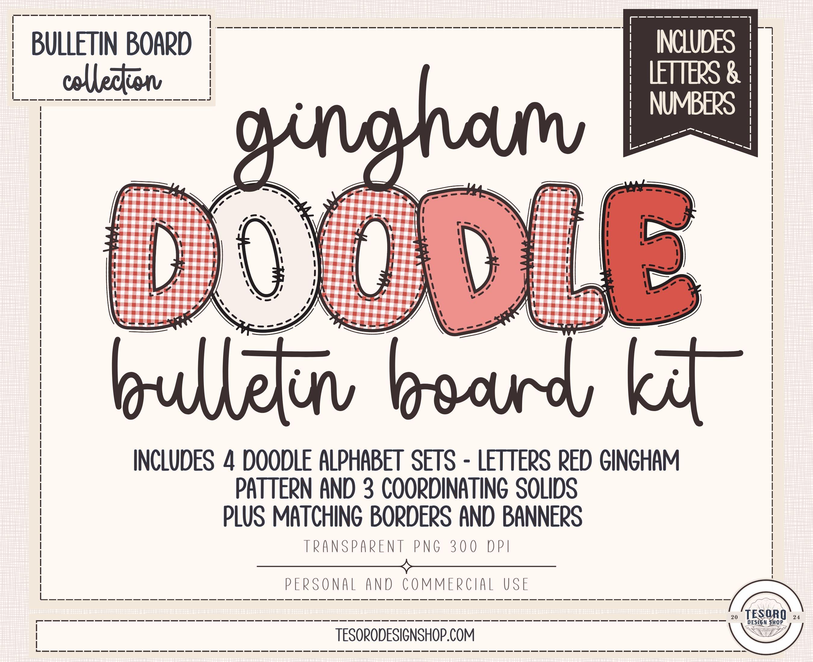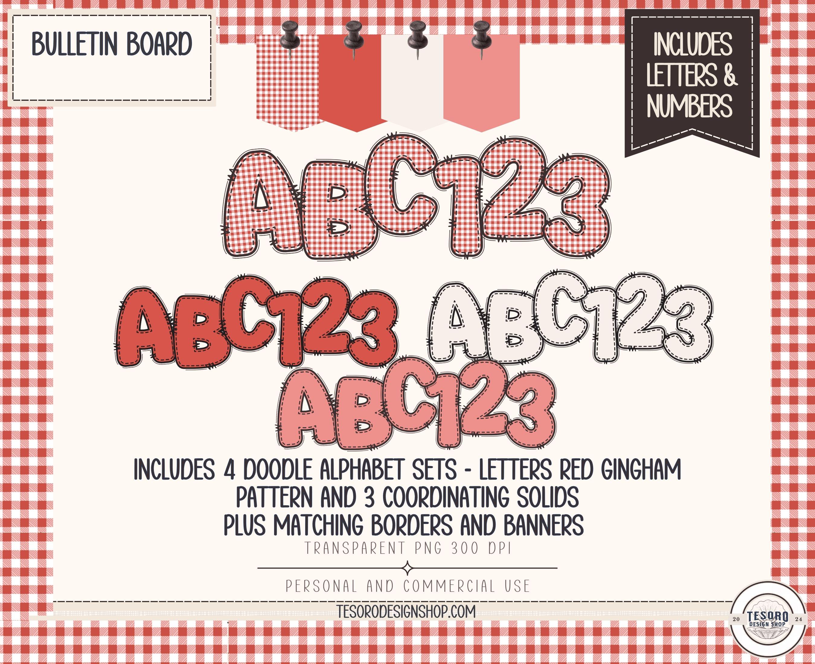doodle alphabet PNG, gingham alphabet, bulletin board letters, classroom decor