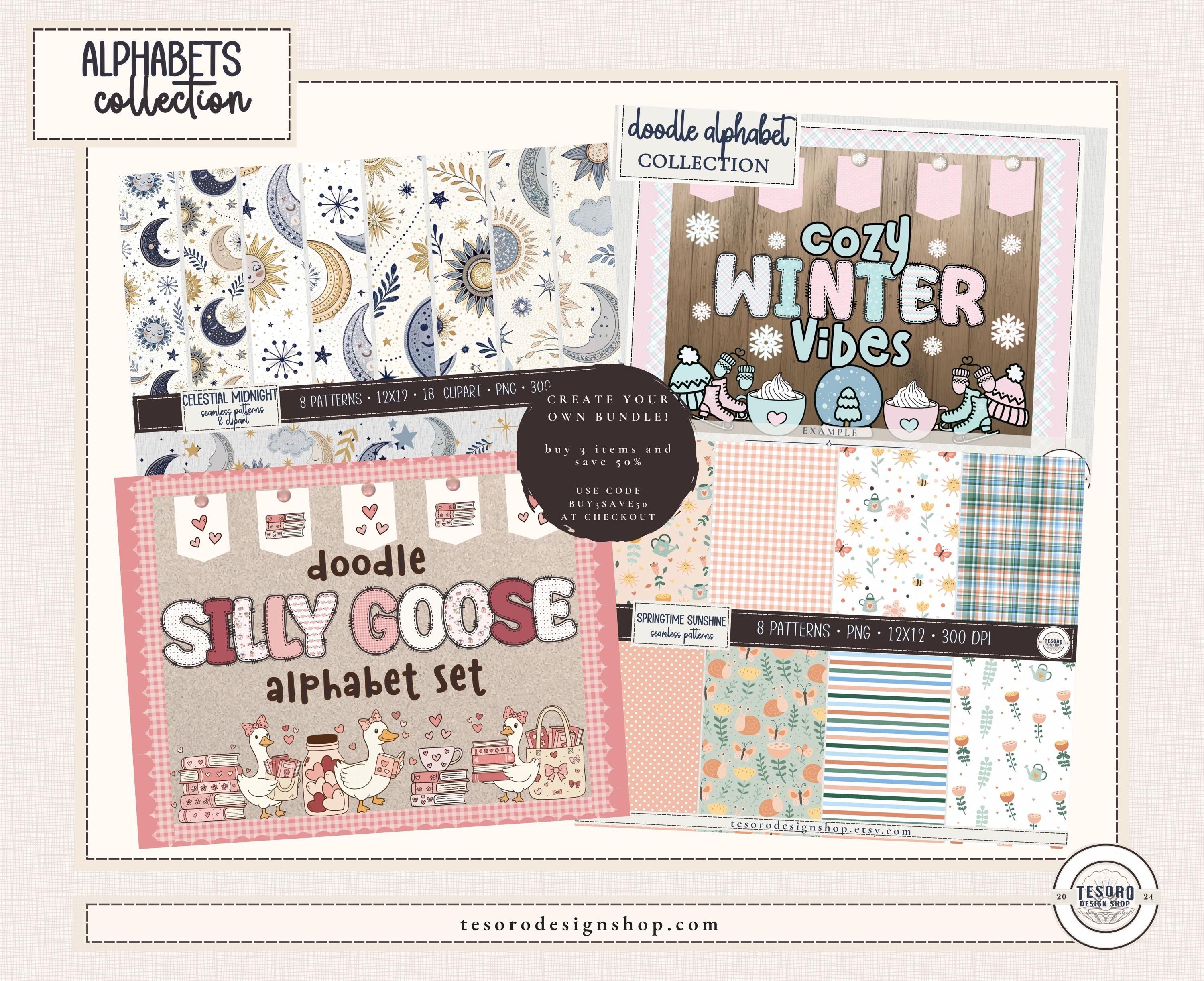 🎨 Gingham Doodle Alphabet PNG for Classroom Displays