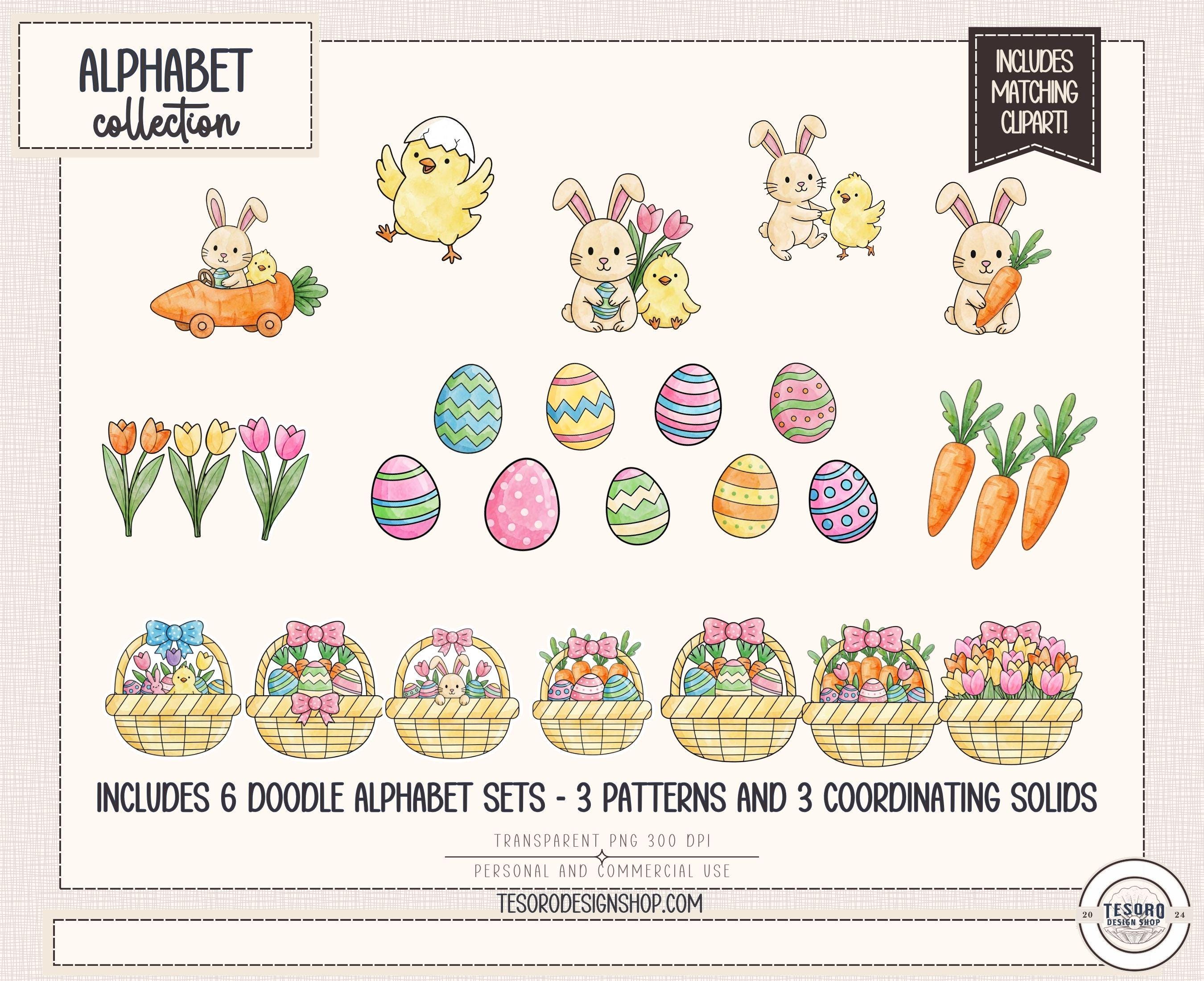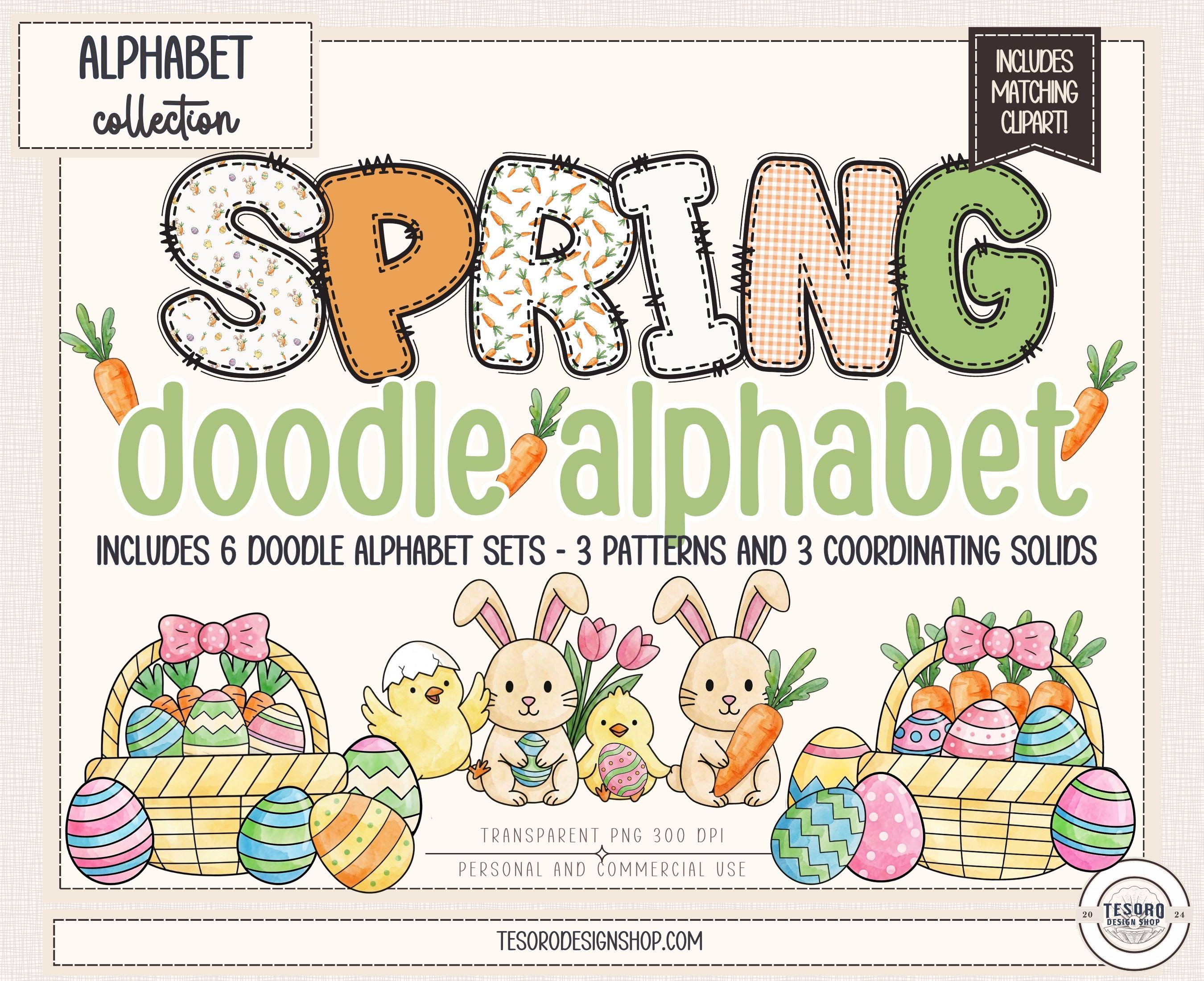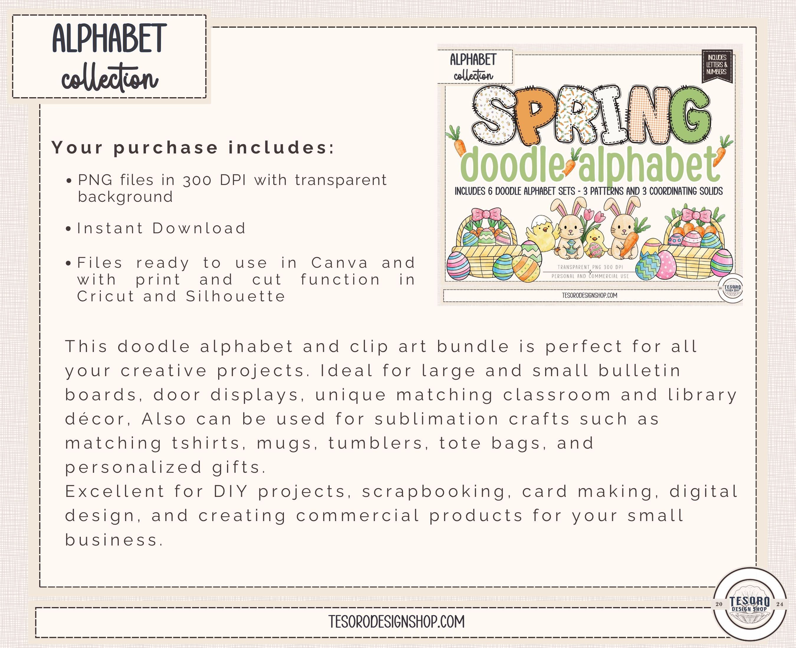 doodle alphabet PNG bundle • printable alphabet letters PNG • alphabet PNG set for Cricut • commercial use alphabet clip art • Cricut makers alphabet • spring easter craft letters