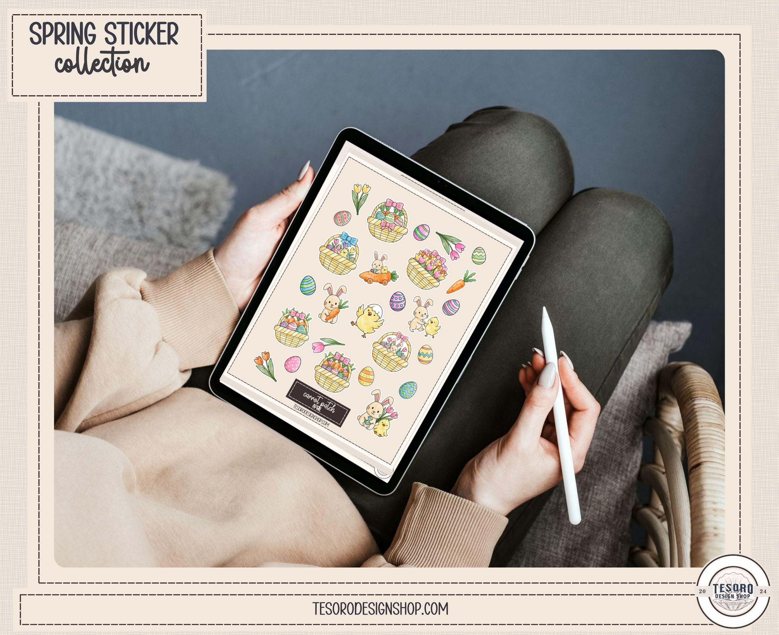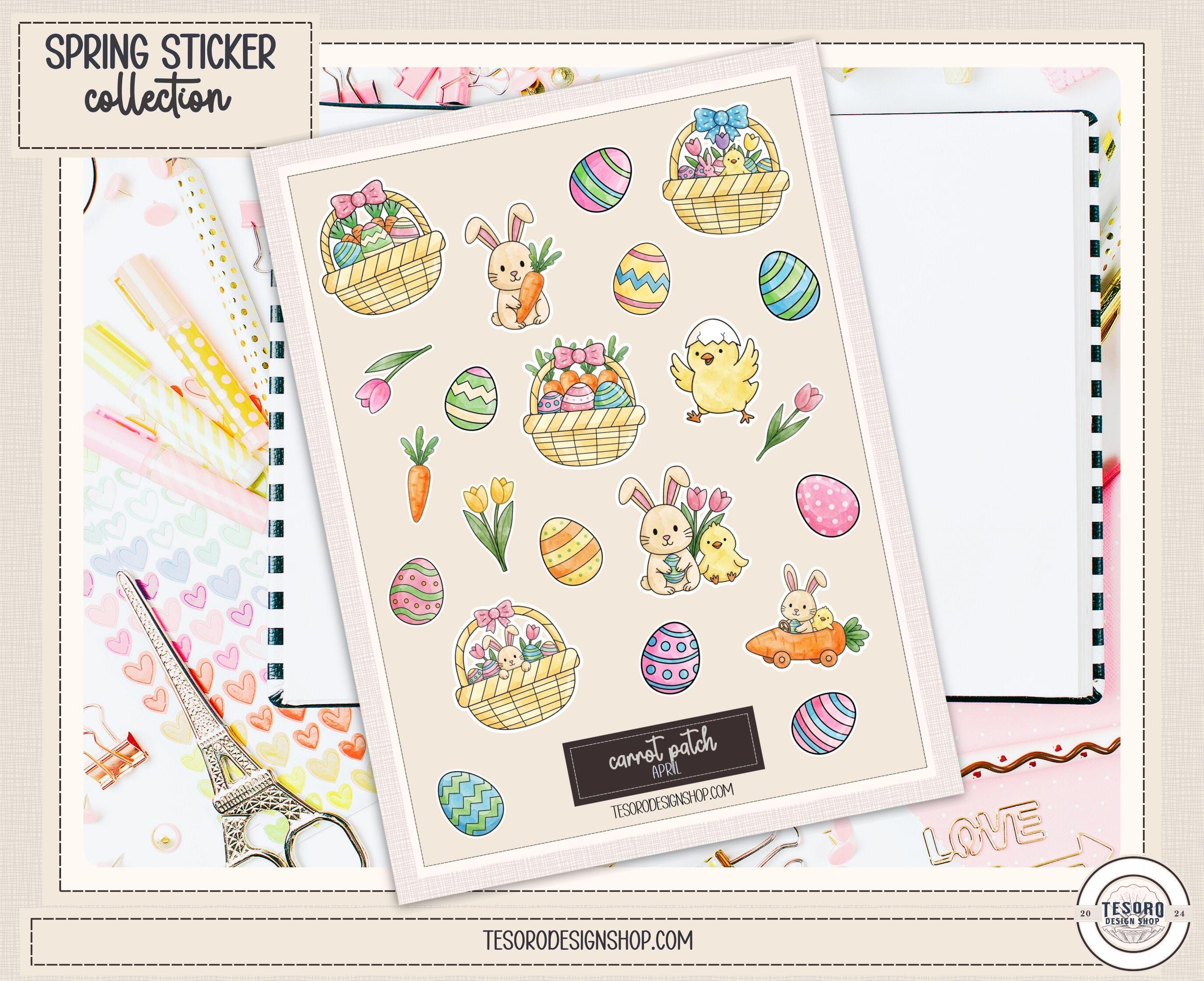 Add a touch of spring charm to your planner pages with this Carrot Patch spring sticker sheet collection. These adorable doodle stickers featuring bunnies, chicks, eggs, baskets, carrots, and flowers are perfect for digital planners, journaling spreads, and seasonal decorating.