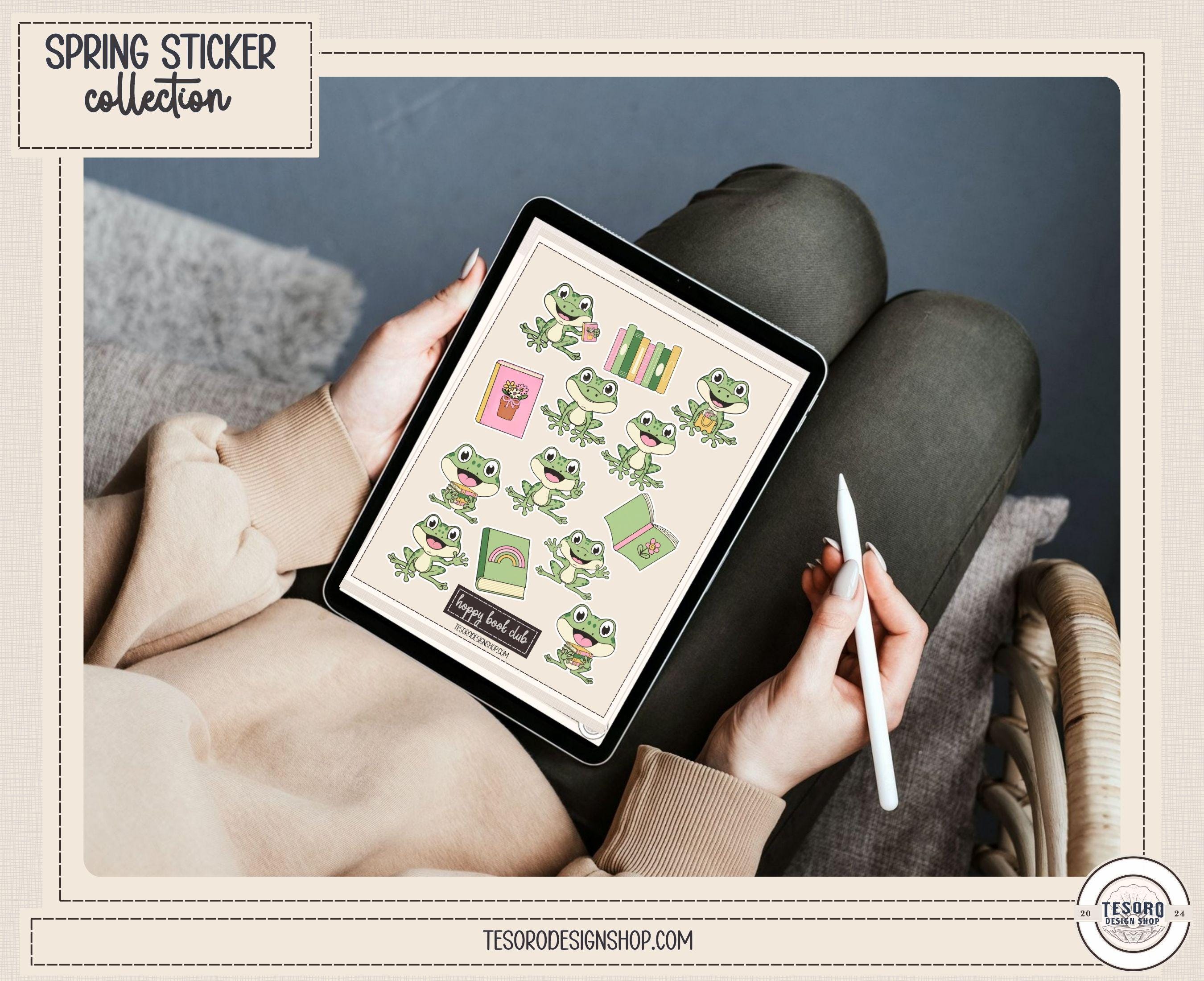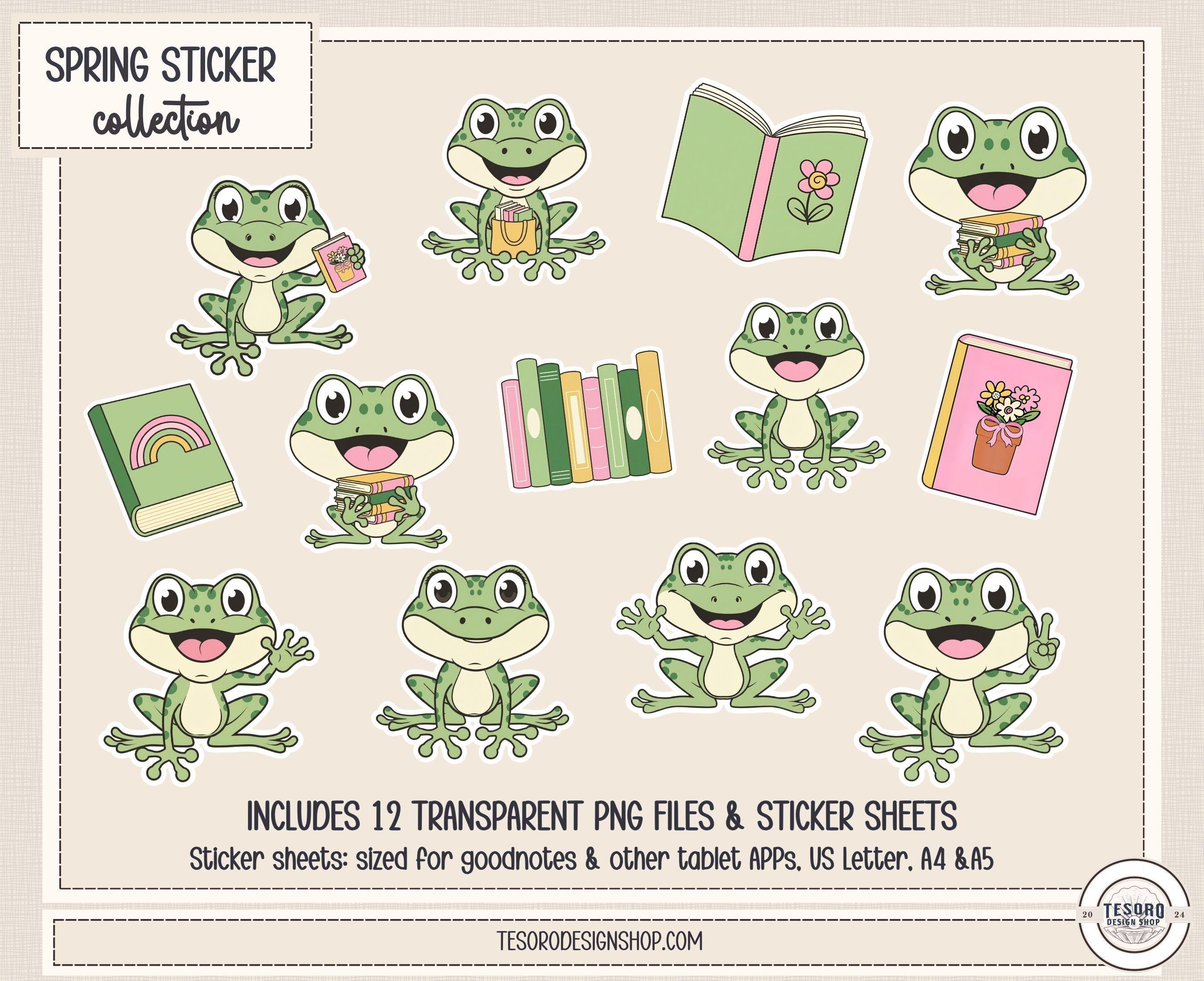 frog sticker set classroom • reading frog stickers • classroom reward stickers • spring planner frog stickers • spring clip art • Cricut crafts