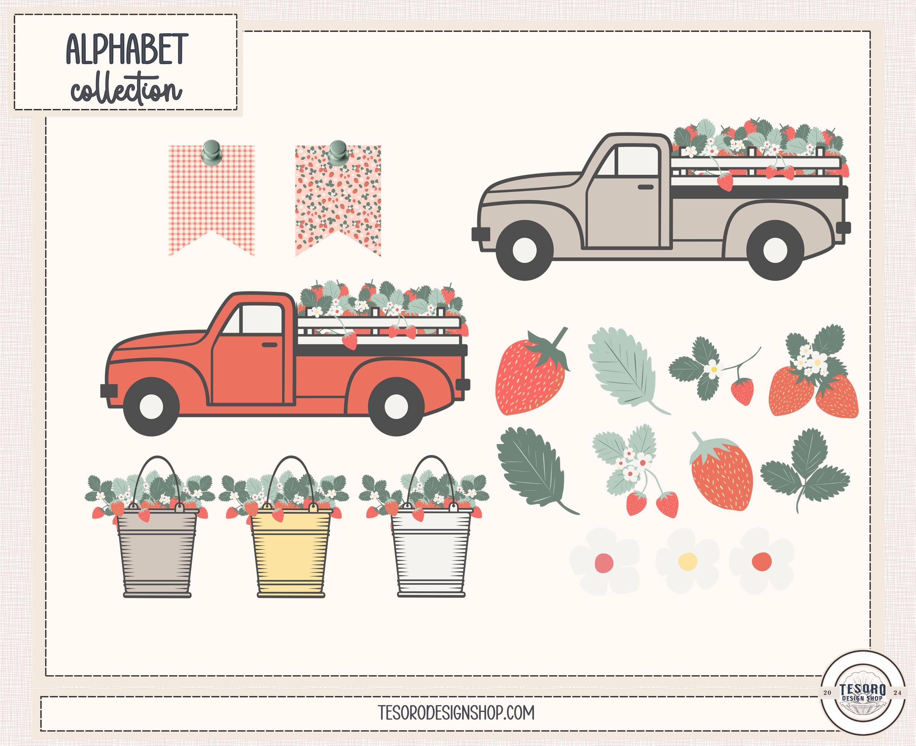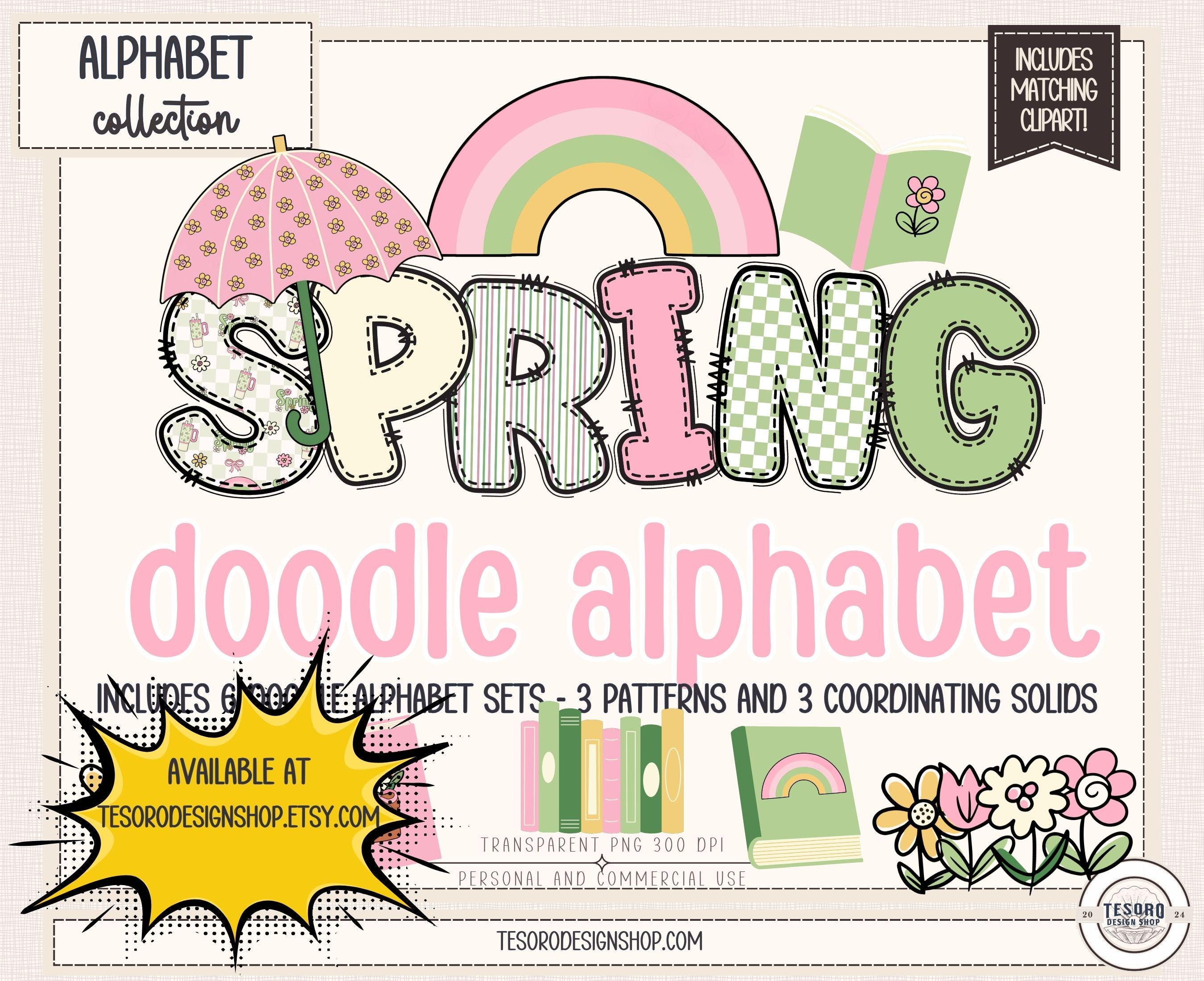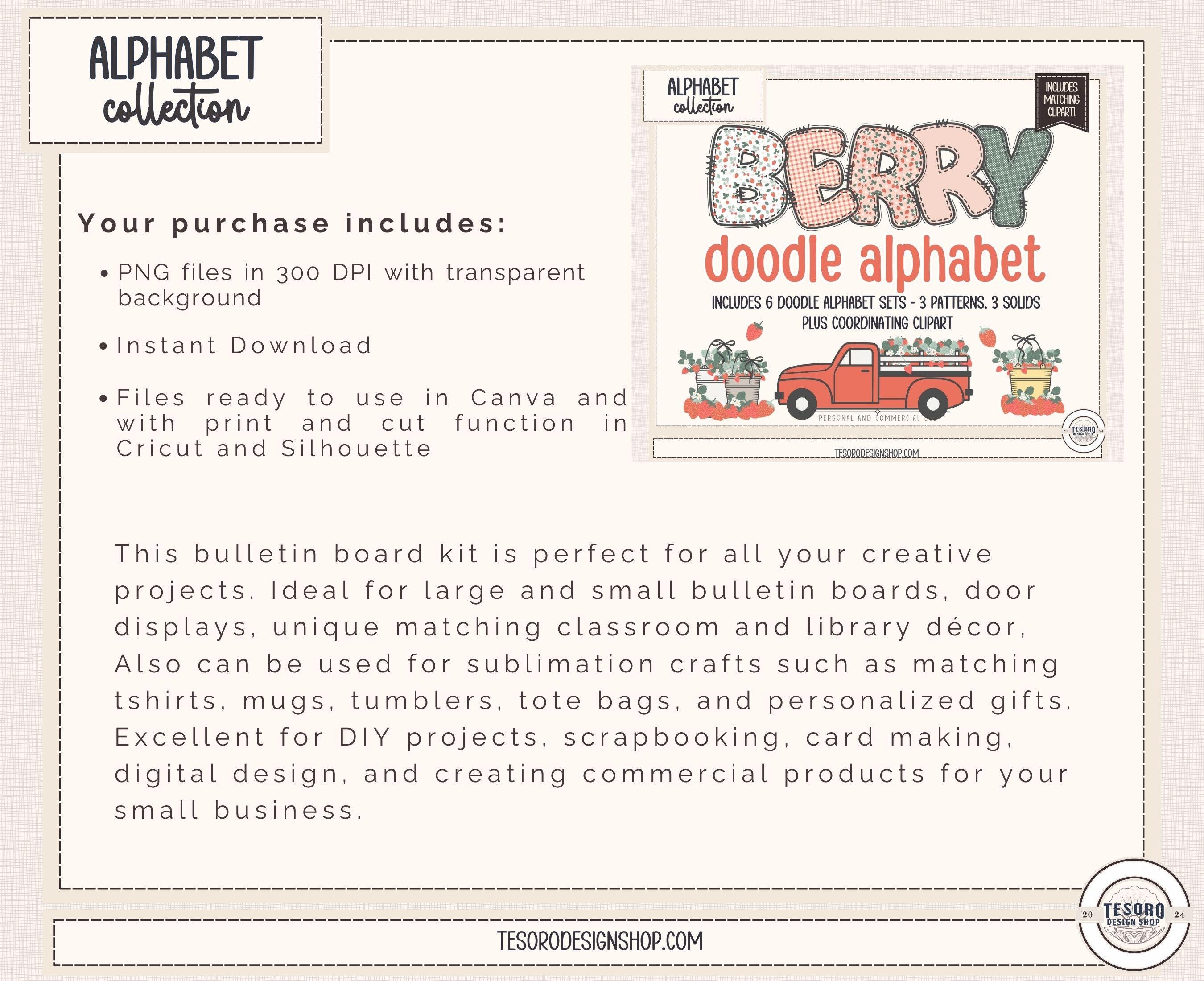 This strawberry alphabet bundle includes six coordinating doodle letter sets and matching clip art, designed for both classroom decor and creative projects.