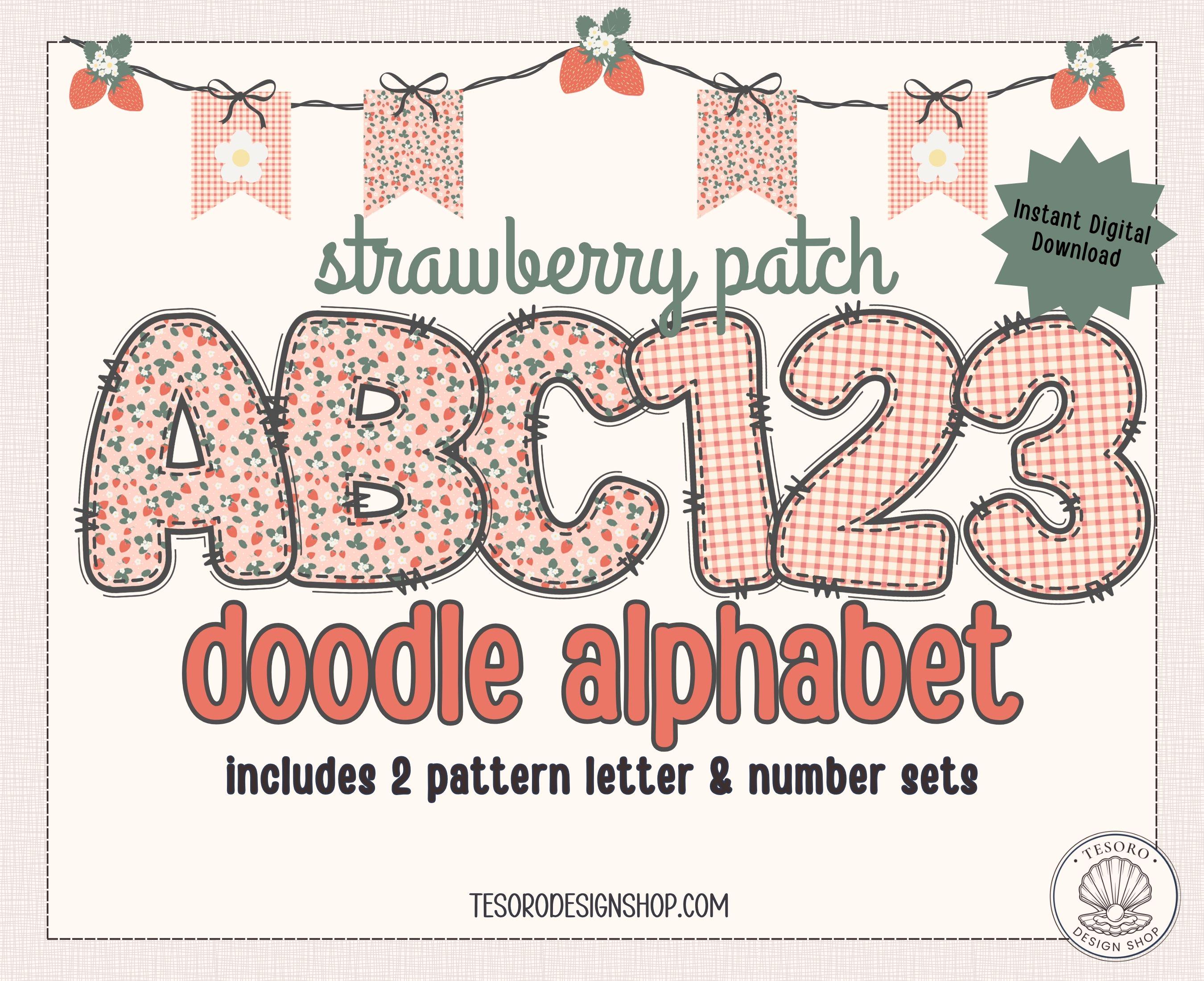 This strawberry doodle alphabet bundle includes two coordinating letter styles, perfect for crafting, product design, and small business use.