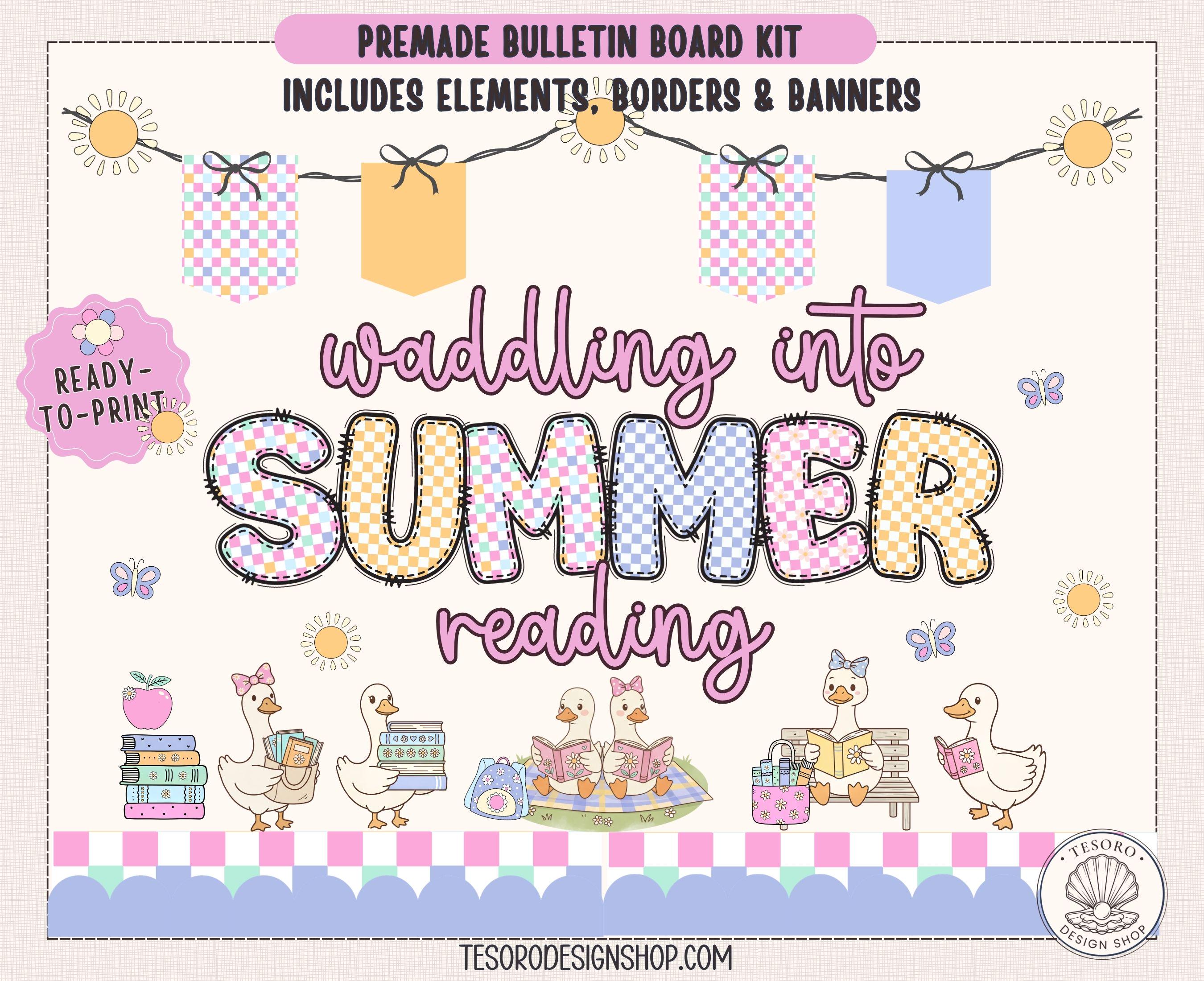 summer reading bulletin board kit printable • checker classroom decor • printable summer library display • classroom theme