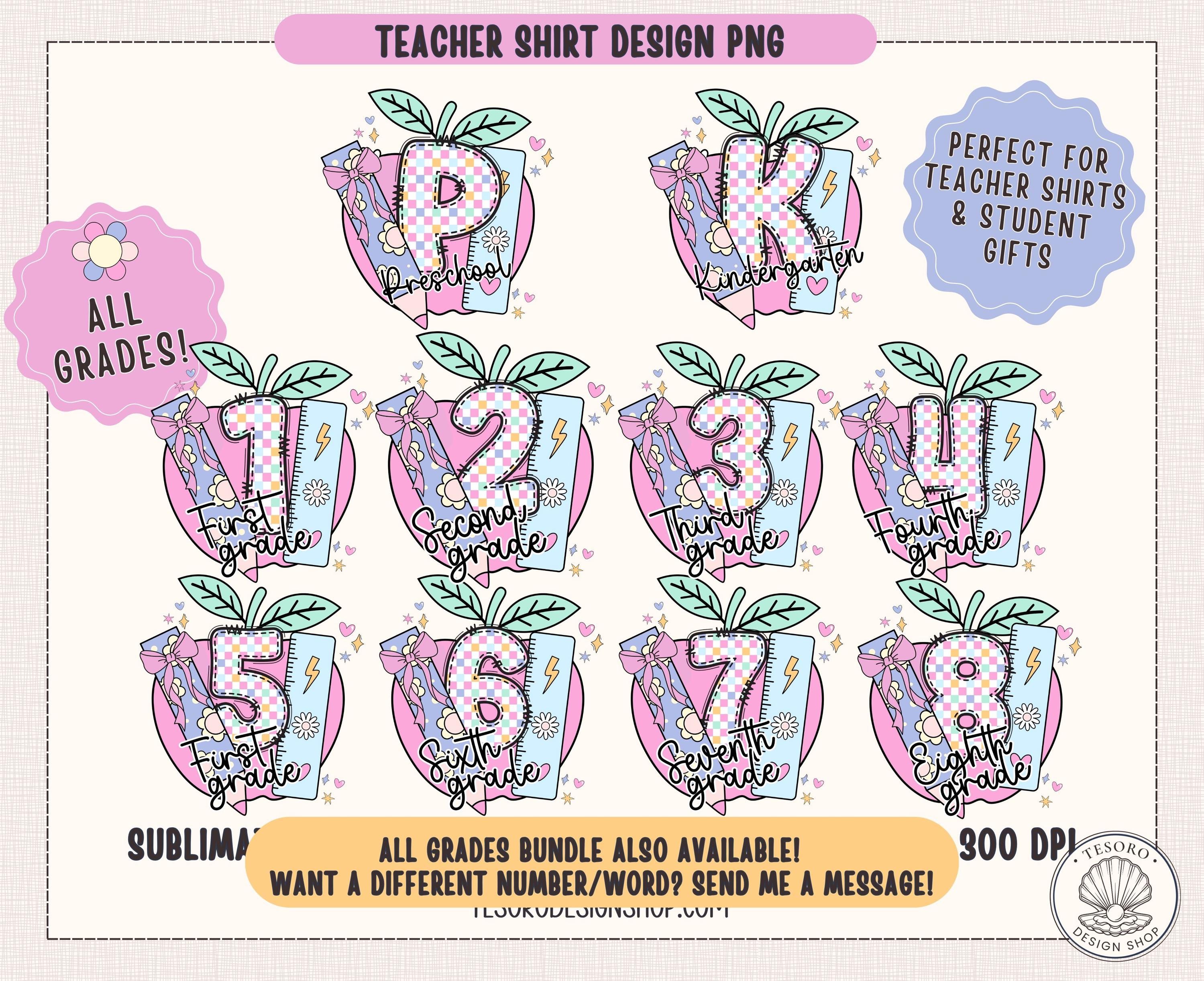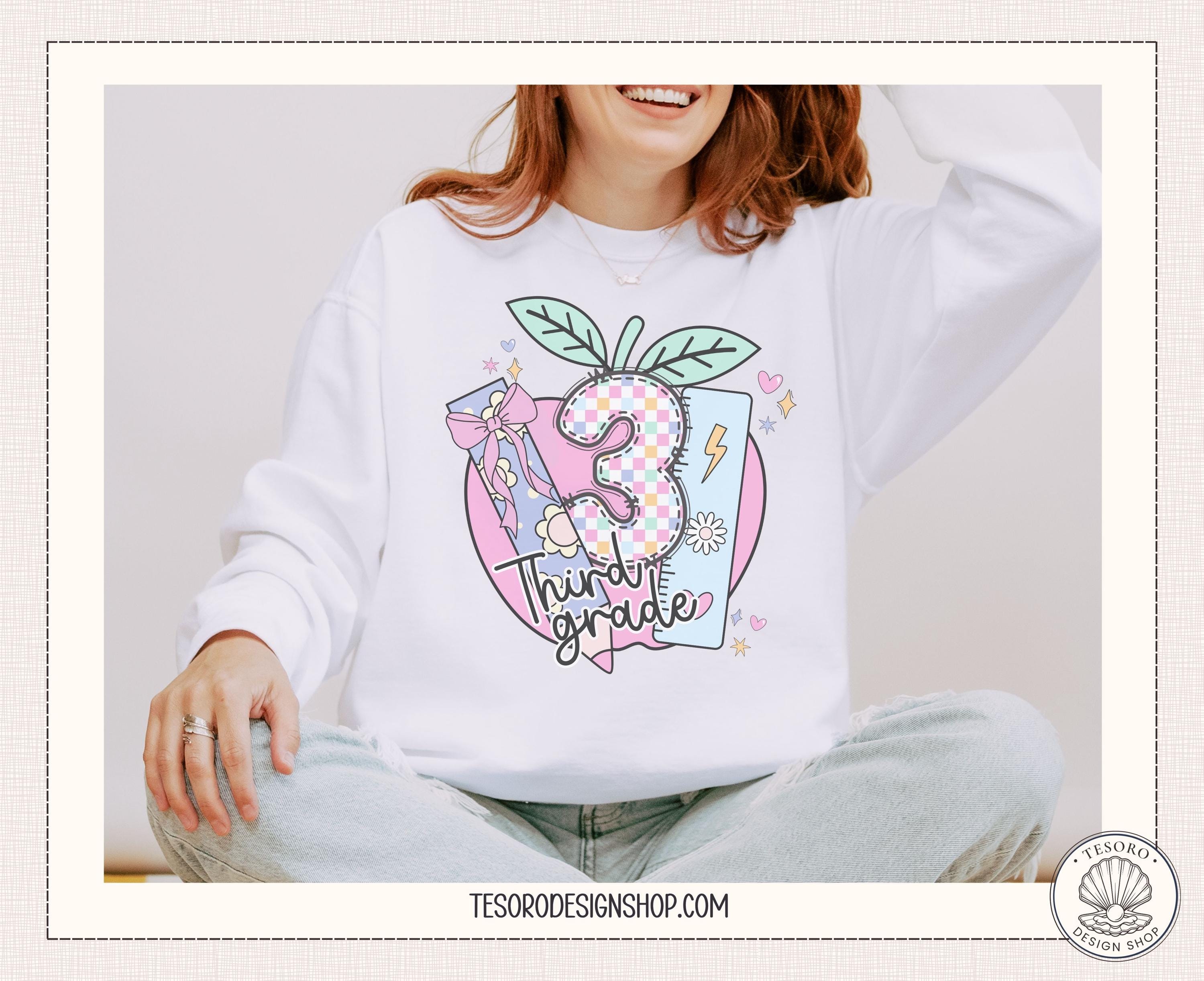 Celebrate the first day of school in style with this playful pastel checker apple collage shirt design—perfect for teachers, students, and back to school photos.