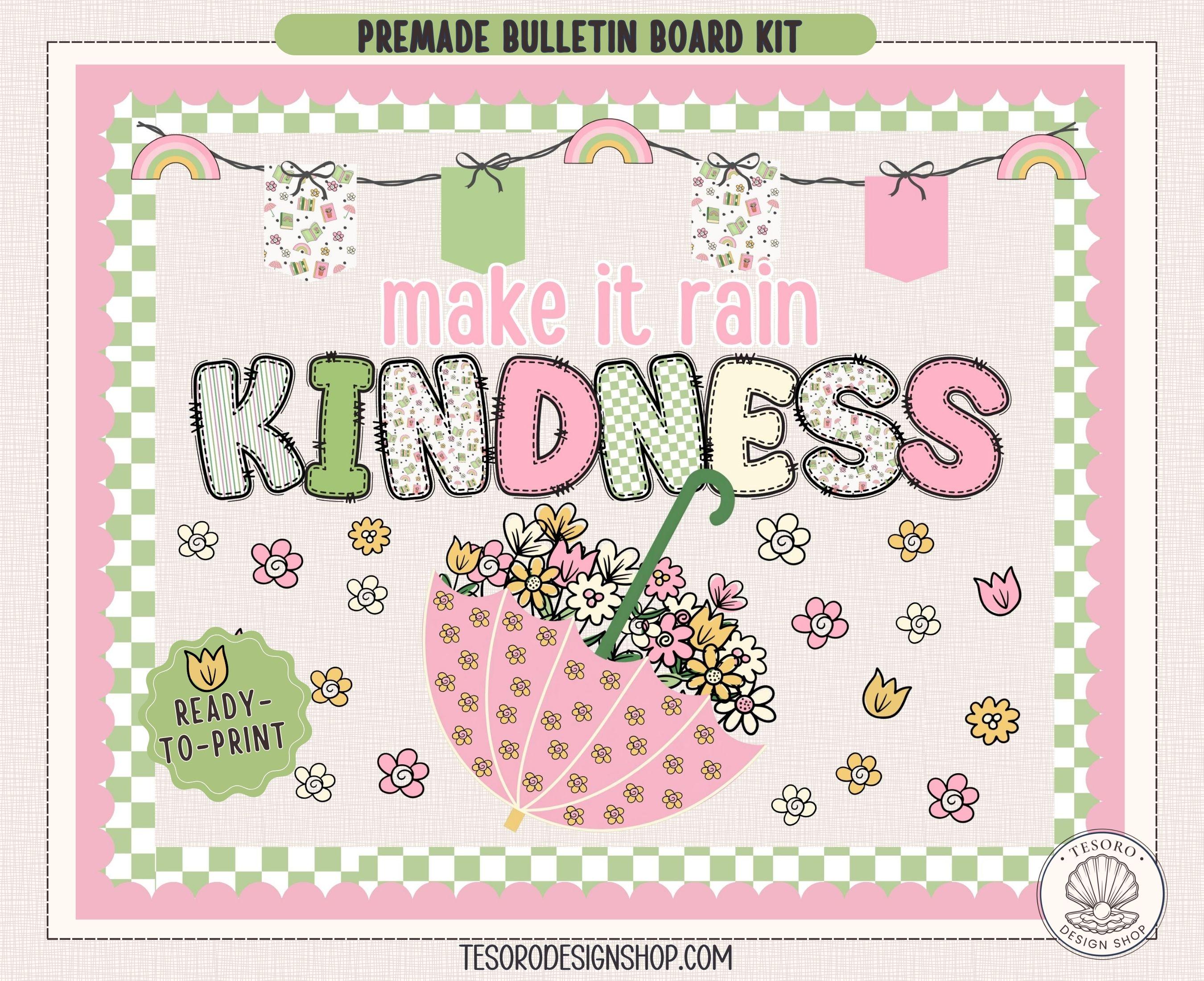 spring bulletin board | april may flowers bulletin board | be kind classroom decor | kindness classroom theme | printable classroom decor | class bulletin board kit | library youth display
